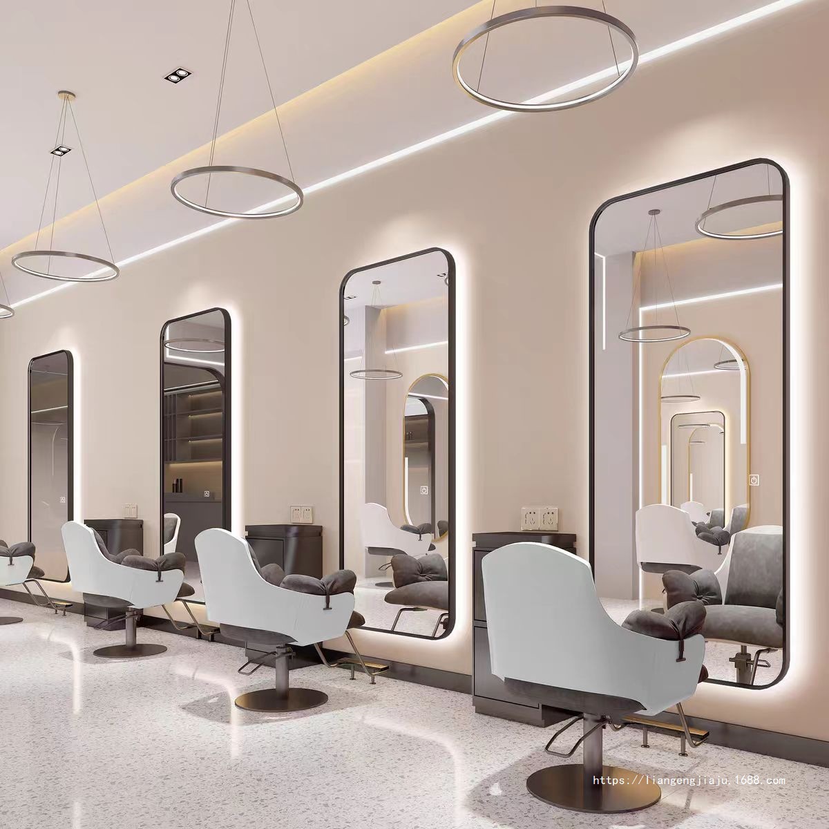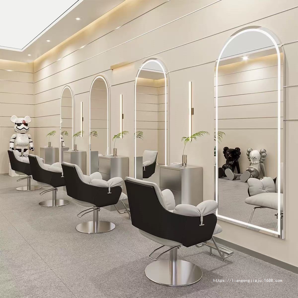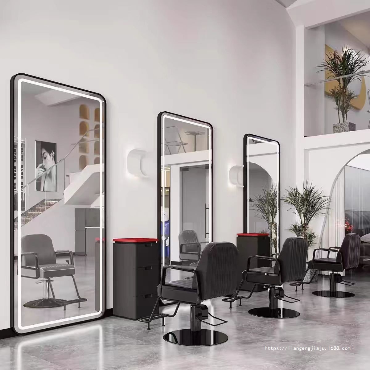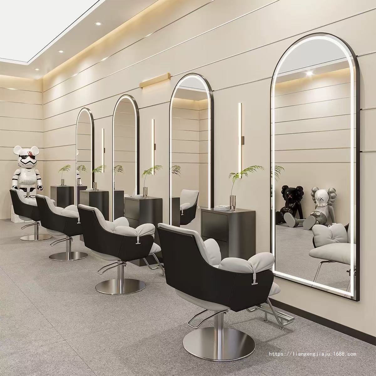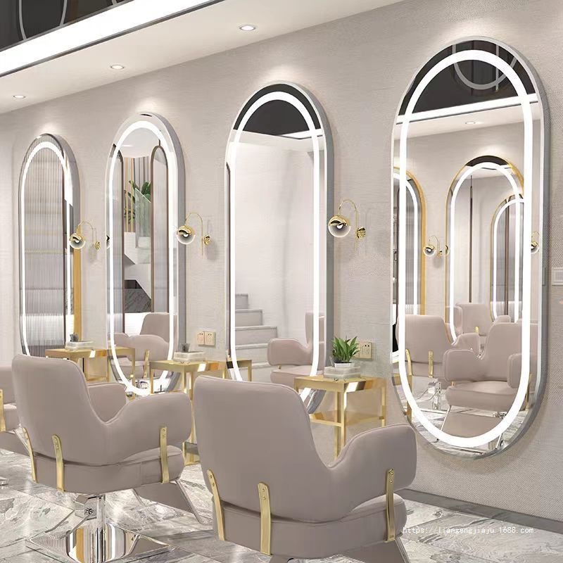 理发店美发镜台网红镜子挂墙单面带灯镜壁挂式发廊镜专用智能
