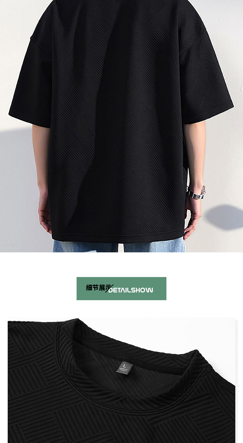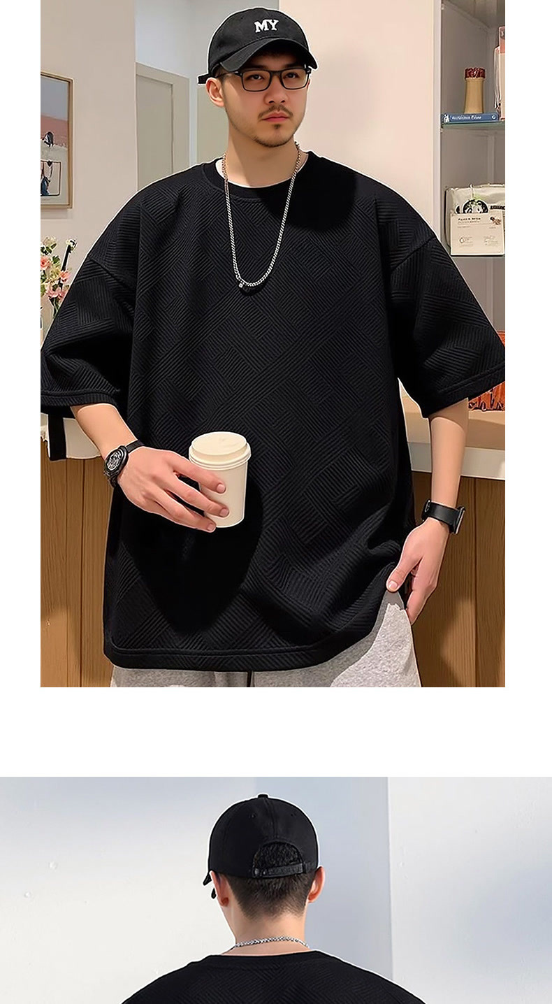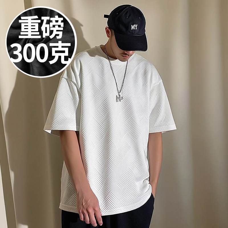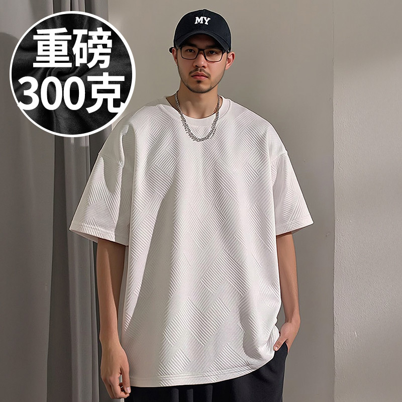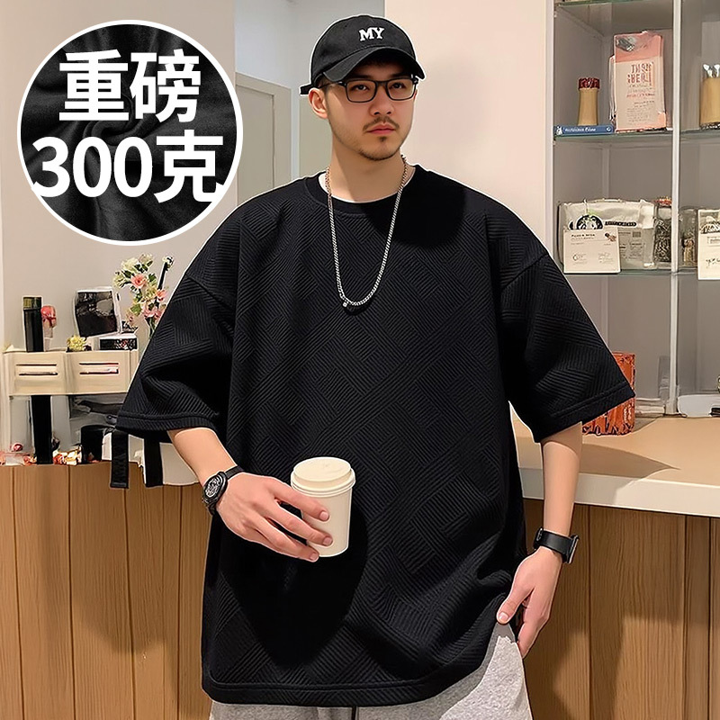 2025新款美式华夫格重磅男士胖子T恤短袖加肥加大码男装半截袖夏