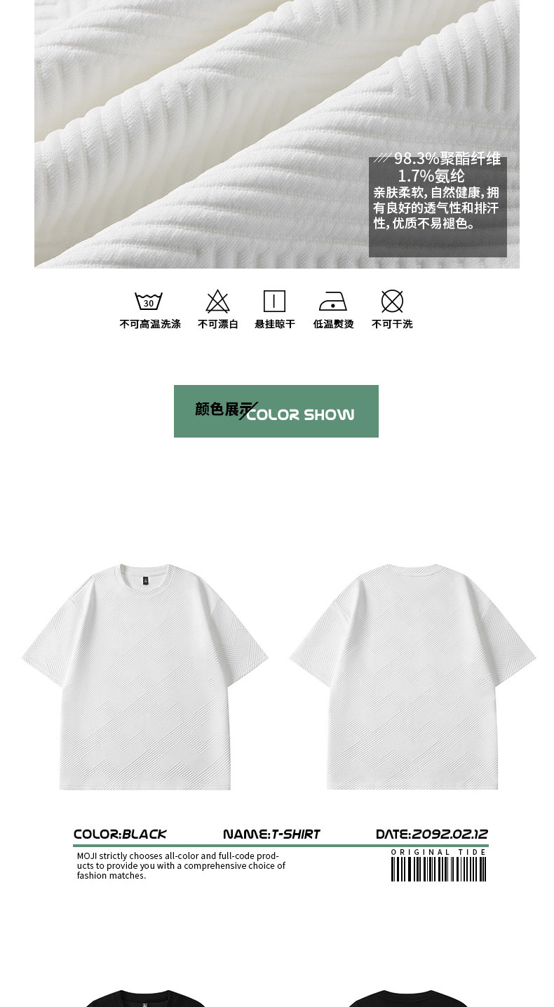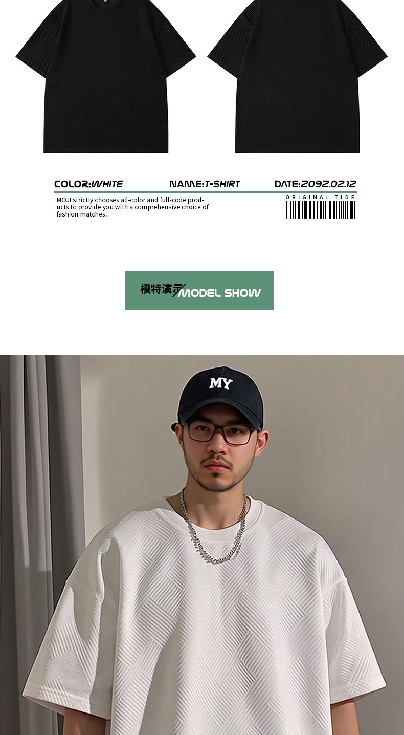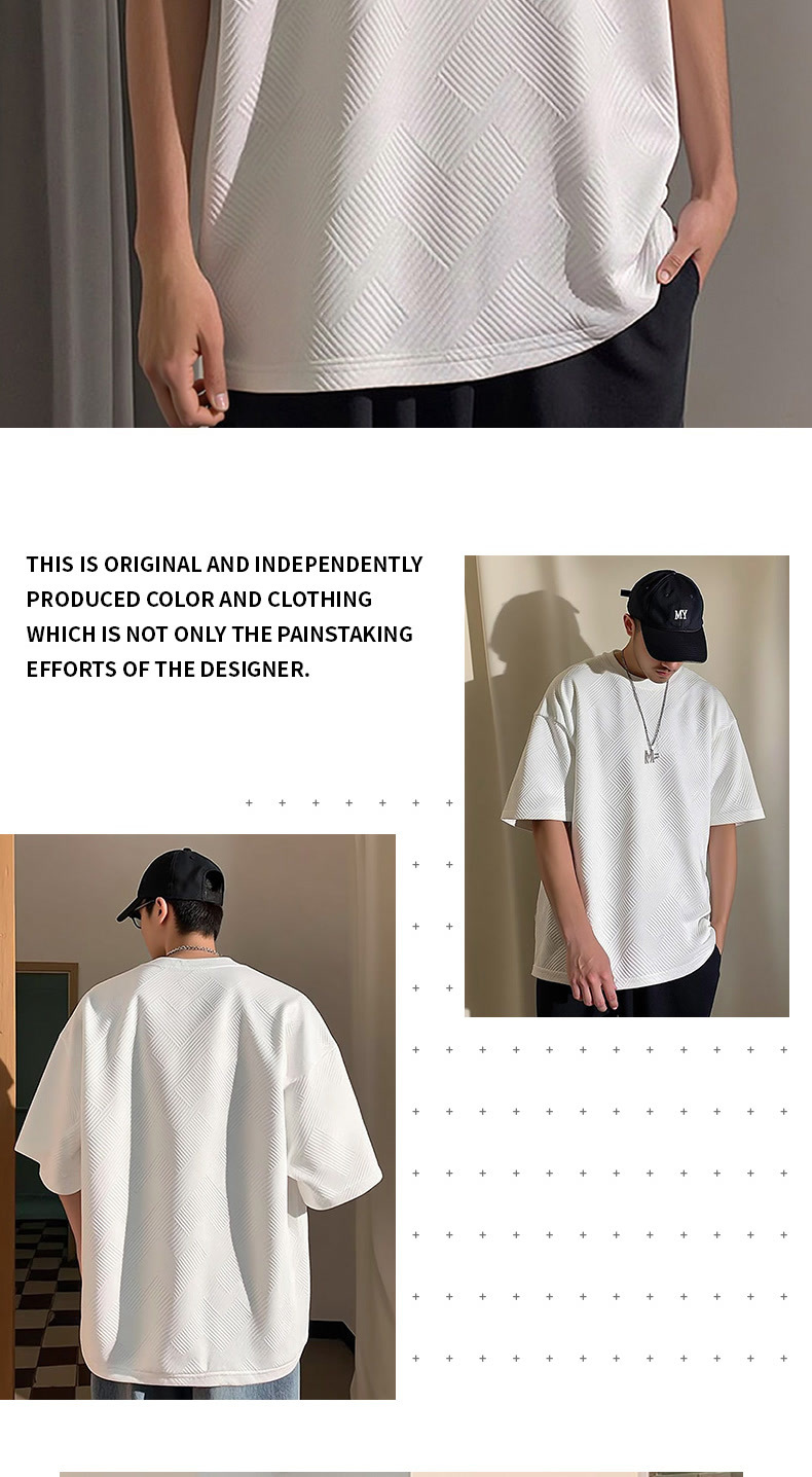 2025新款美式华夫格重磅男士胖子T恤短袖加肥加大码男装半截袖夏