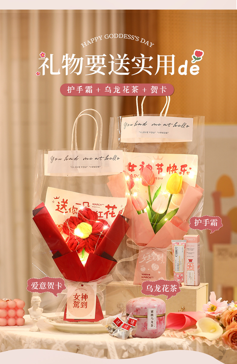 三八妇女节38女神节手捧花束礼品礼盒送员工送老师送妈妈实用礼物