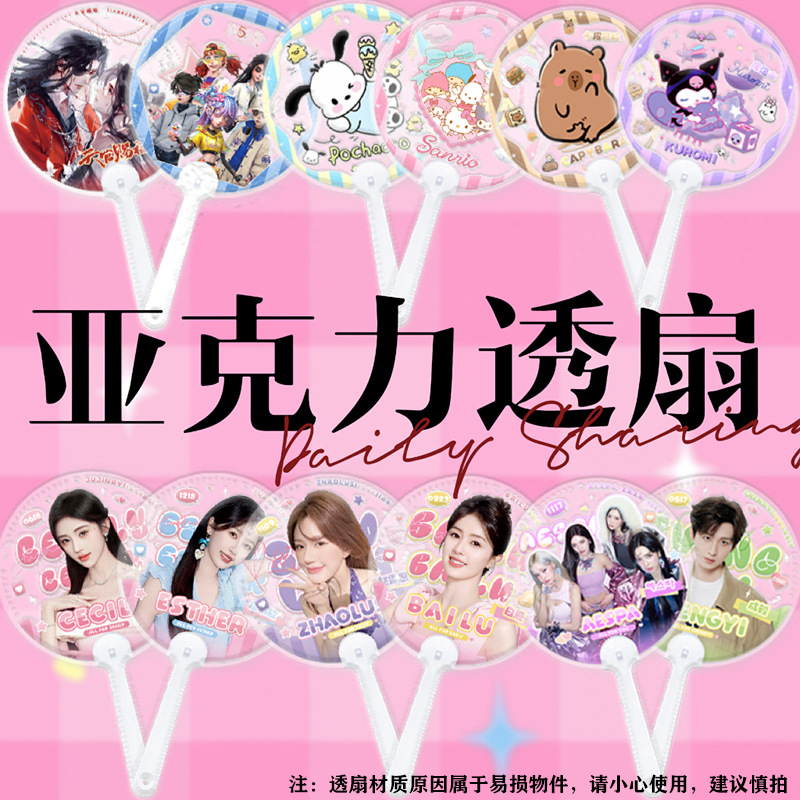 精美透扇亚克力应援扇明星动漫同款手持迷你创意应援双面透明扇子