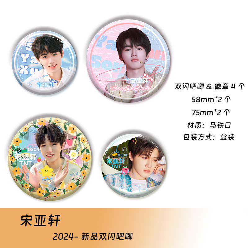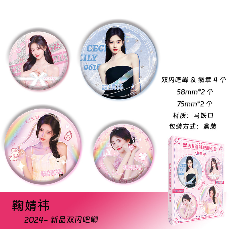 明星系列双闪镭射吧唧赵露思虞书欣白鹿王一博范丞丞周边徽章礼盒