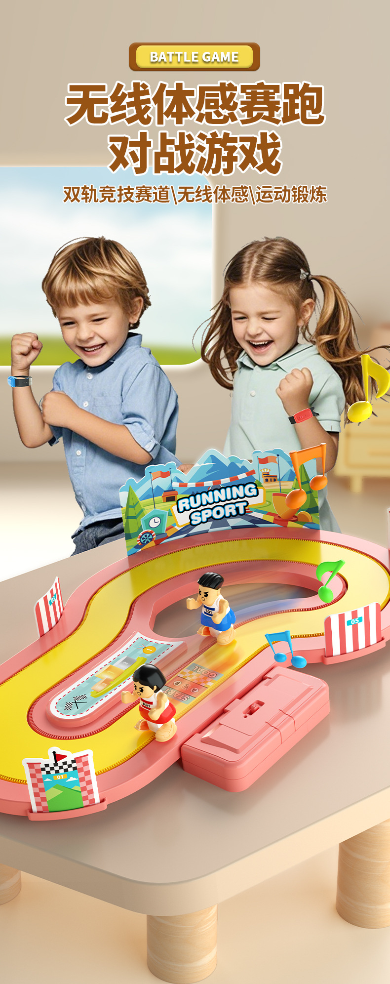 跨境爆款无线感应模拟赛道体感赛跑亲子互动双人益智儿童玩具