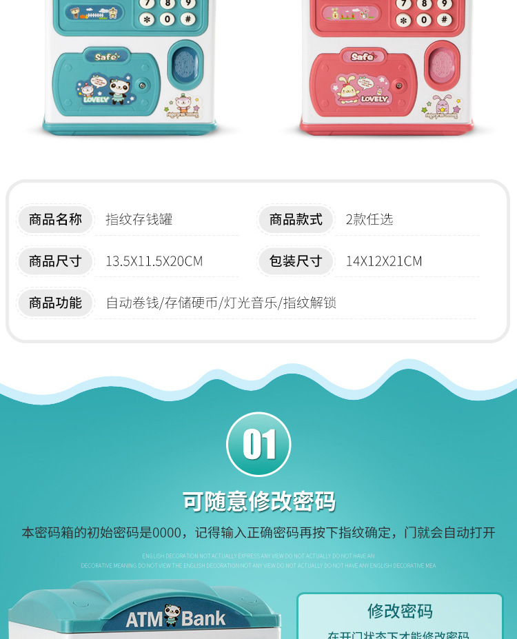 跨境儿童密码储钱罐网红大号存钱罐礼物防摔可取可存摆件礼品玩具