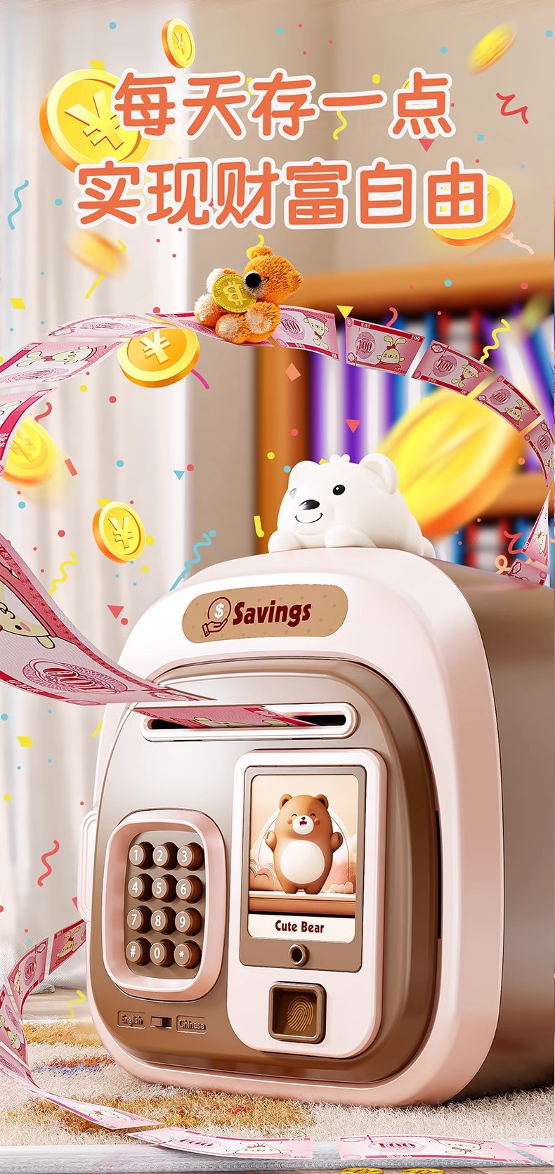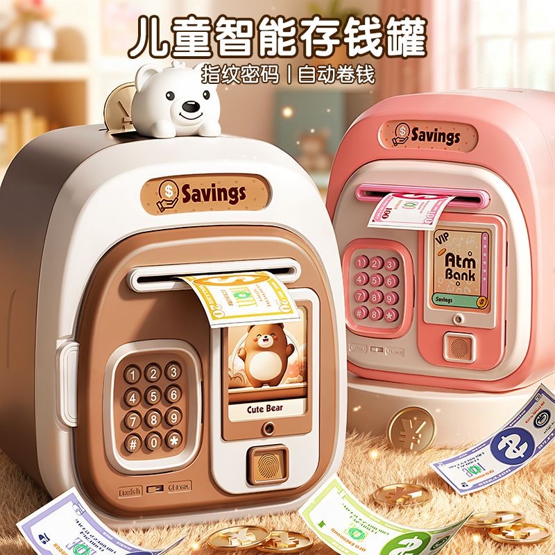 新年礼物新款儿童储蓄存钱罐存取自动卷钱网红密码保险箱男孩女孩