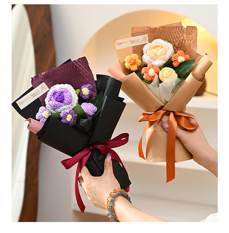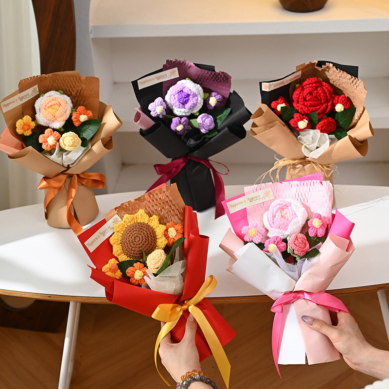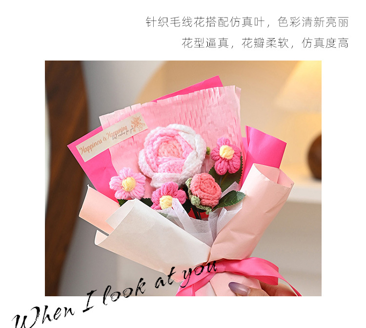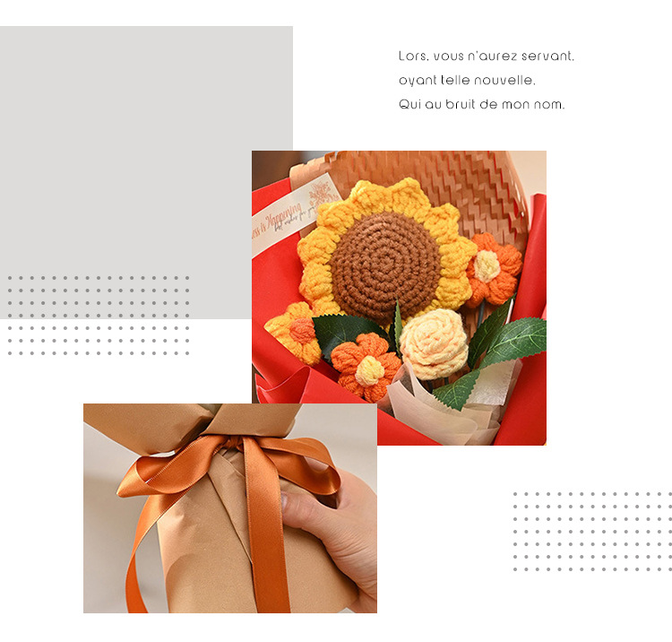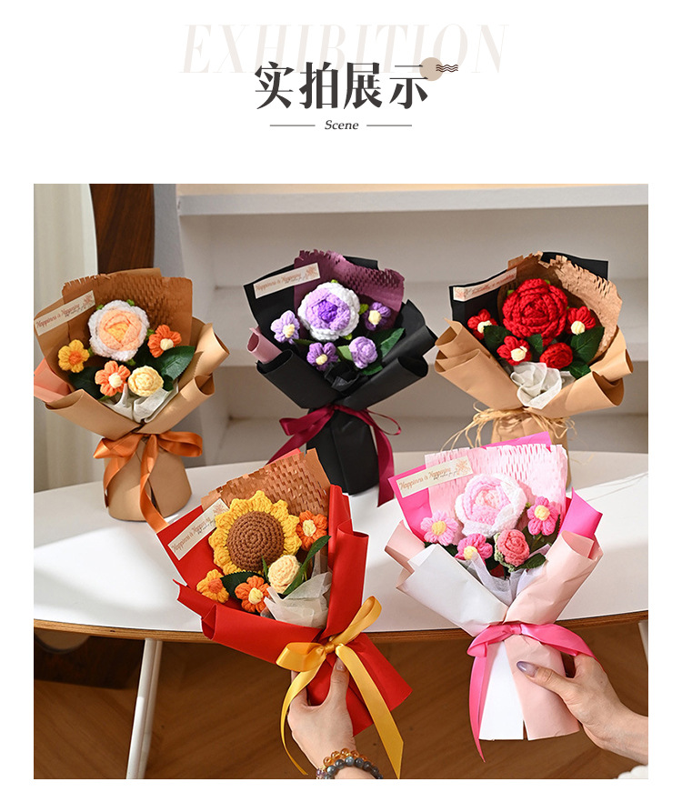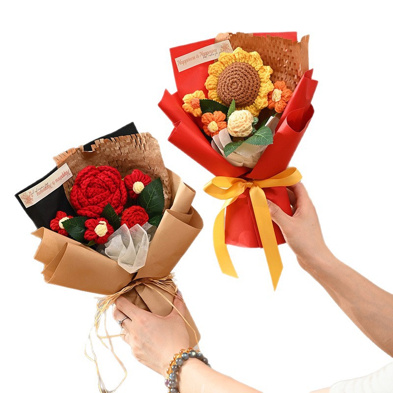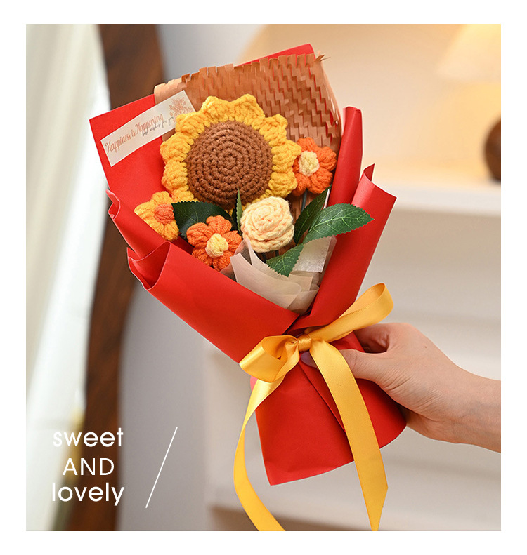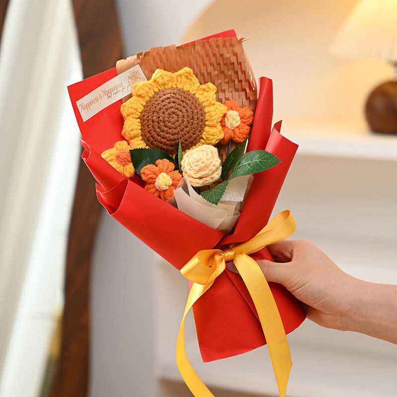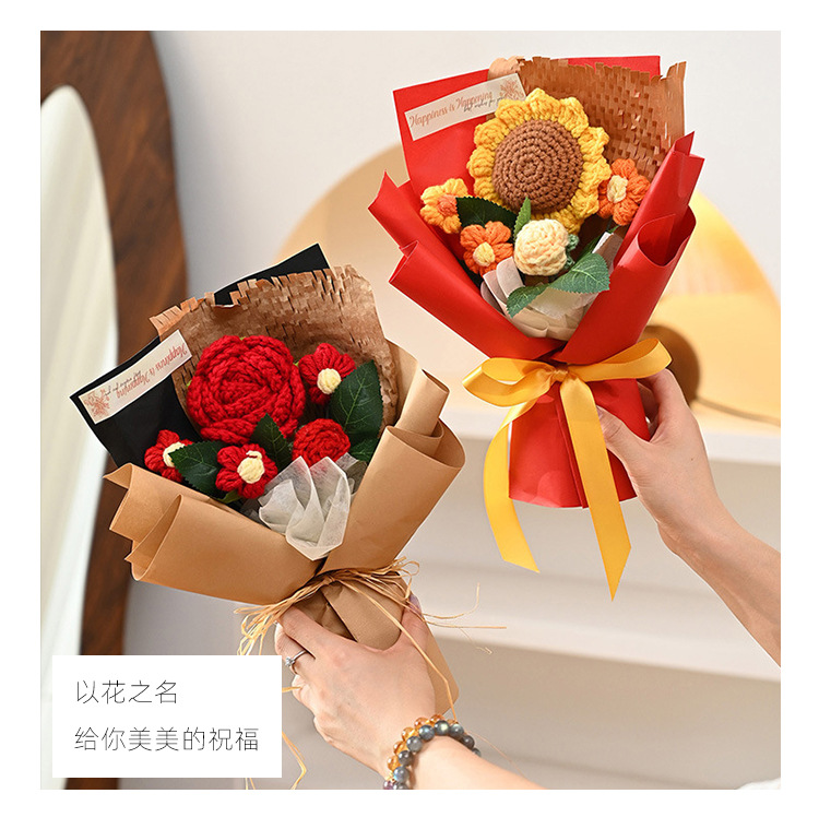 三八妇女神节礼物针织成品毛线花束生日礼物向日葵手工编织仿真花
