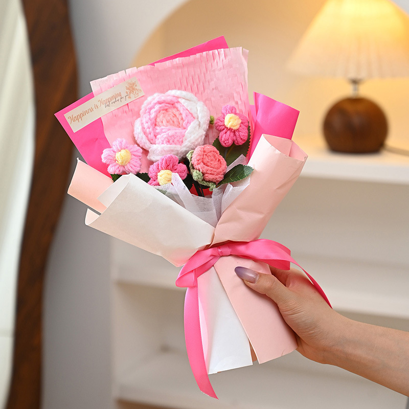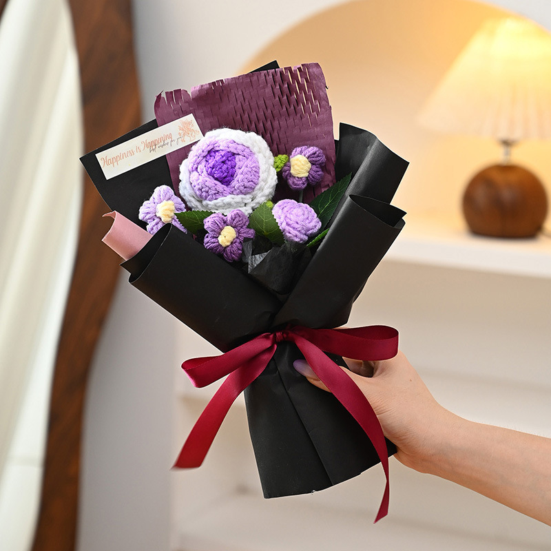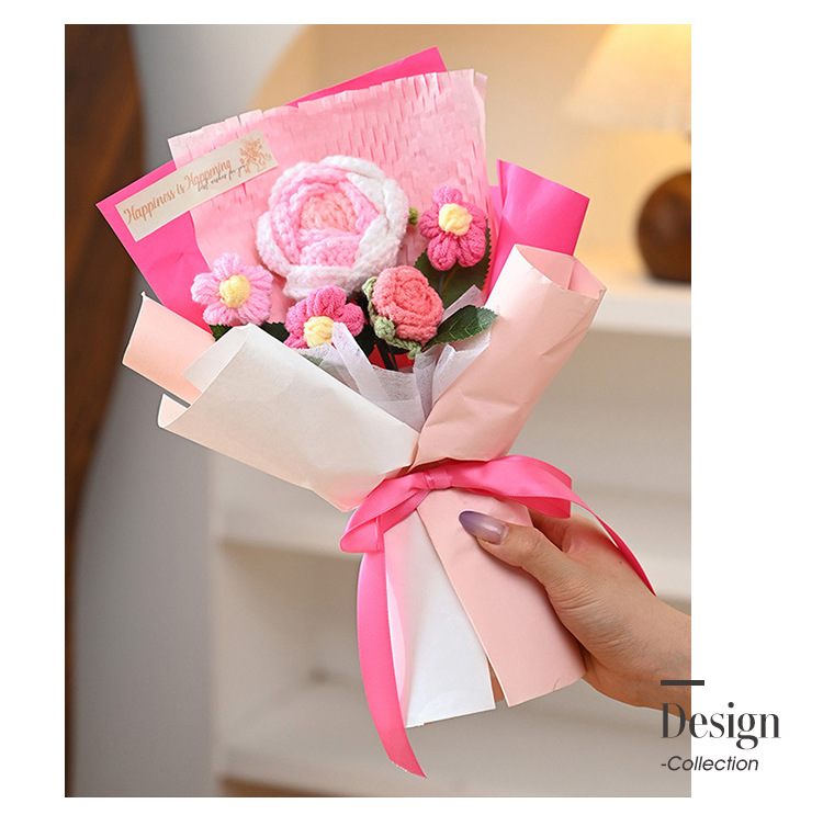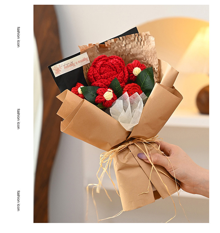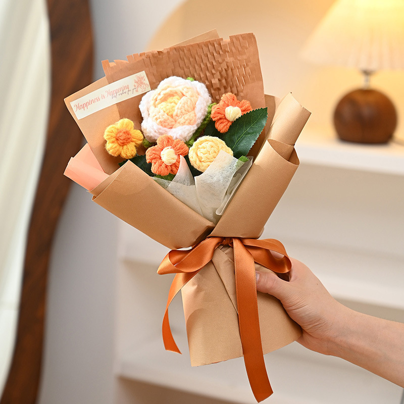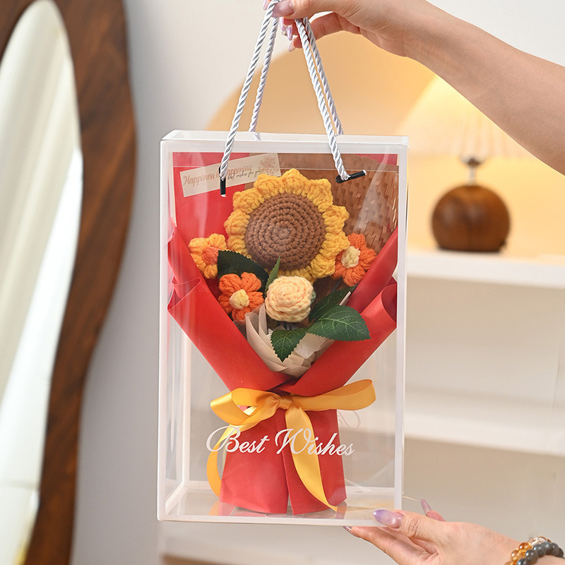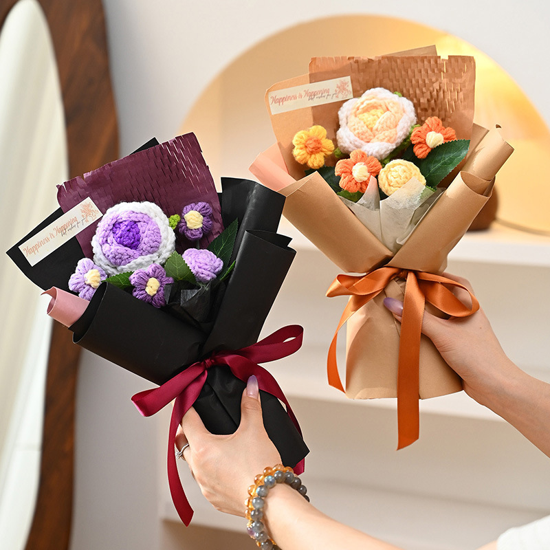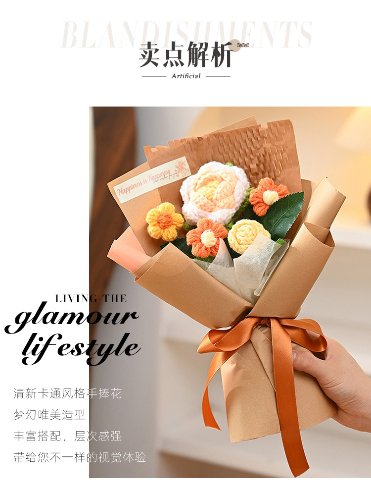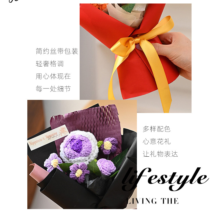 三八妇女神节礼物针织成品毛线花束生日礼物向日葵手工编织仿真花