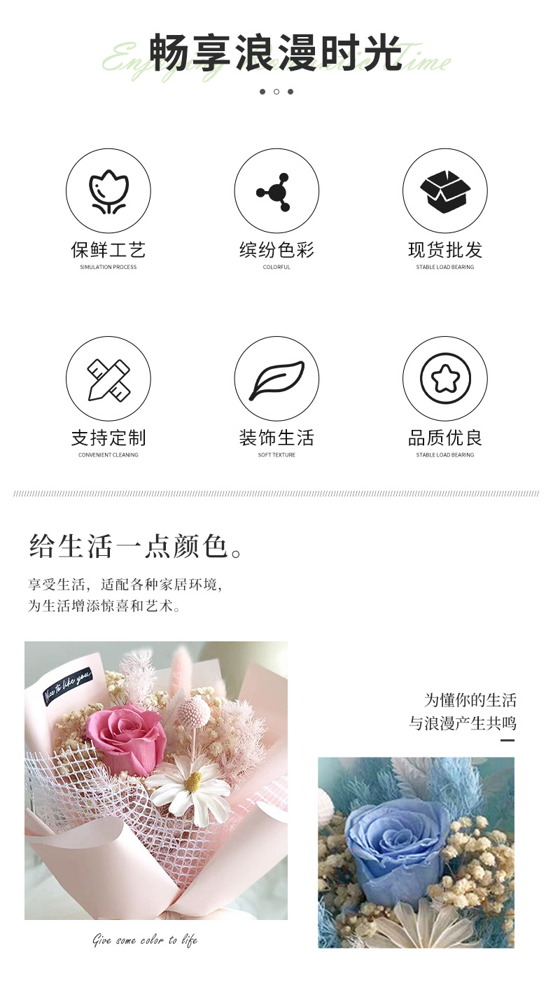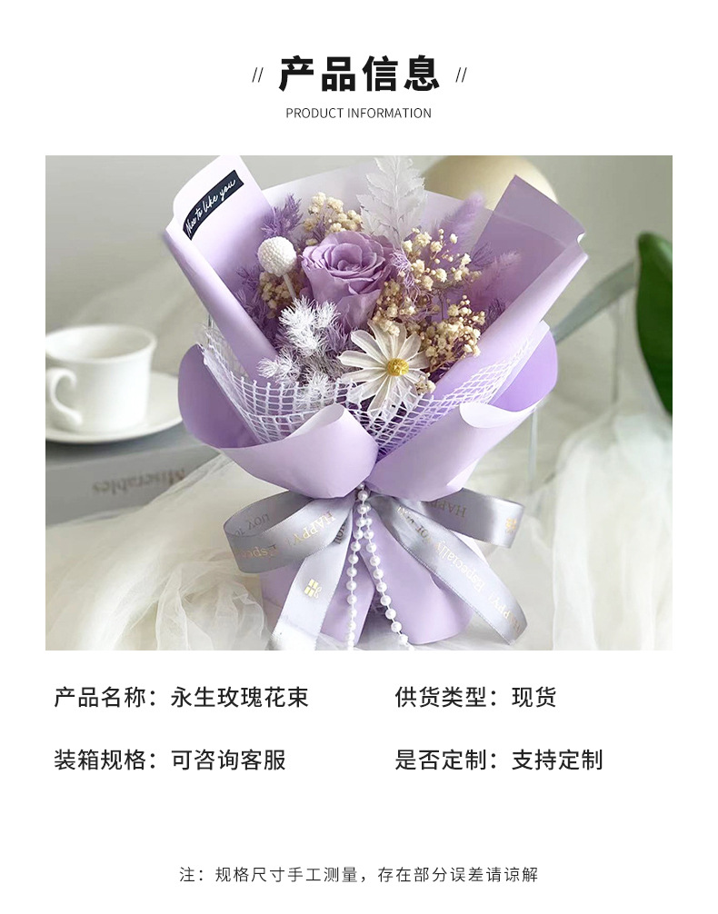 定制迷你小香风永生玫瑰花束情人节母亲节女神节日礼物永生花束