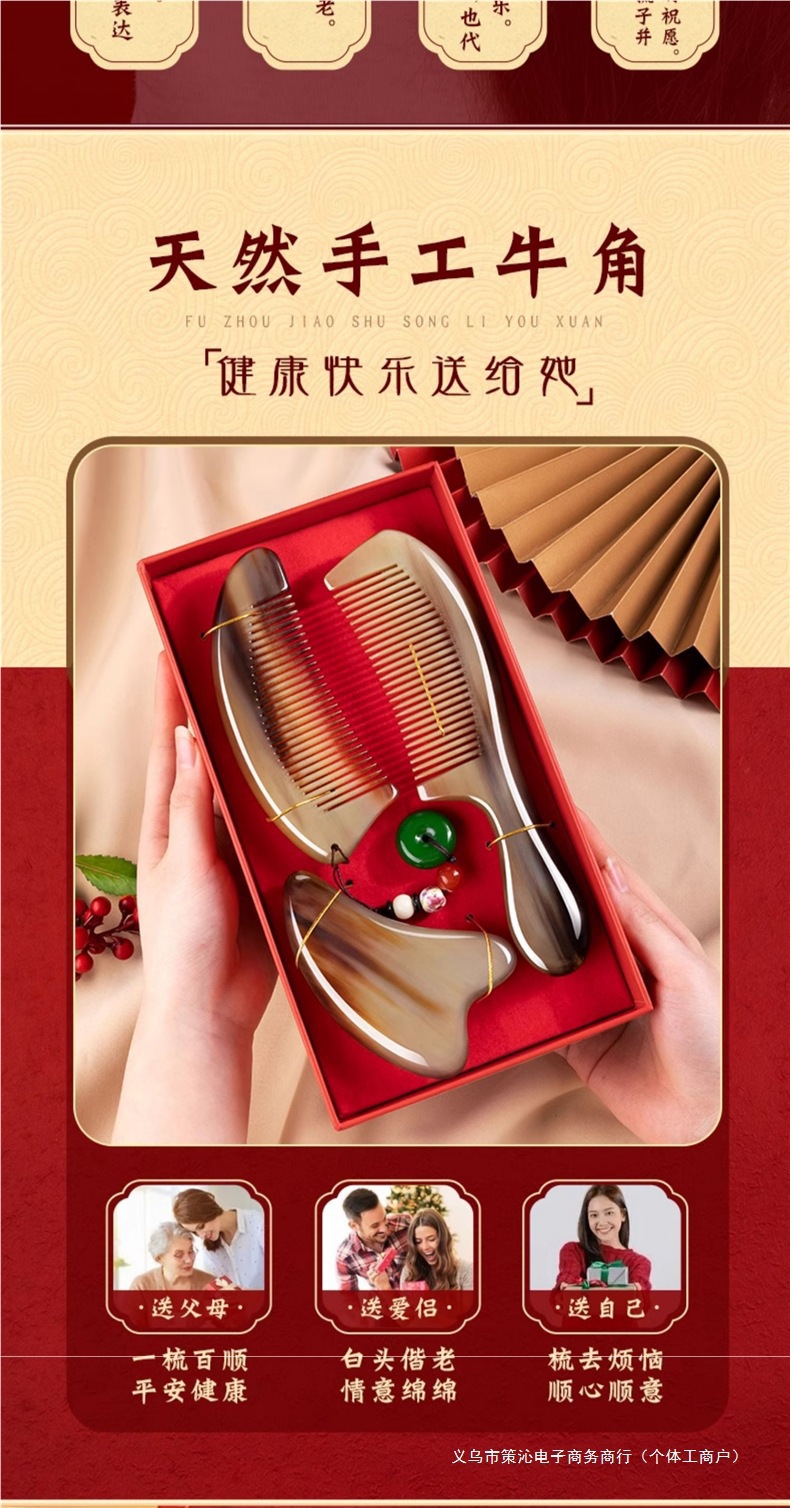 商务送礼生日礼物女生送老婆妈妈员工三八妇女节礼品礼盒牛角梳