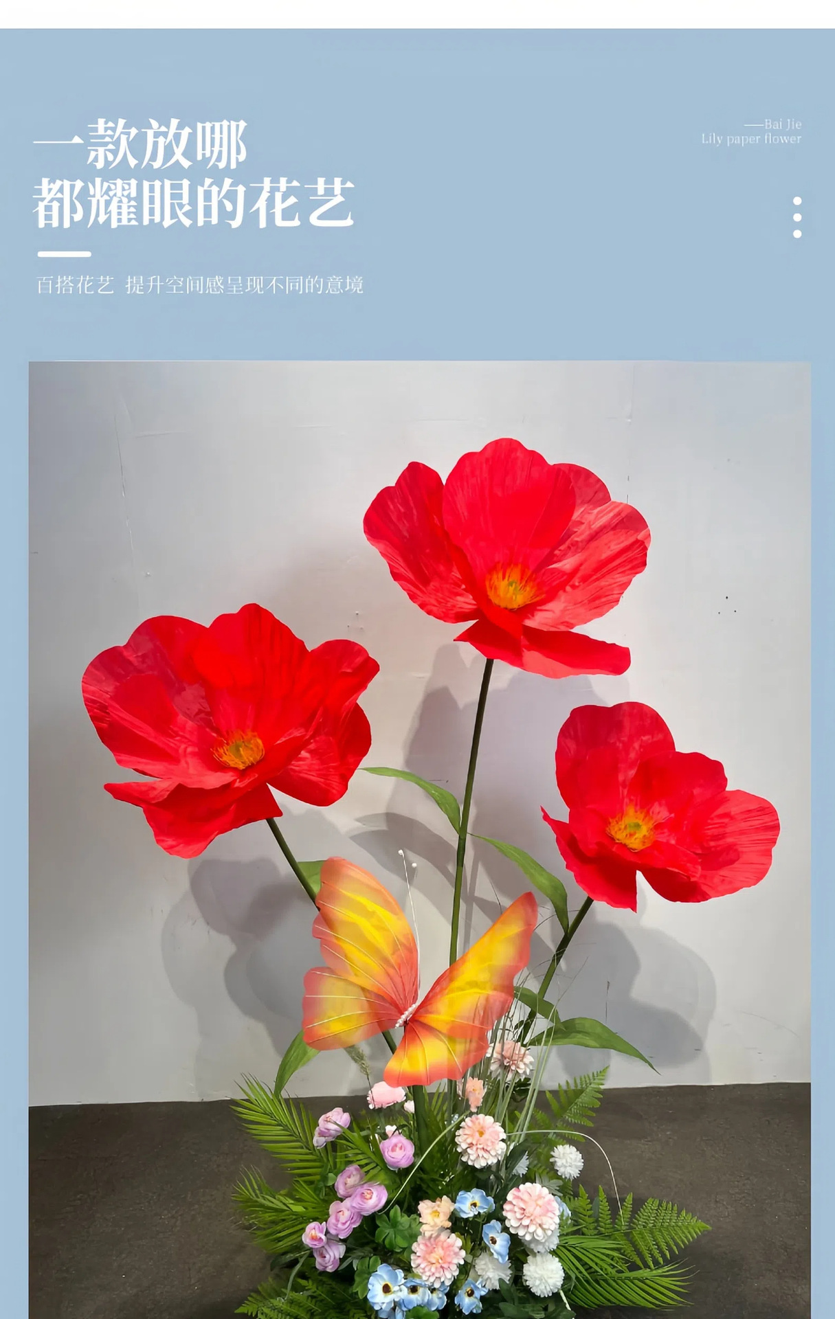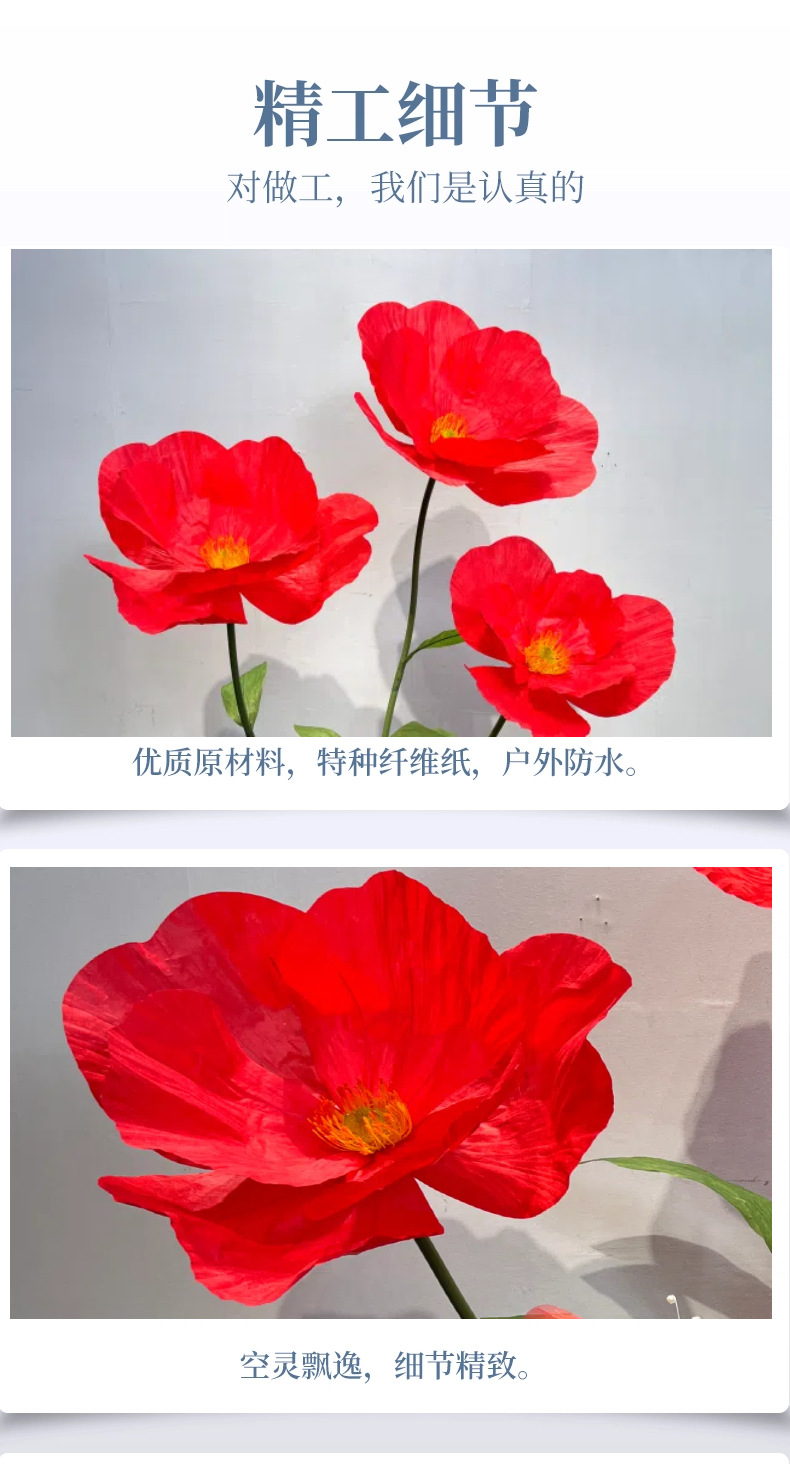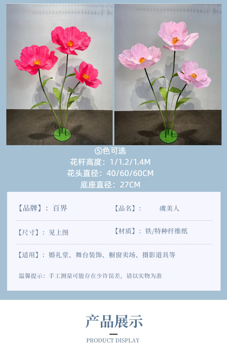 大号假花虞美人婚礼装饰花婚庆活动场景布置纸花橱窗展示仿真花