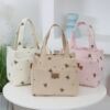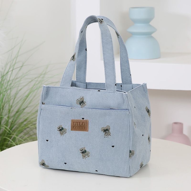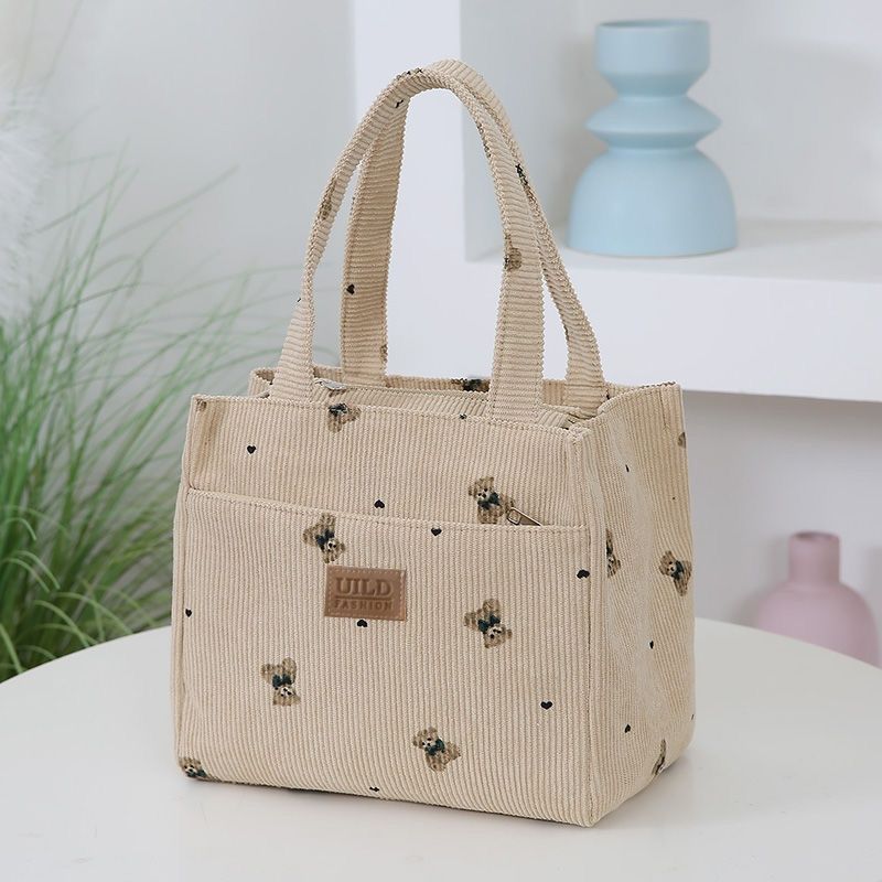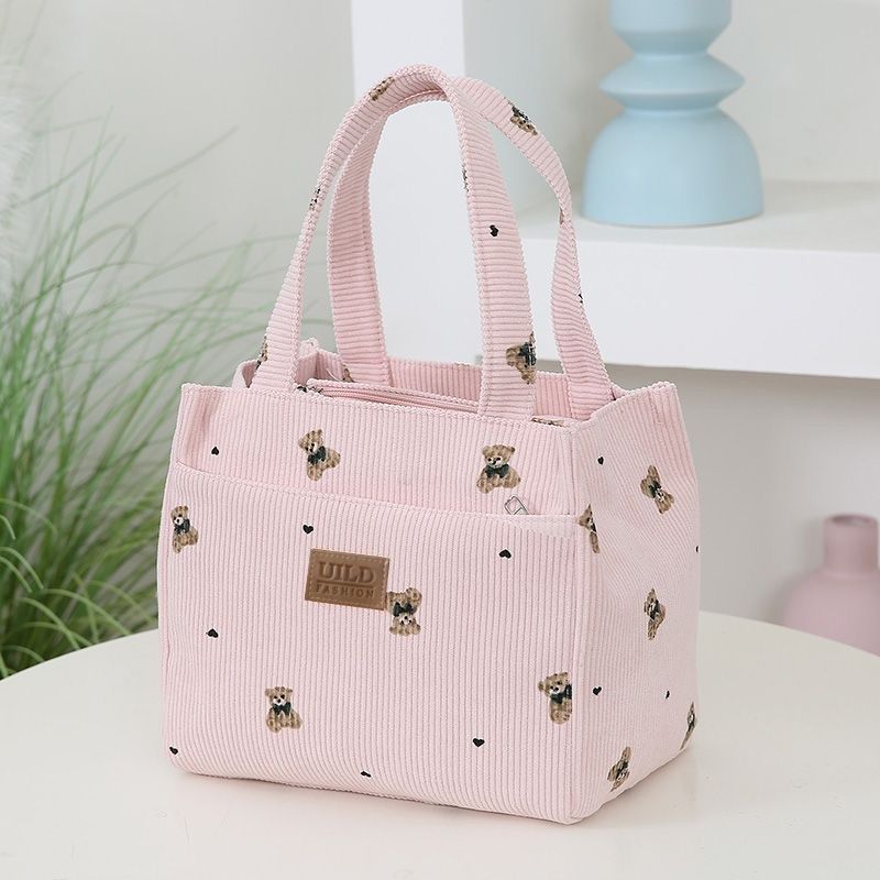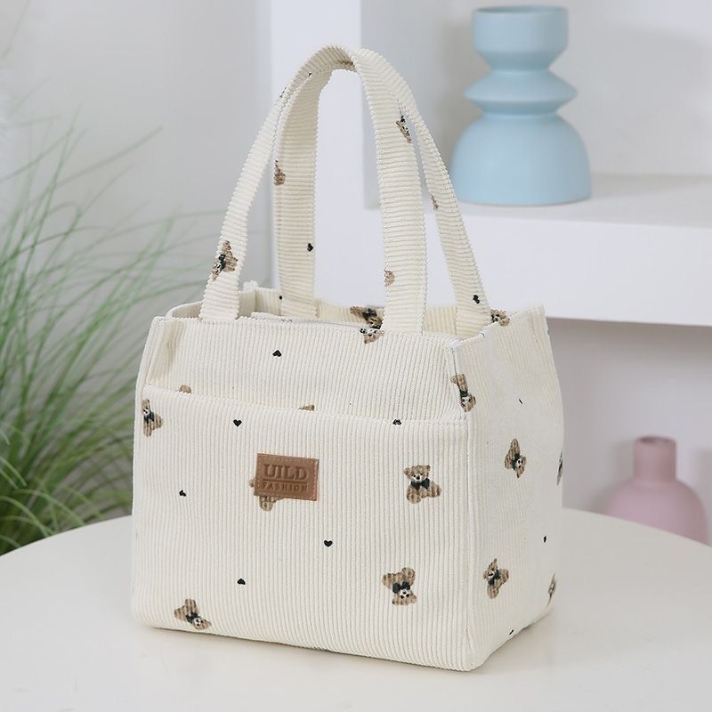 灯芯绒冬季新款小熊手提包上班外出手拎包便当包学生小号饭盒包