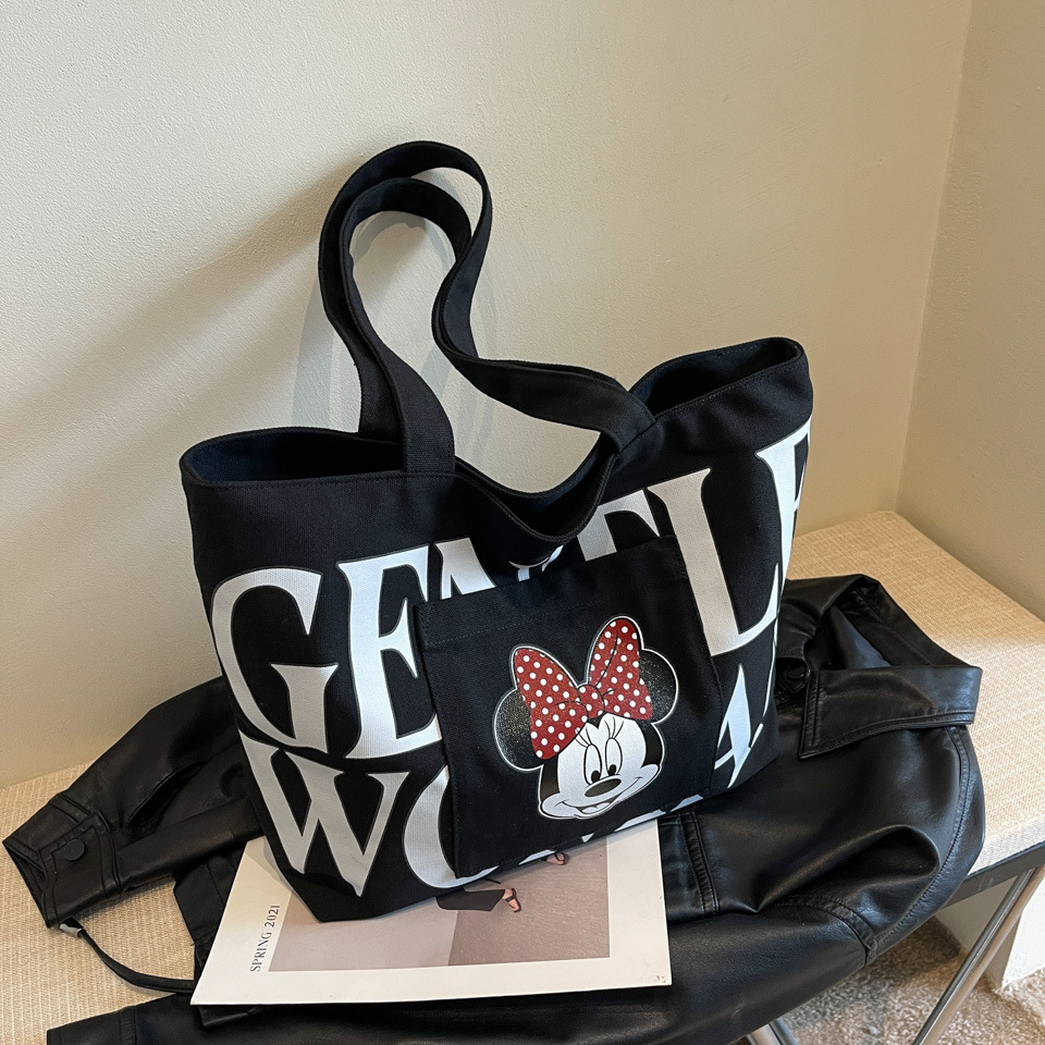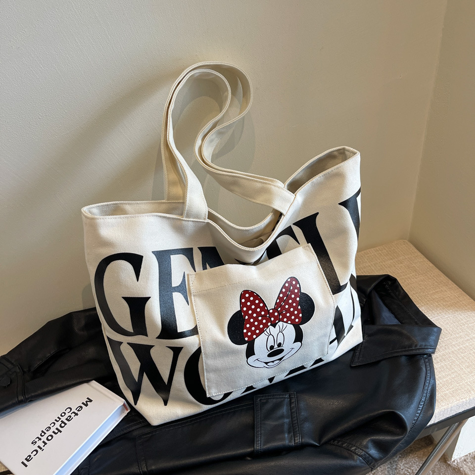 2024新款字母帆布手提袋大学生上课单肩托特包春夏季大容量包包女