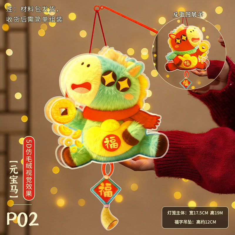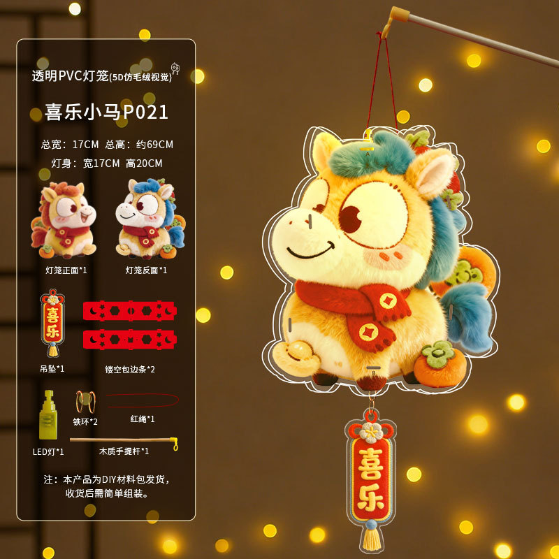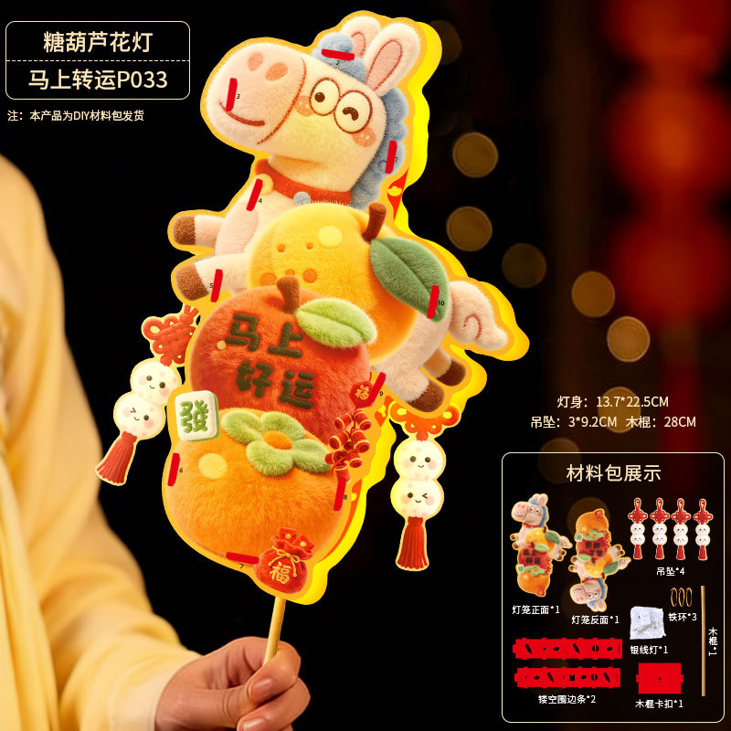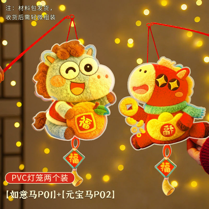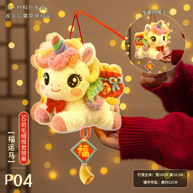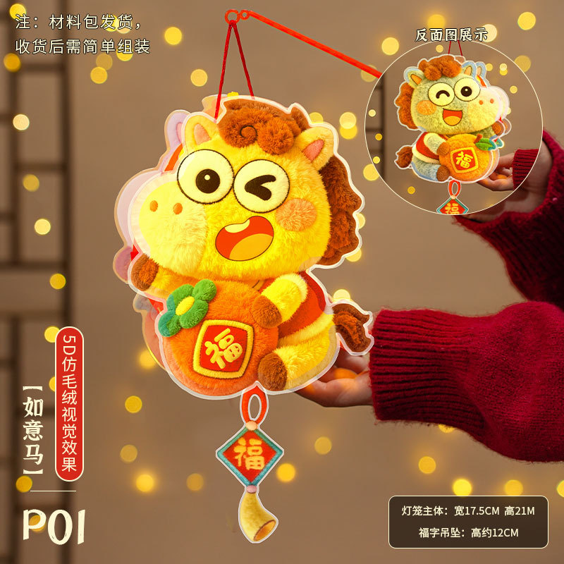 马年灯笼5D立体毛绒儿童手提发光花灯手工diy材料元宵摆摊小商品