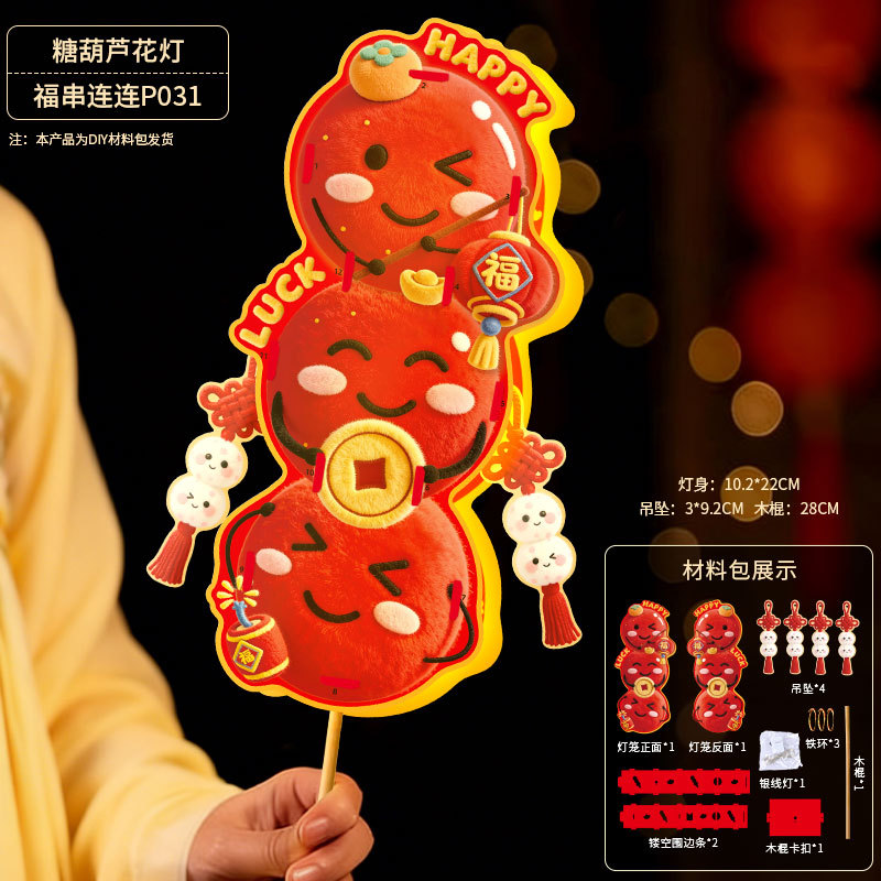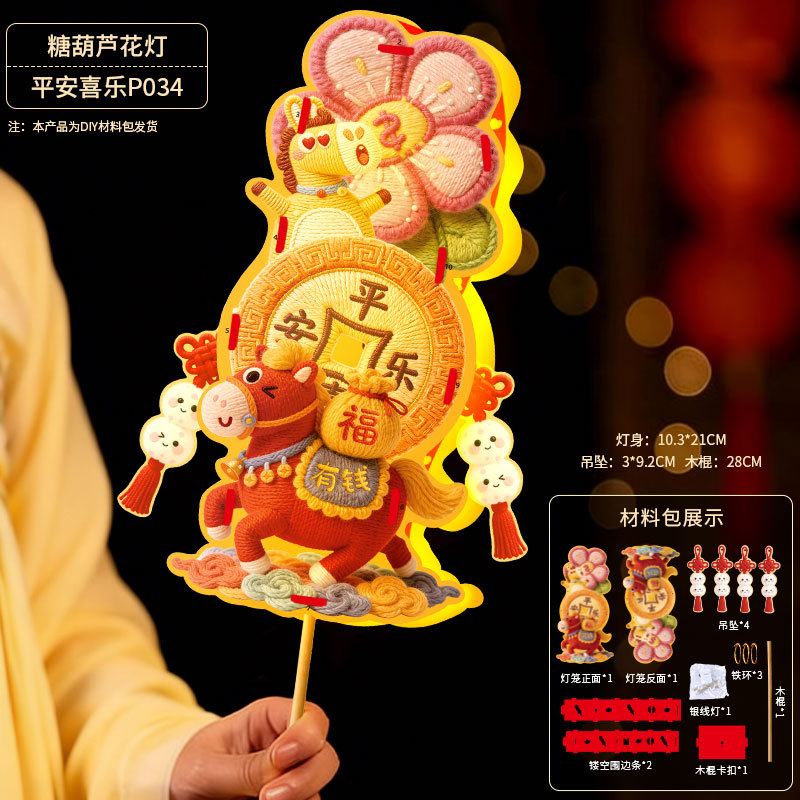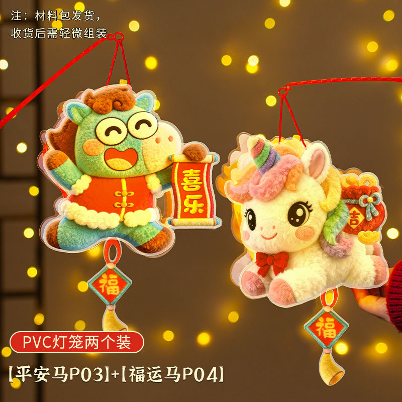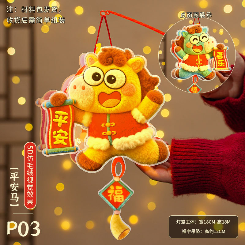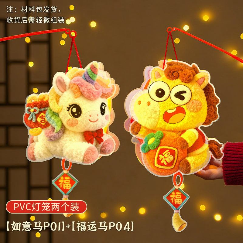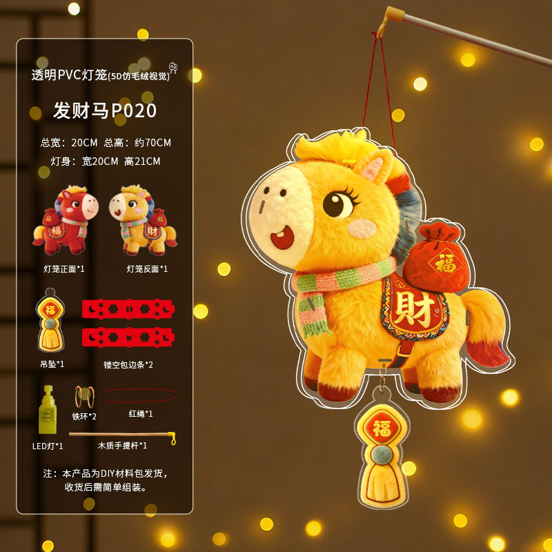马年灯笼5D立体毛绒儿童手提发光花灯手工diy材料元宵摆摊小商品