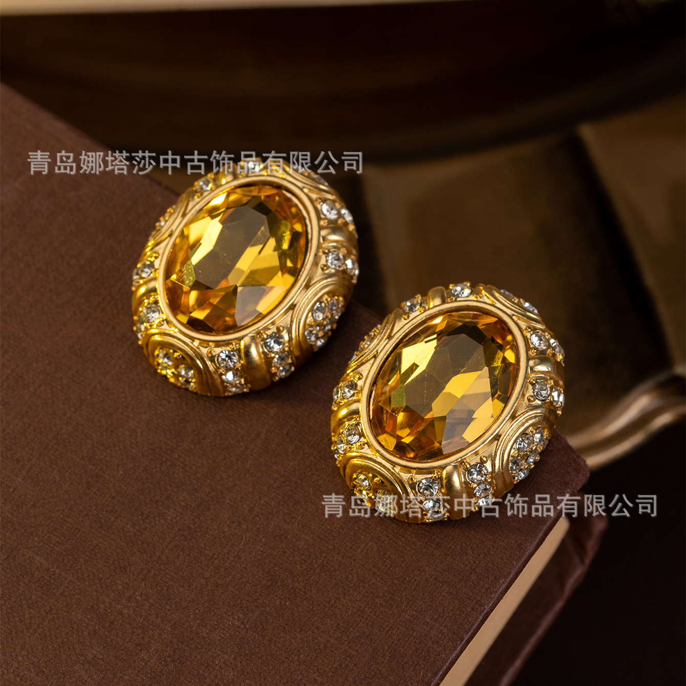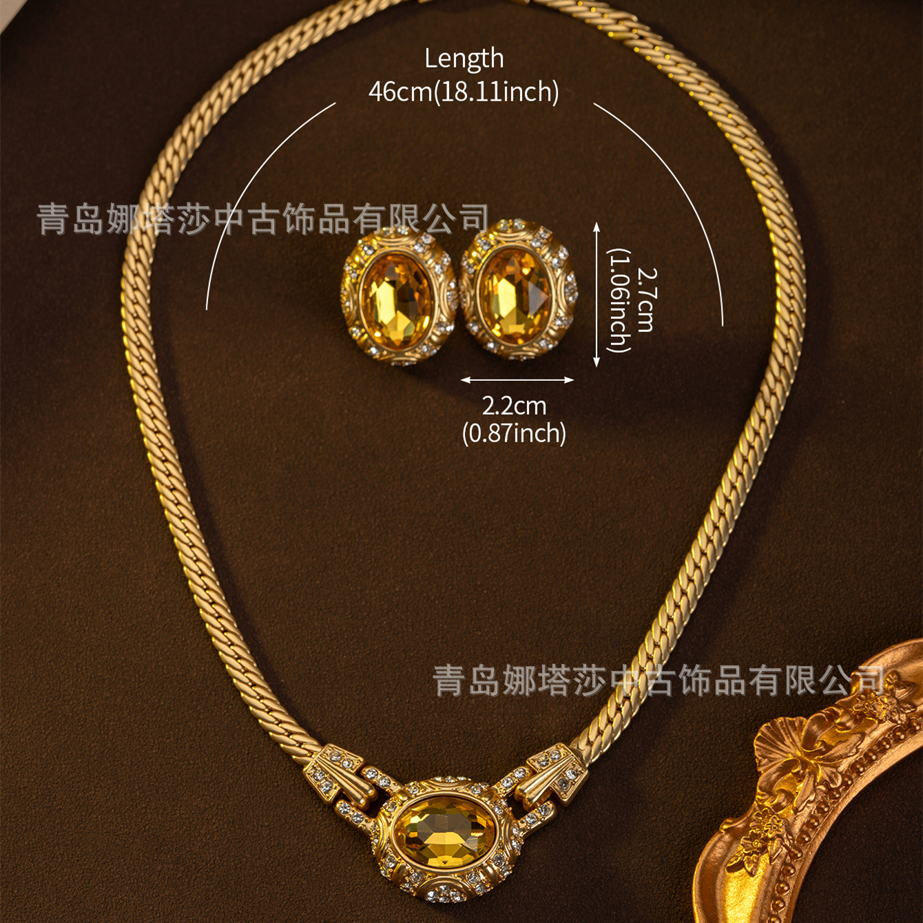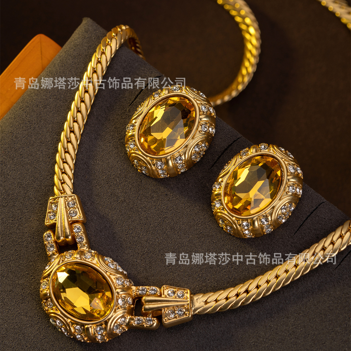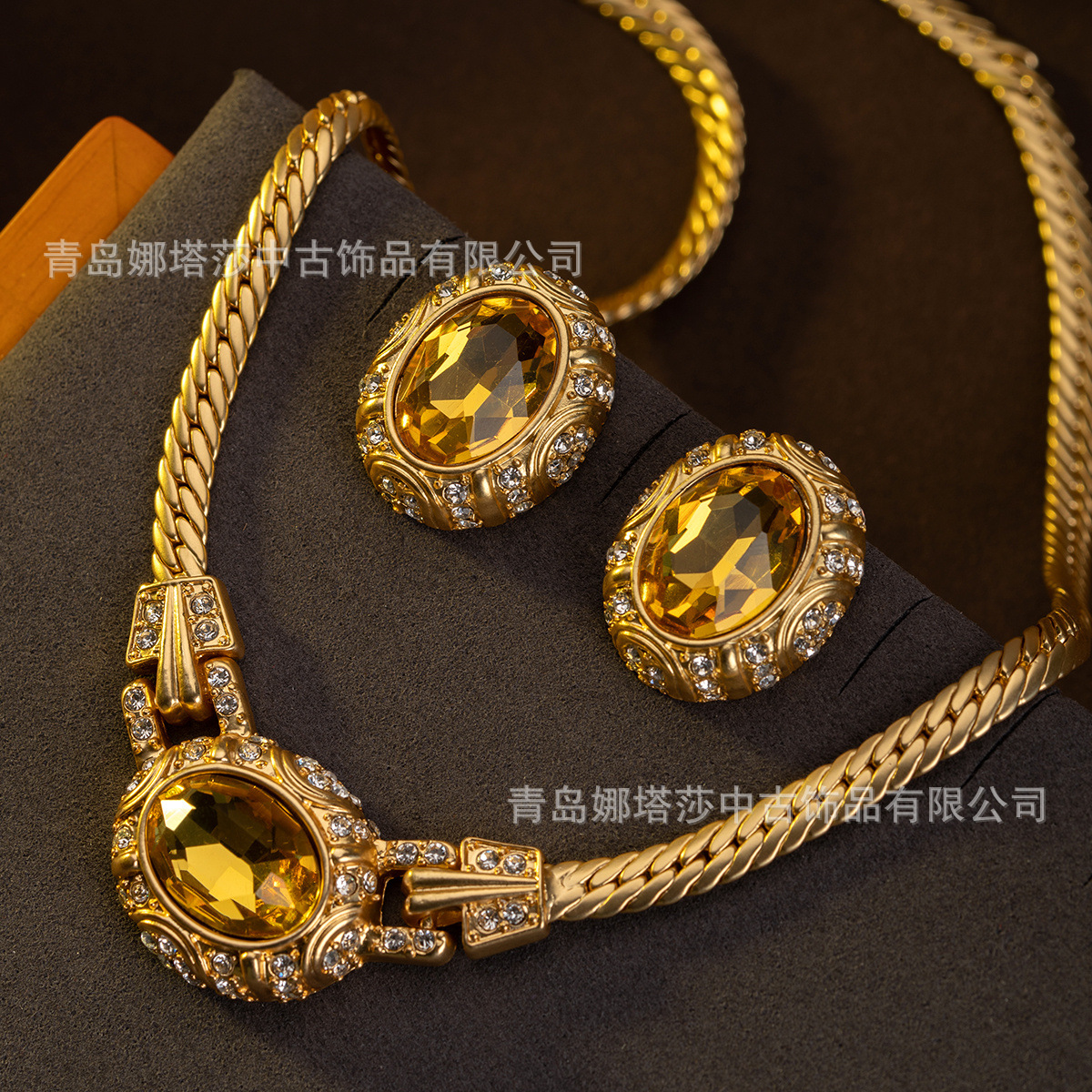 中古耳饰高级感vintage欧美重工镶嵌轻奢耳钉复古项链首饰套装