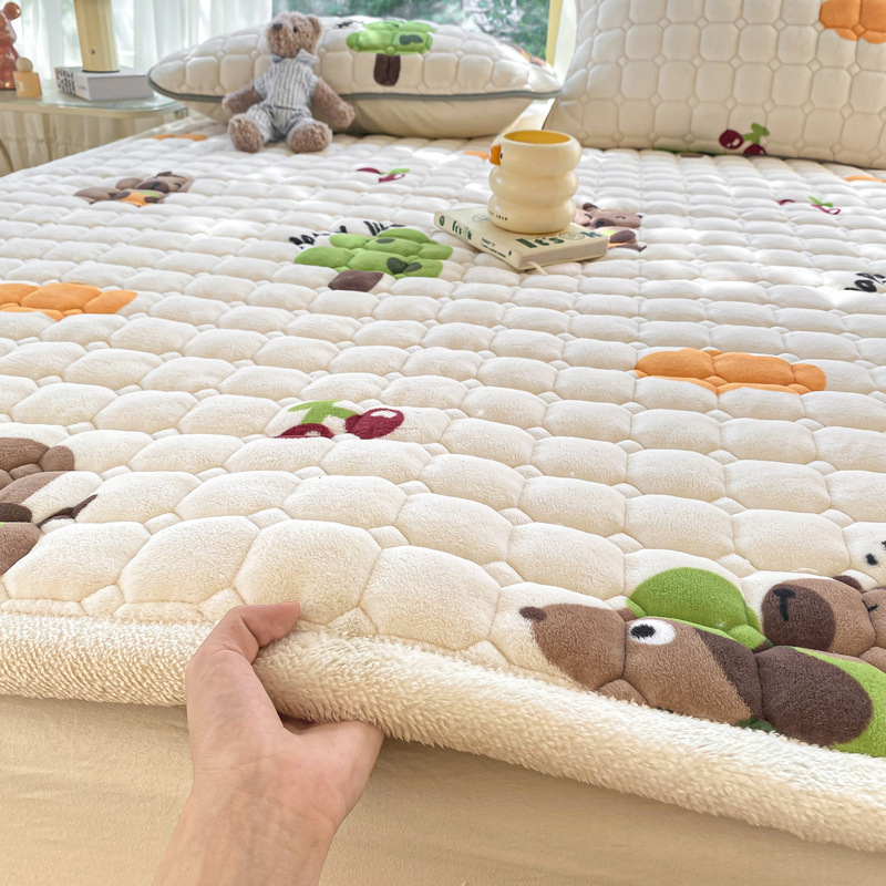 A类加厚牛奶绒床垫宿舍垫被床护垫褥子榻榻米保暖防滑夹棉软垫子