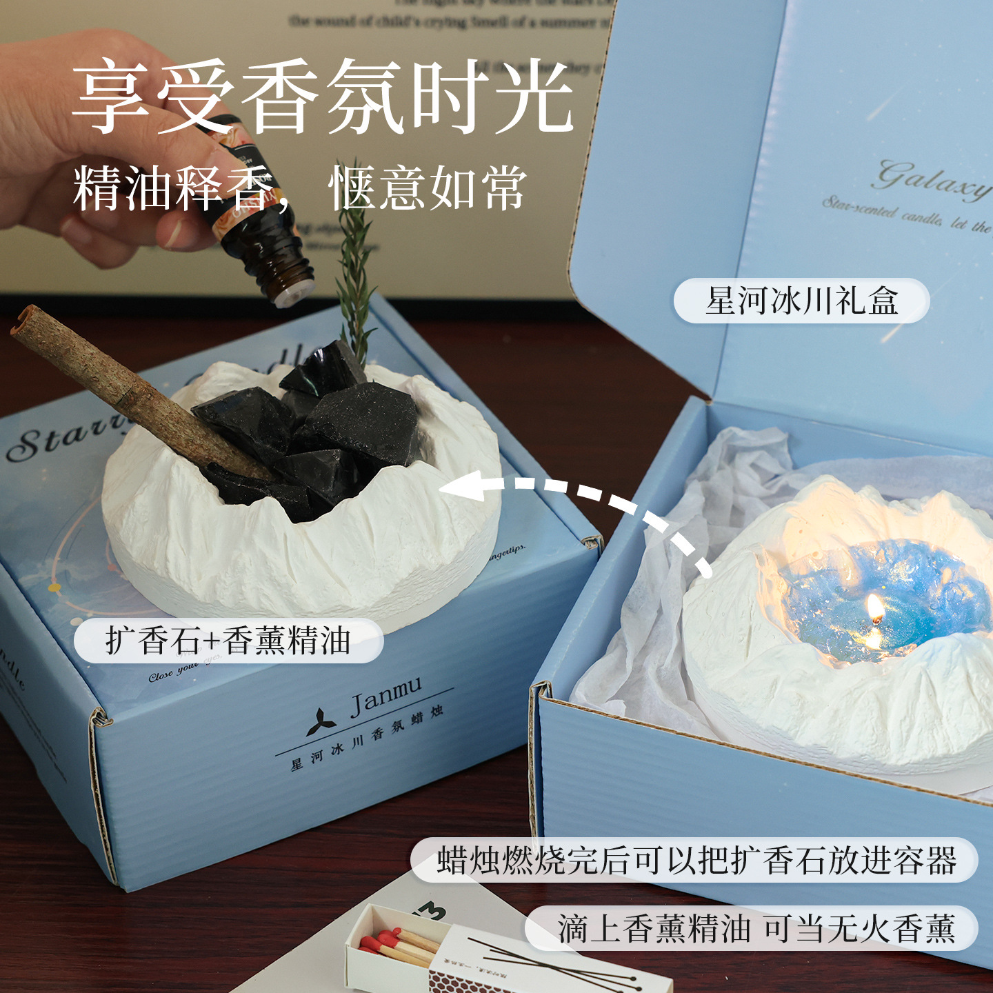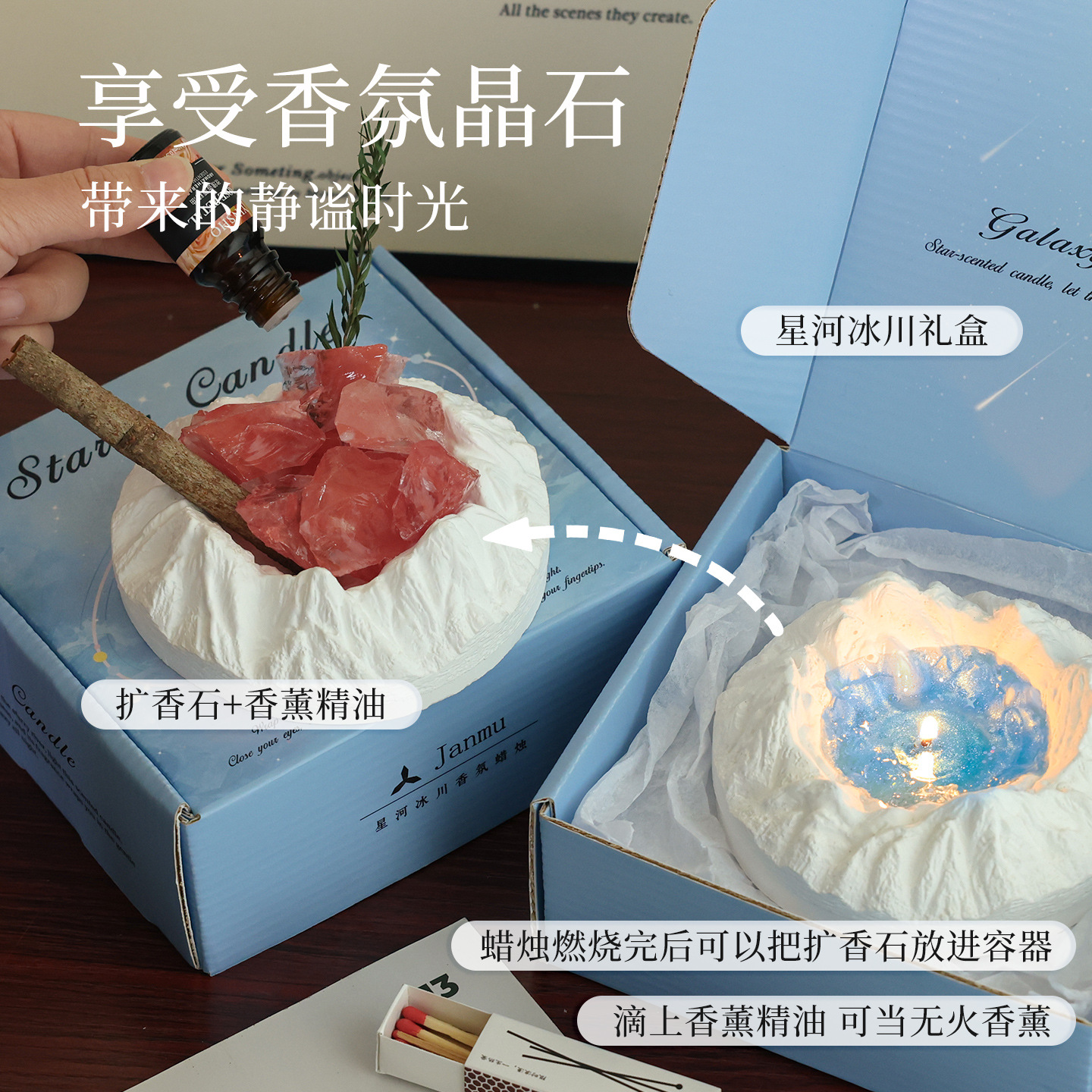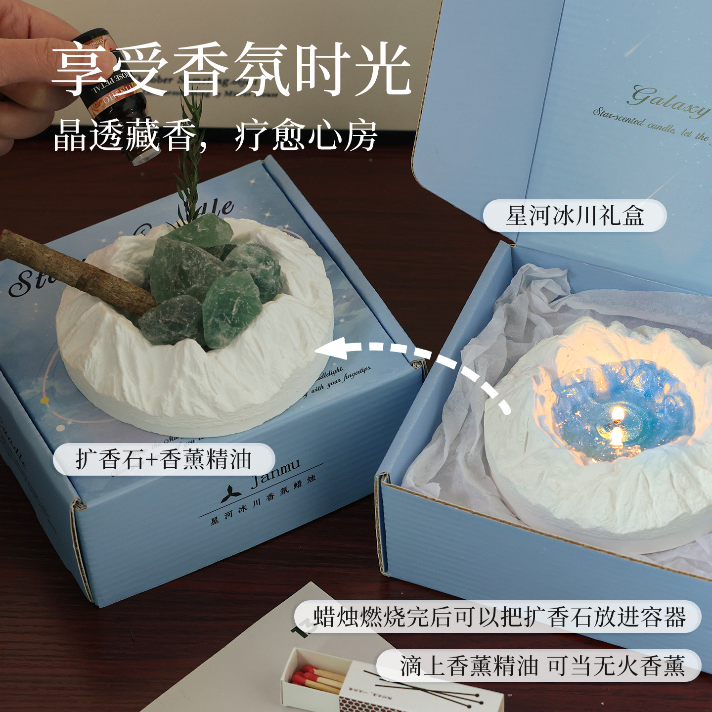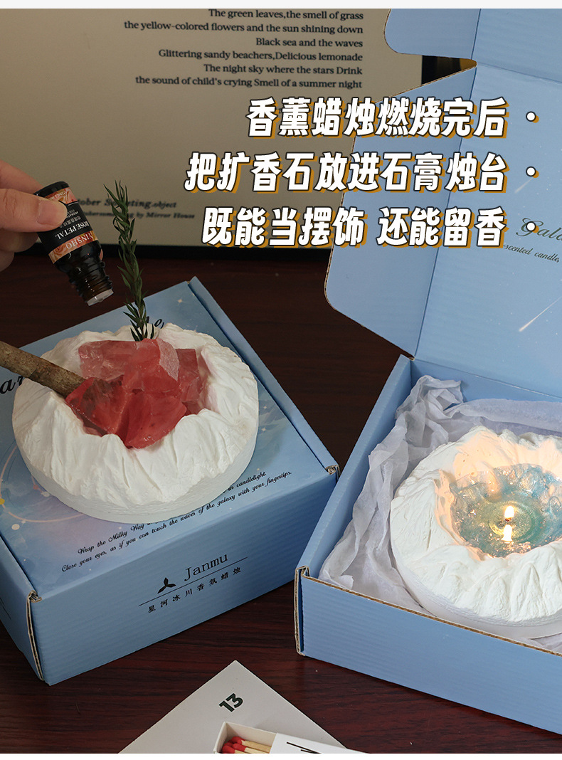 陨石坑冰川香薰蜡烛礼盒小众感卧室实用送男女生日礼物闺蜜学生