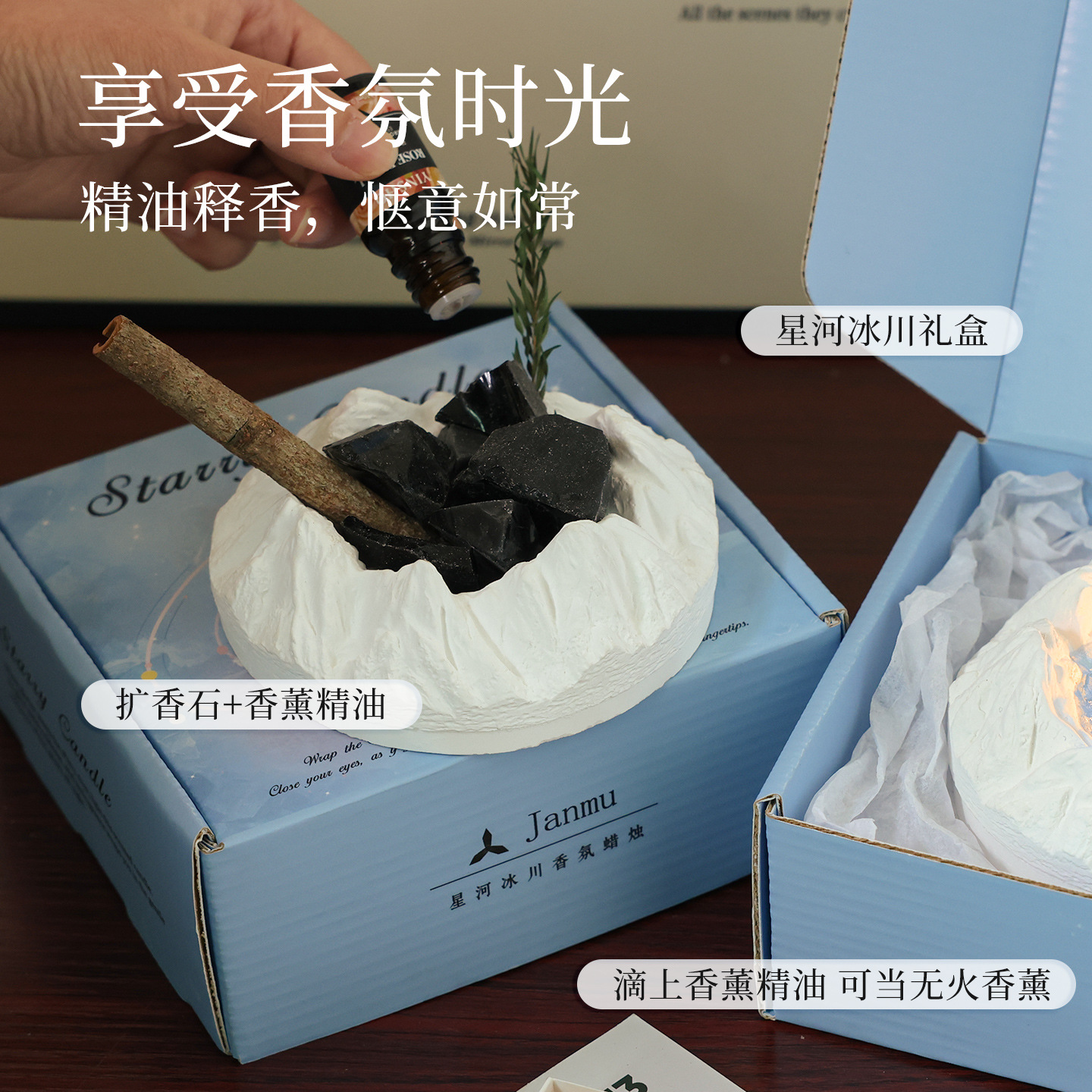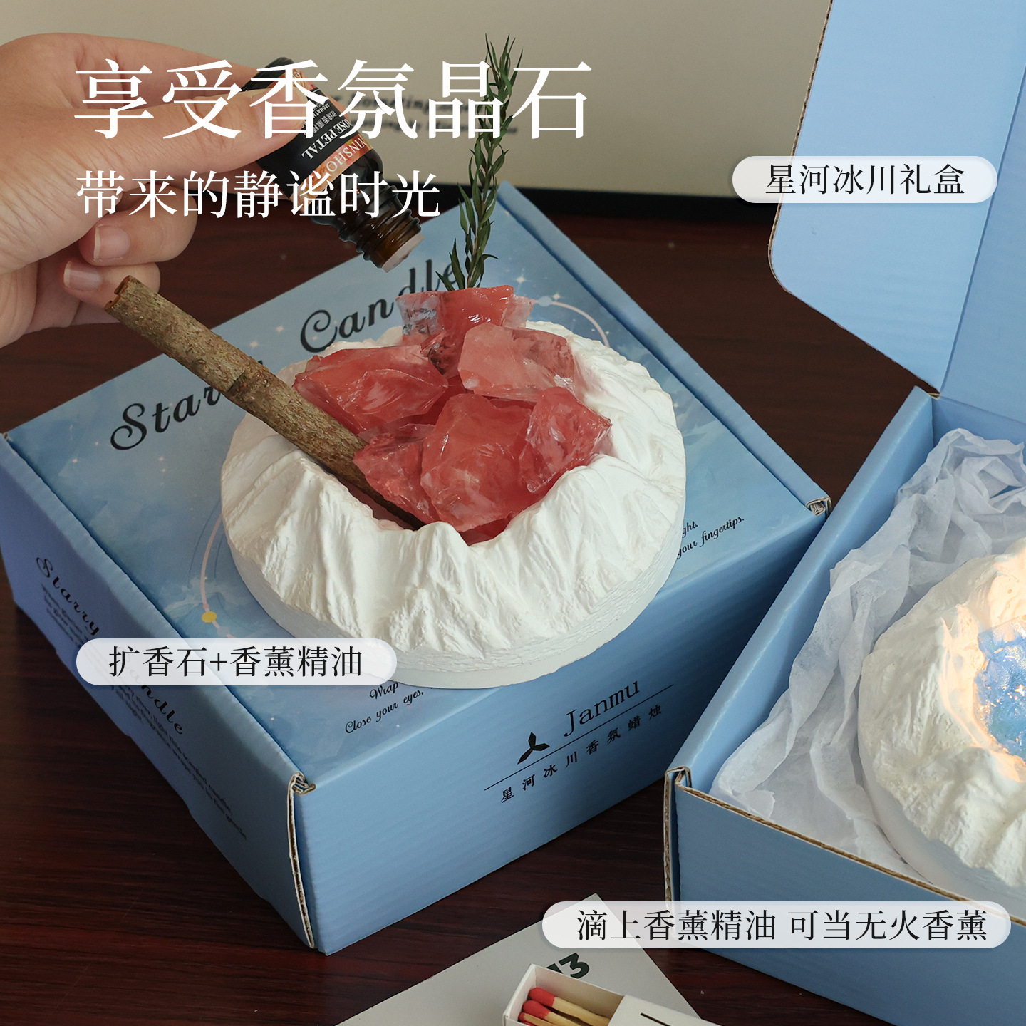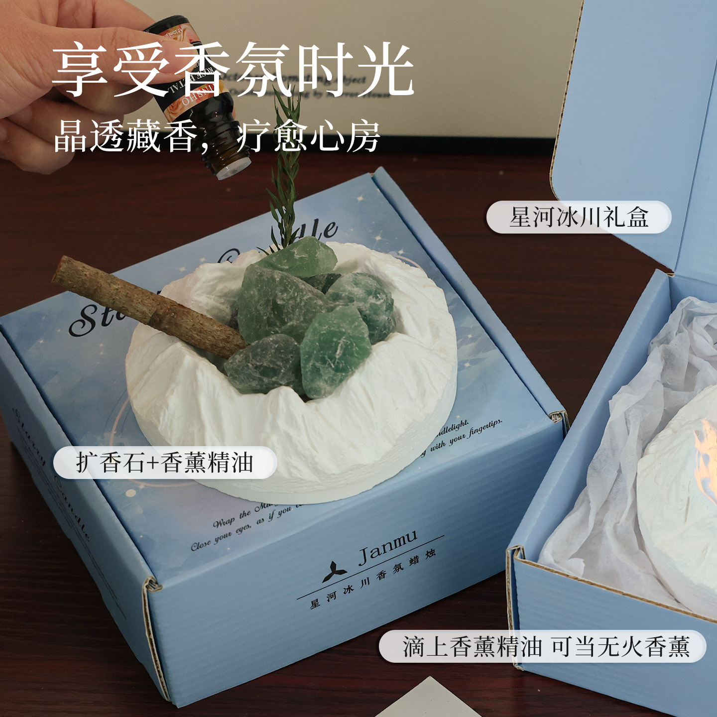 陨石坑冰川香薰蜡烛礼盒小众感卧室实用送男女生日礼物闺蜜学生