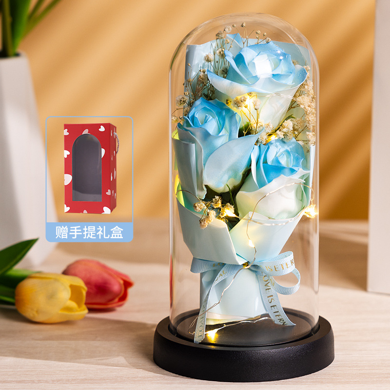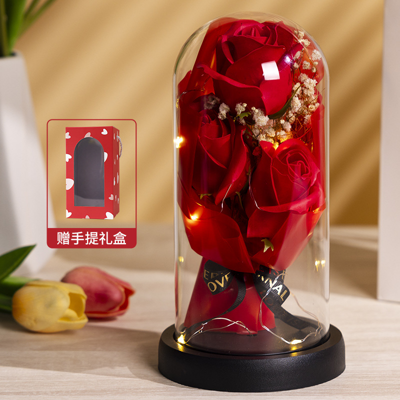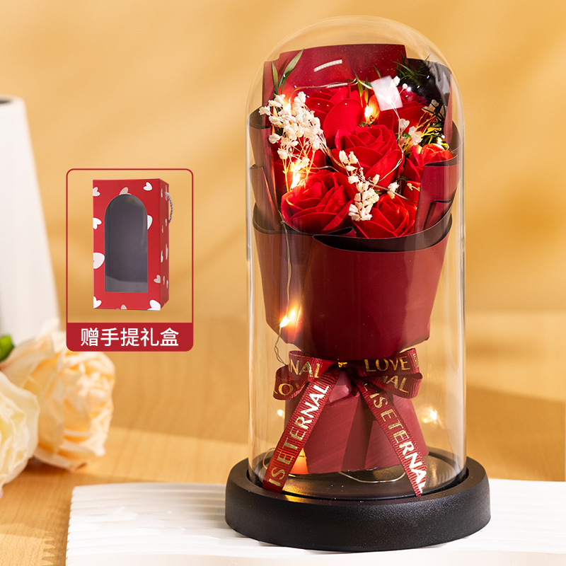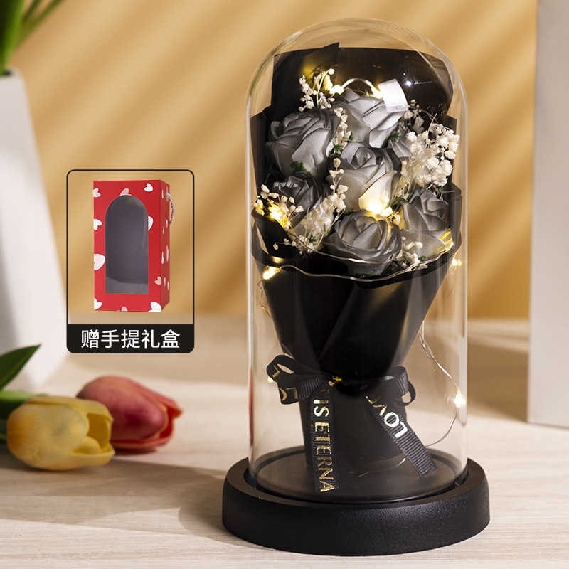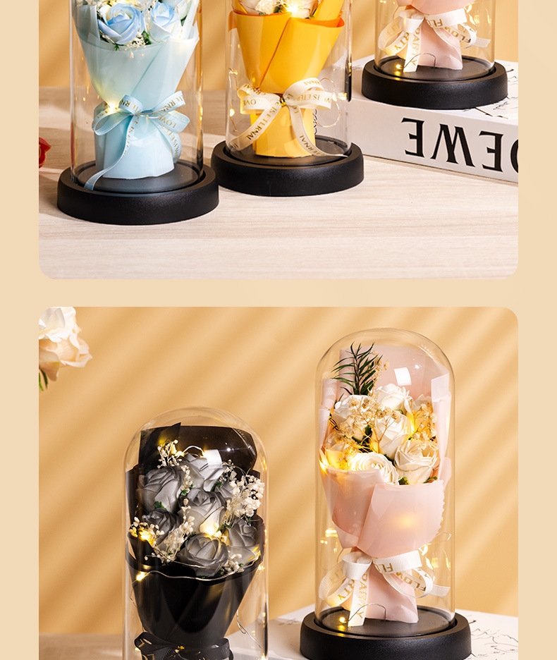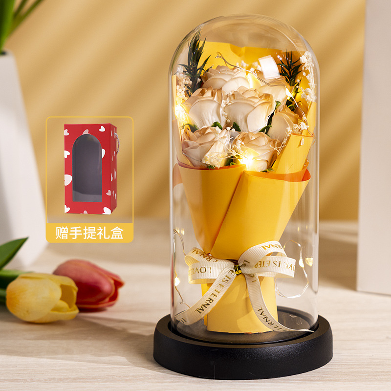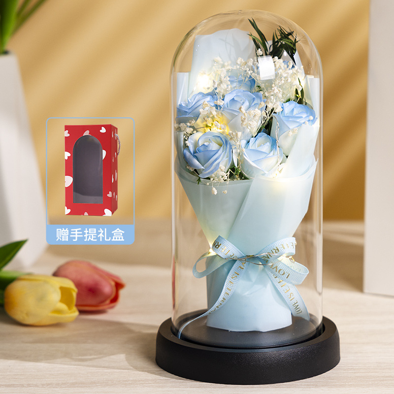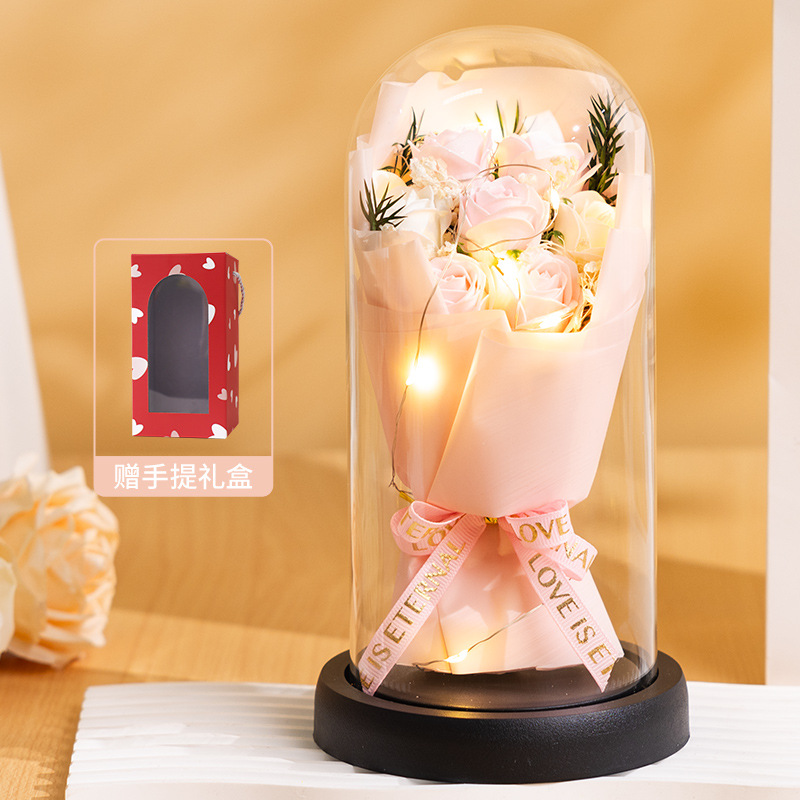 亚克力罩玫瑰香皂花永生花干花束礼盒发光生日礼物送女友实用摆件