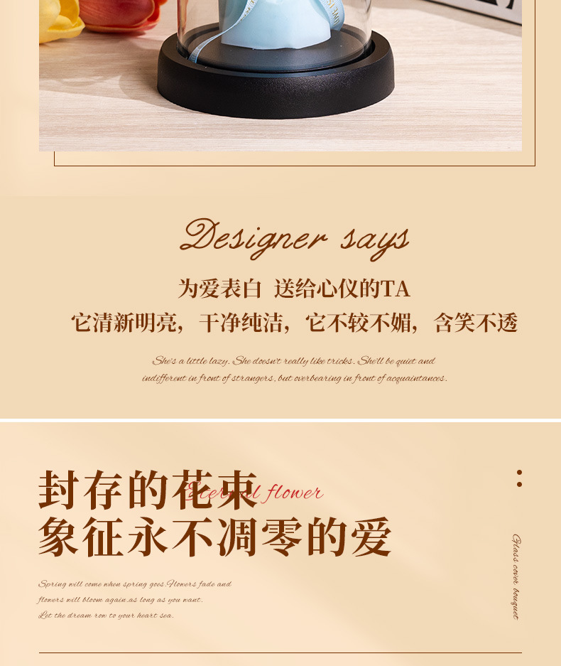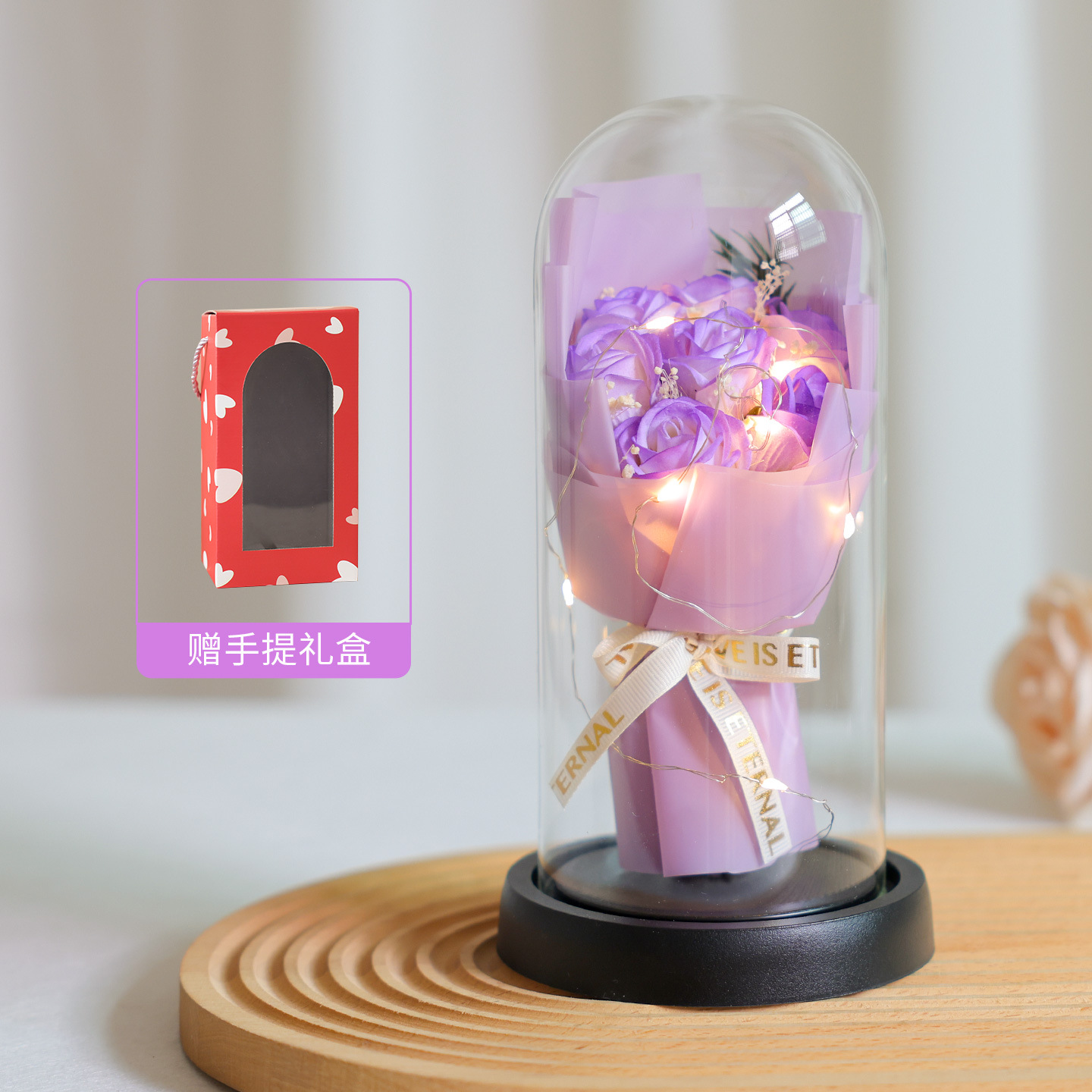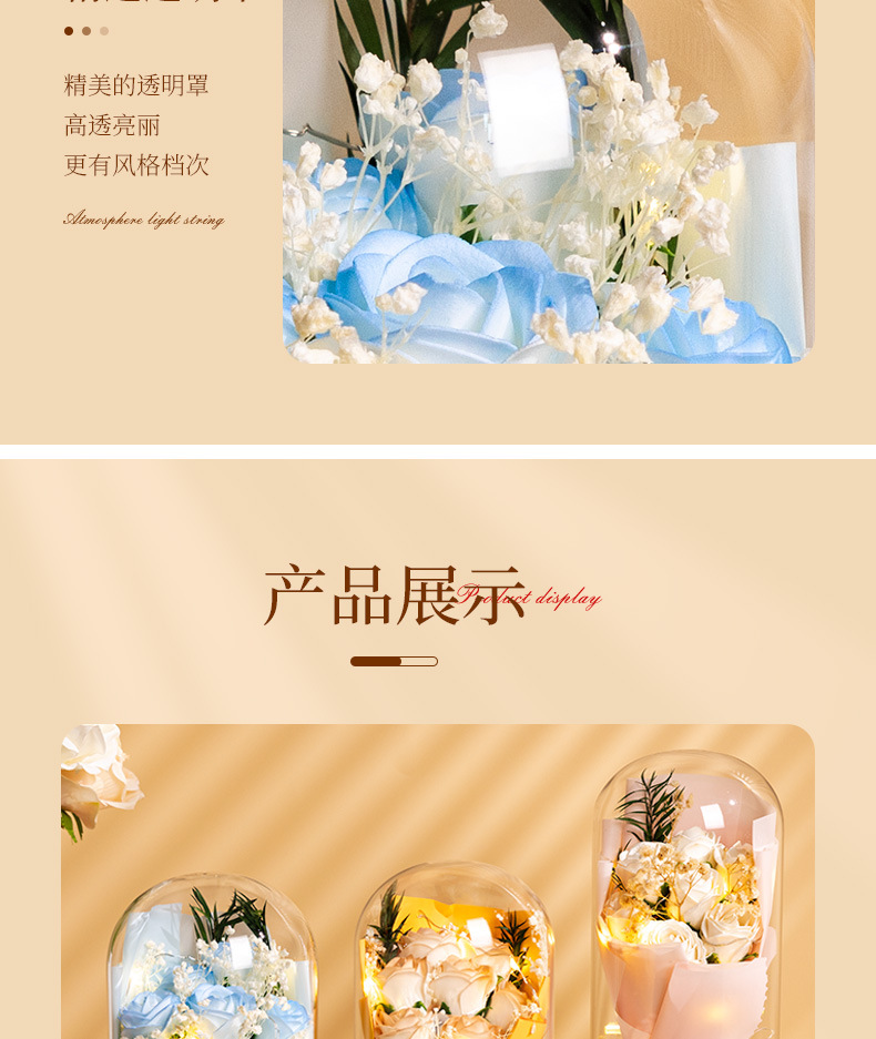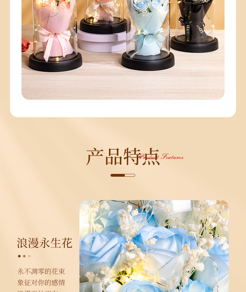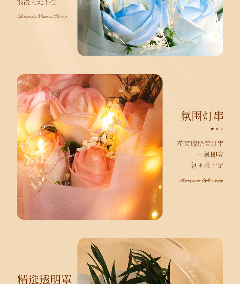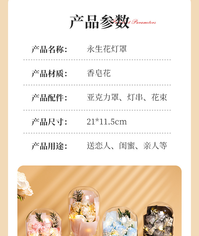 亚克力罩玫瑰香皂花永生花干花束礼盒发光生日礼物送女友实用摆件