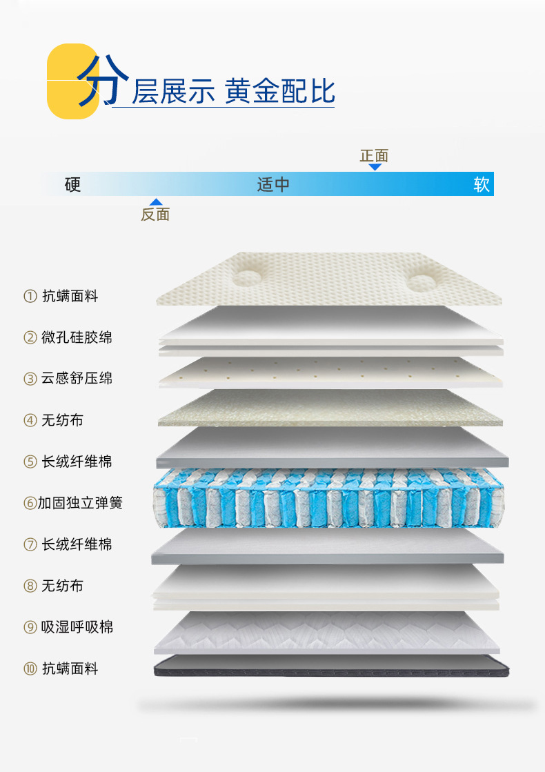 佛山弹簧床垫独立弹簧软硬两用儿童1.5米1.8m五星酒床垫席梦思