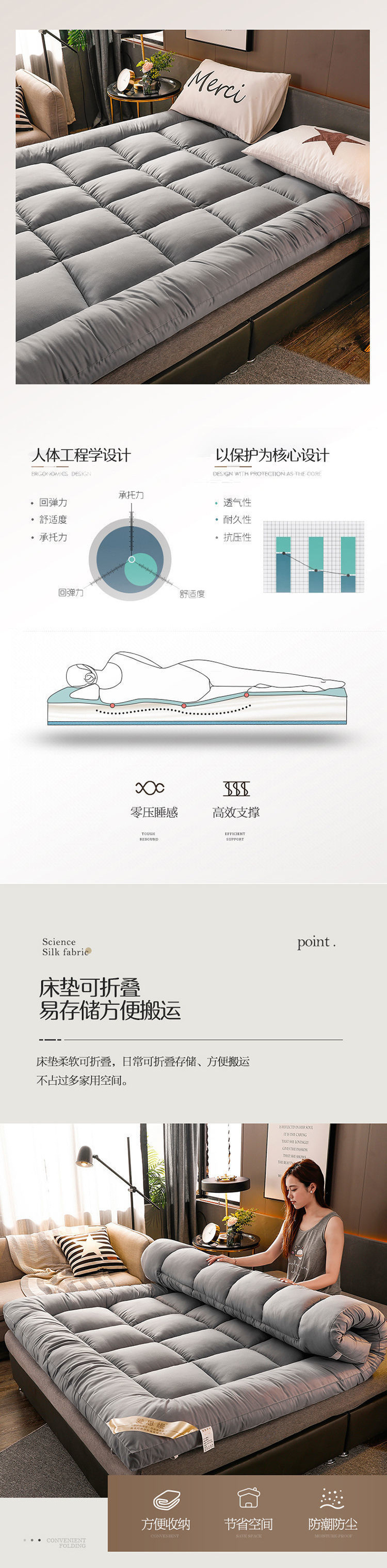 床垫软垫加厚10cm家用褥子榻榻米护垫1.5m双人1.8米折叠床褥四季
