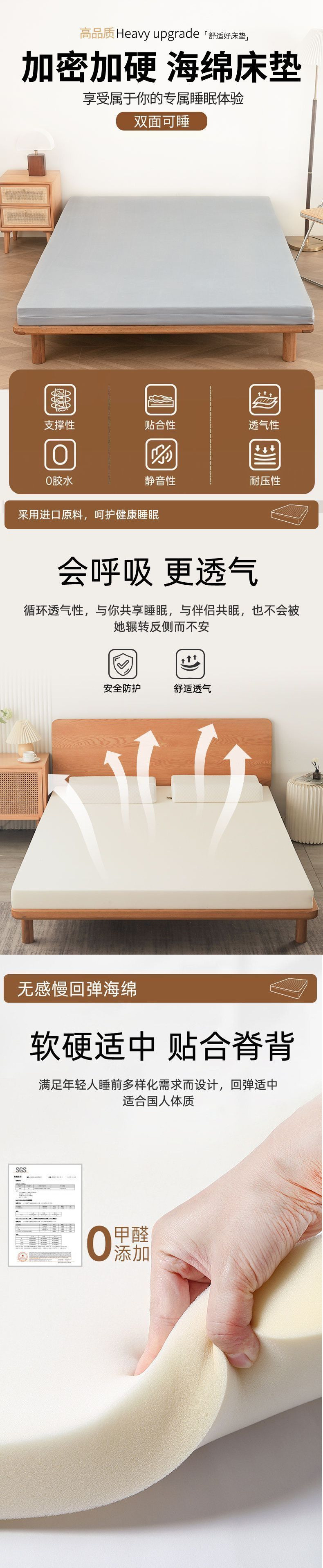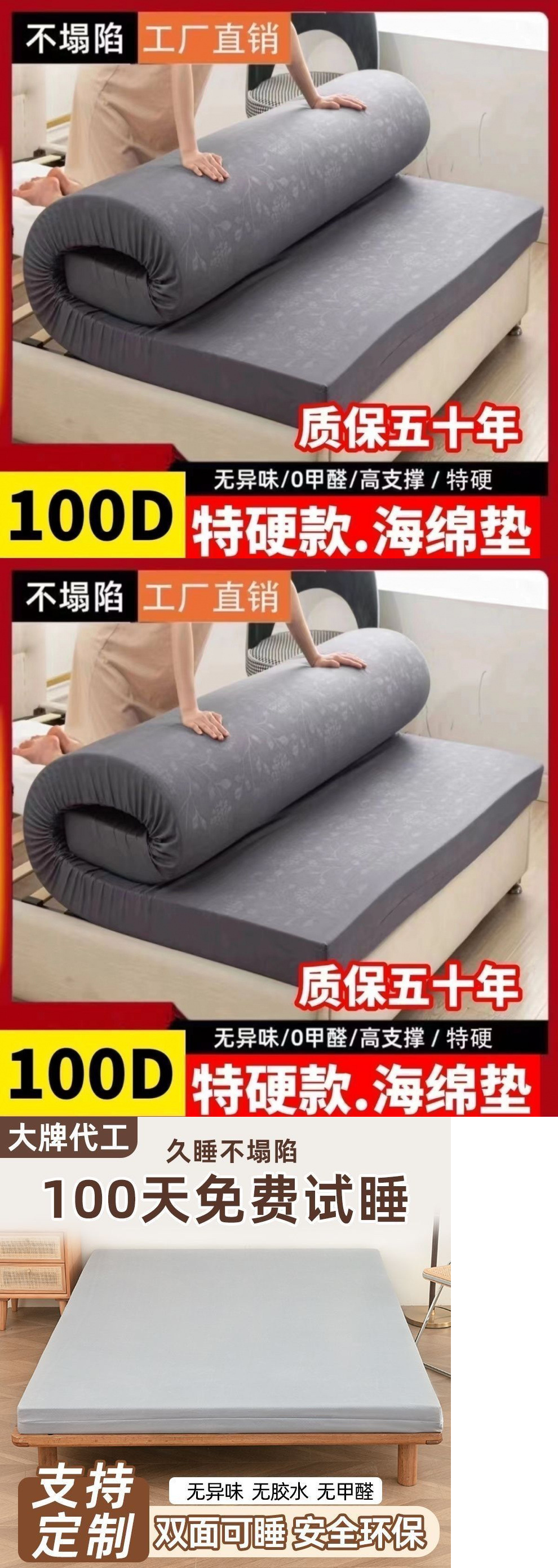 高密度海绵床垫家用学生宿舍单人双人加硬120DI订作工厂直销代发