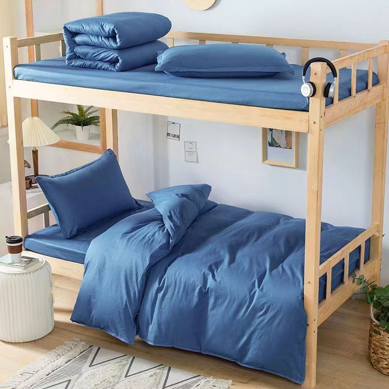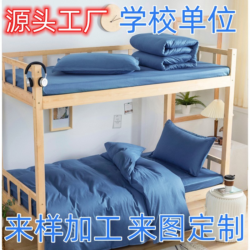 纯棉全棉水洗棉纯色刺绣单位学校宿舍三件套褥子六件套床上用品批