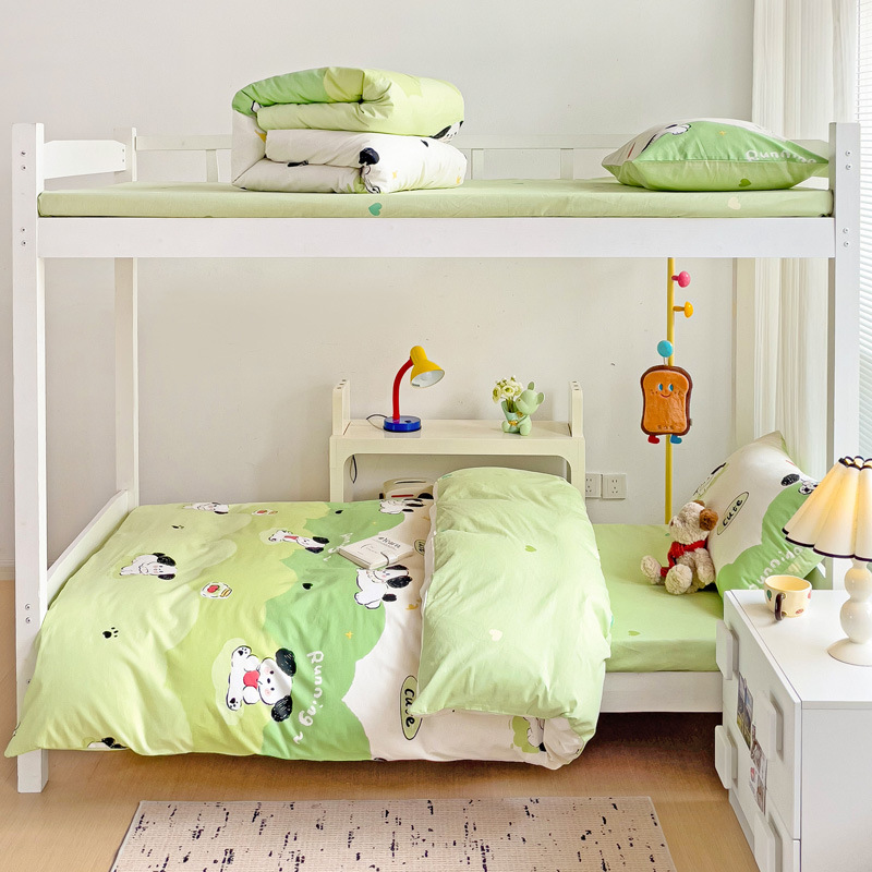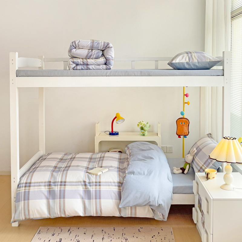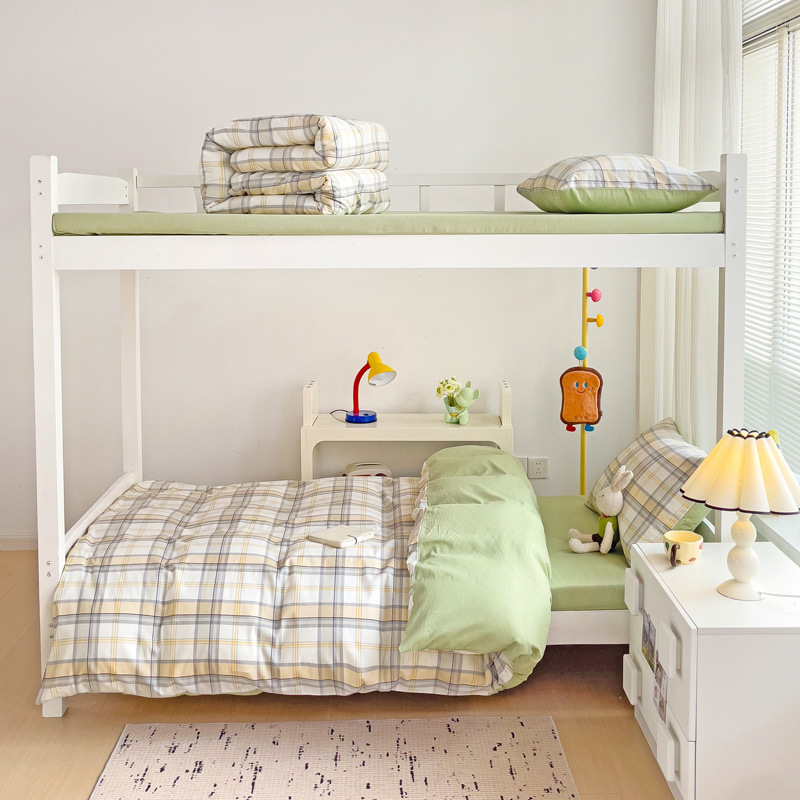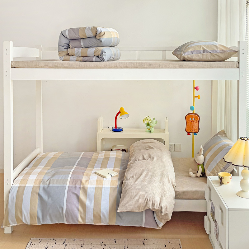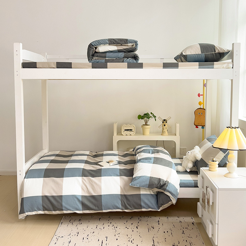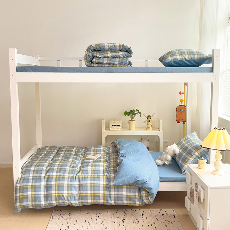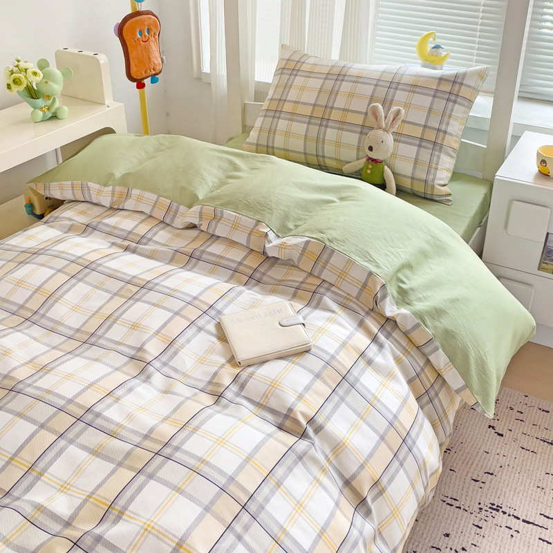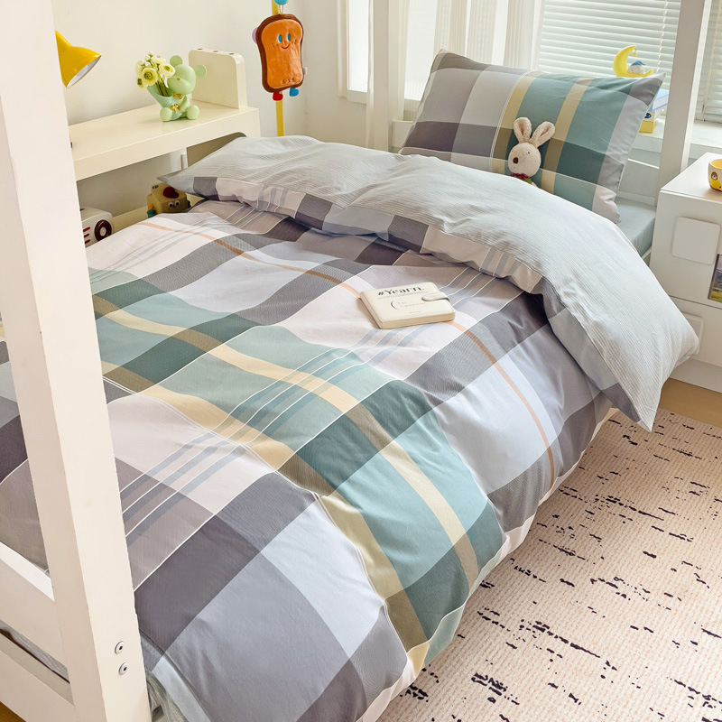 新款全棉AB版纯棉学校学生宿舍三件套亲肤舒适透气卡通格子三件套