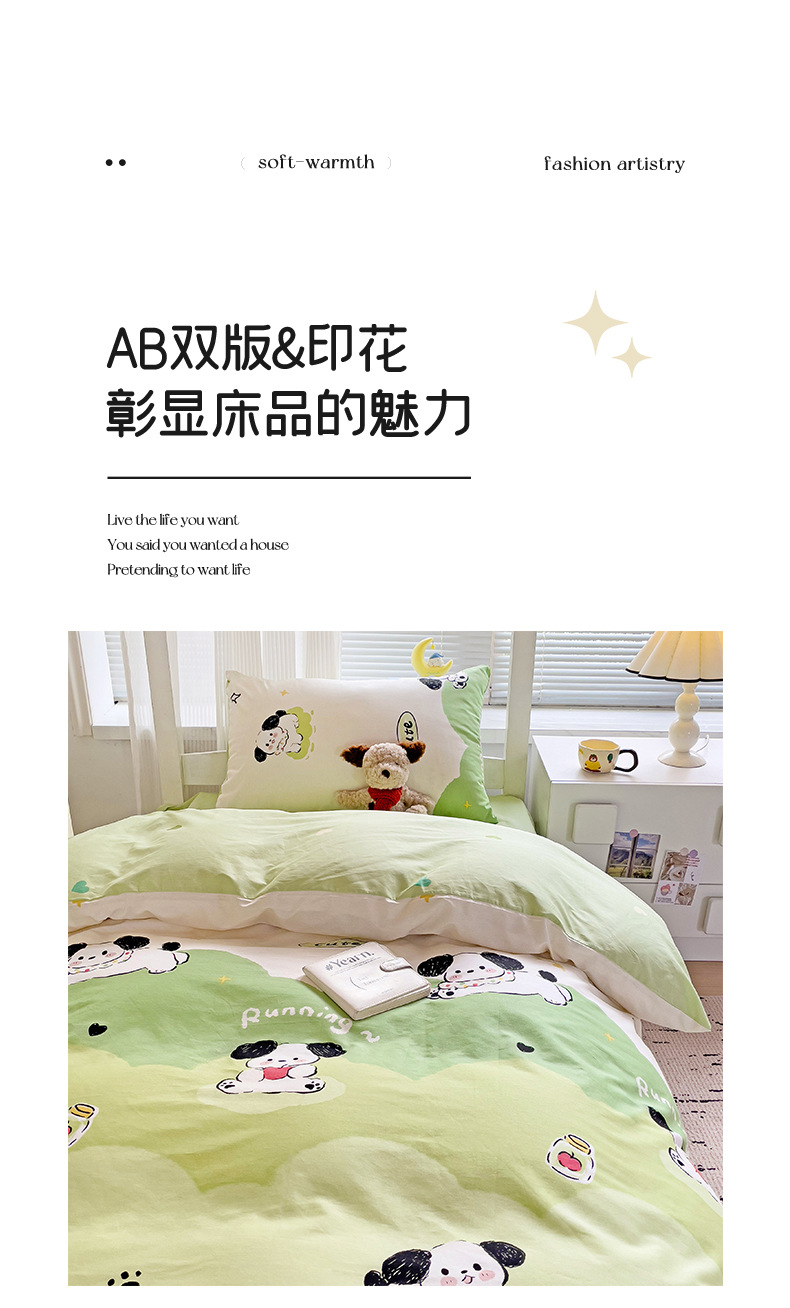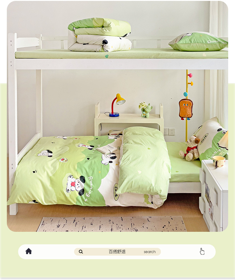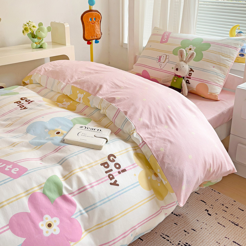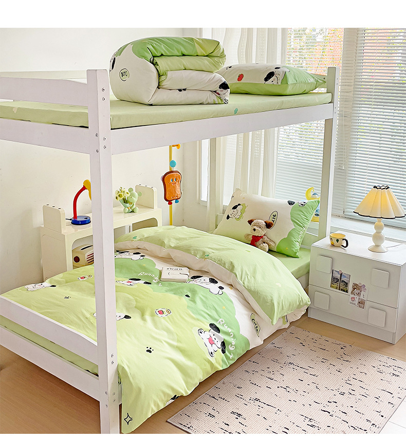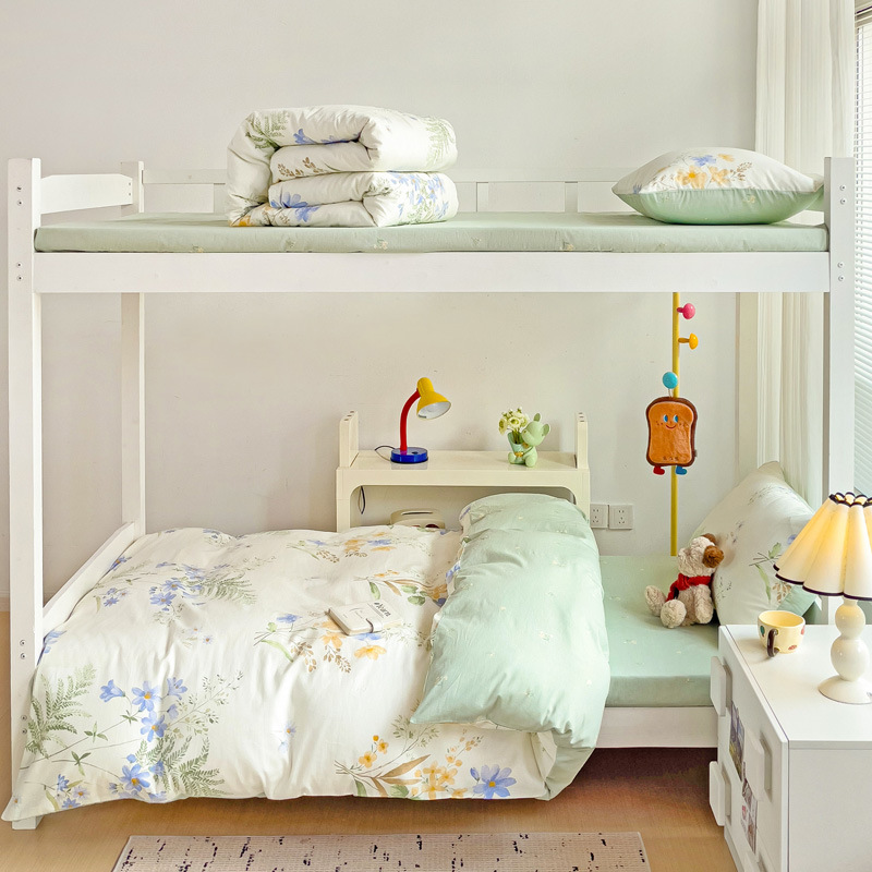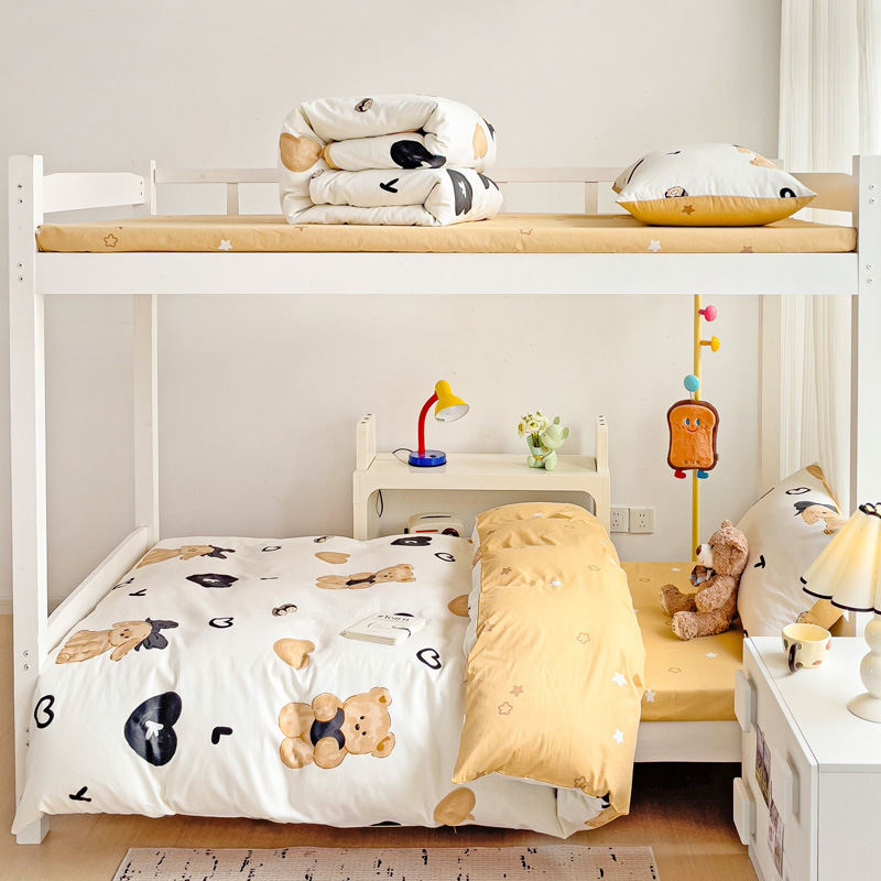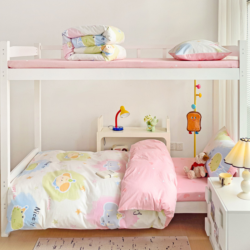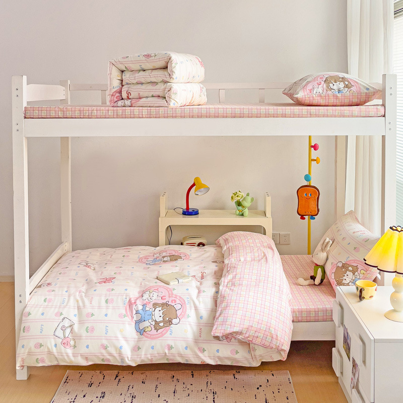 新款全棉AB版纯棉学校学生宿舍三件套亲肤舒适透气卡通格子三件套