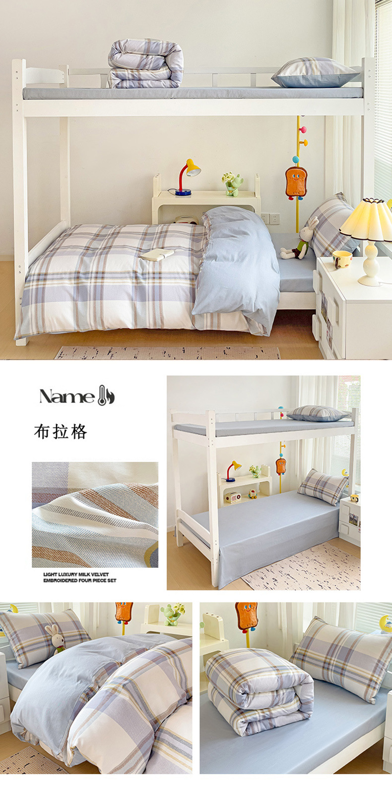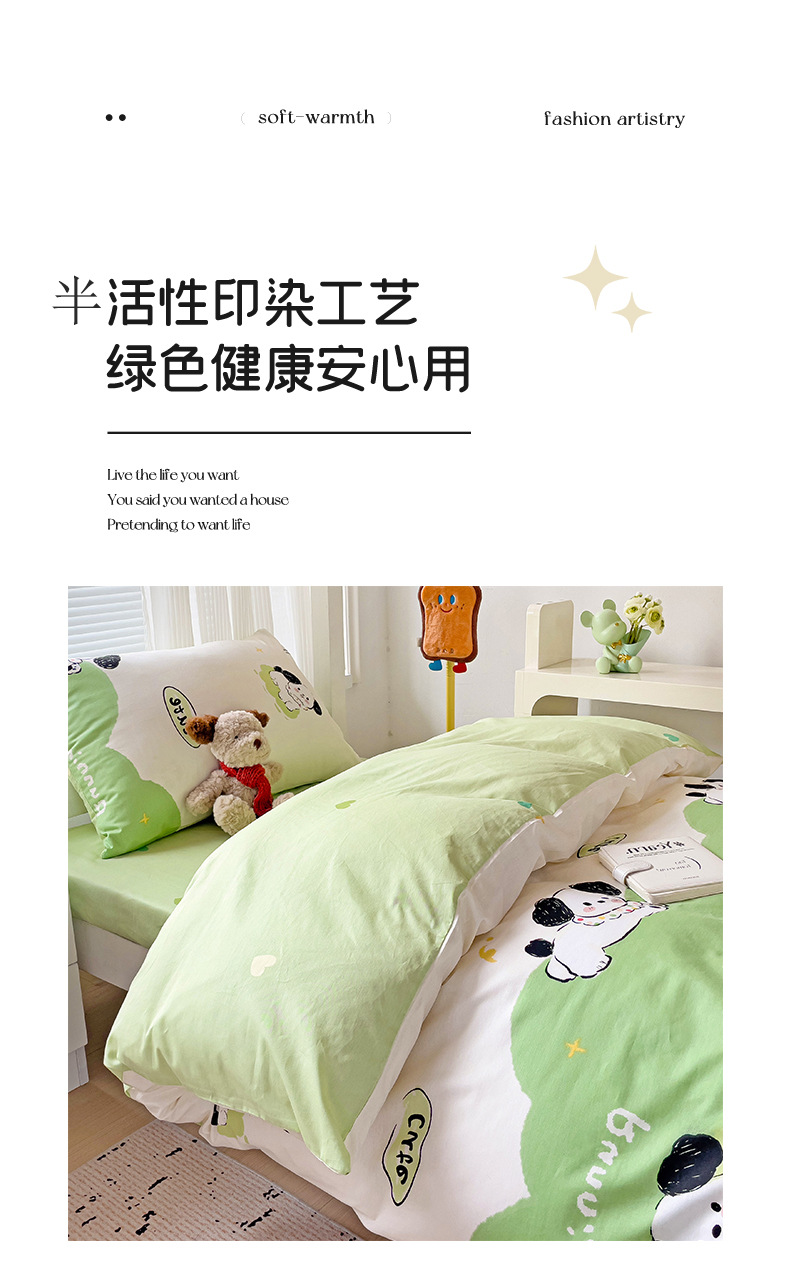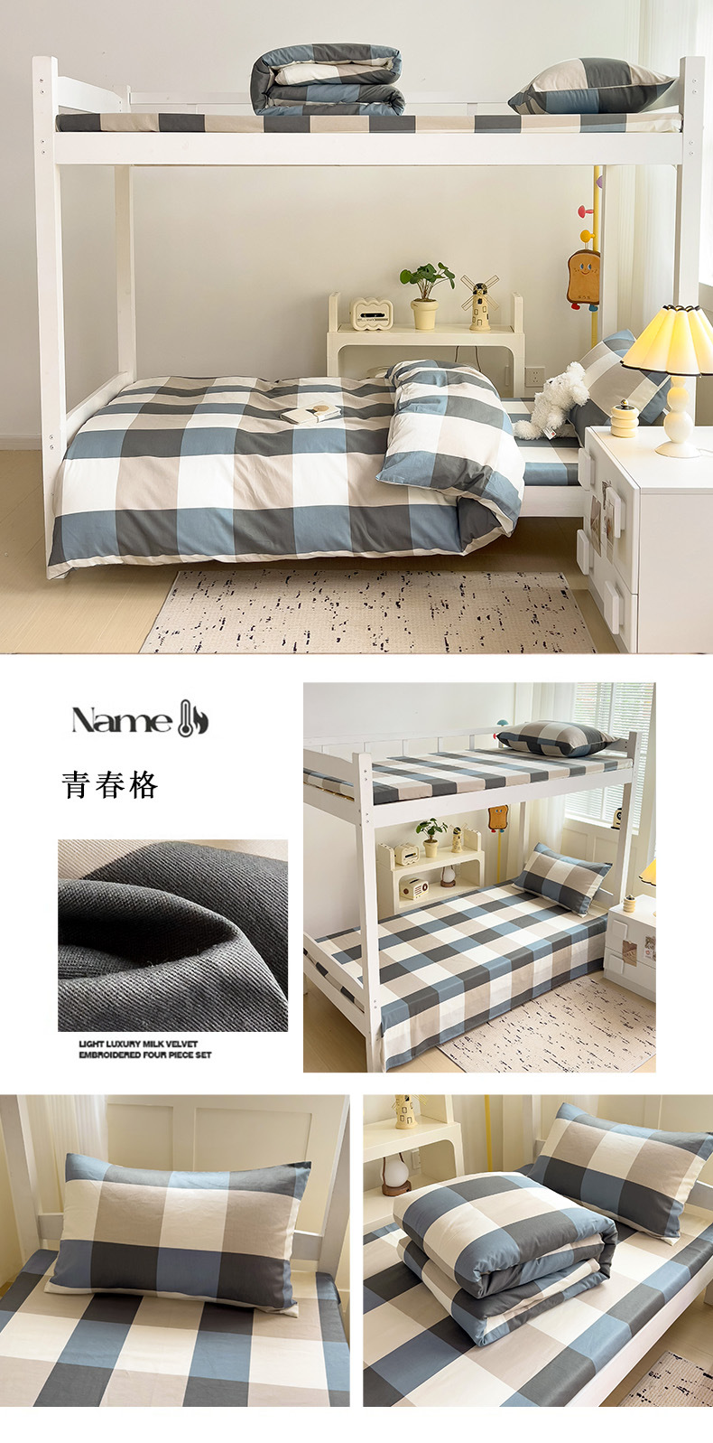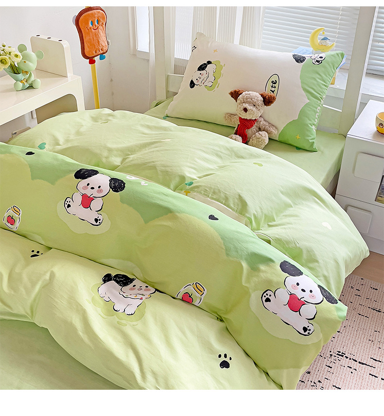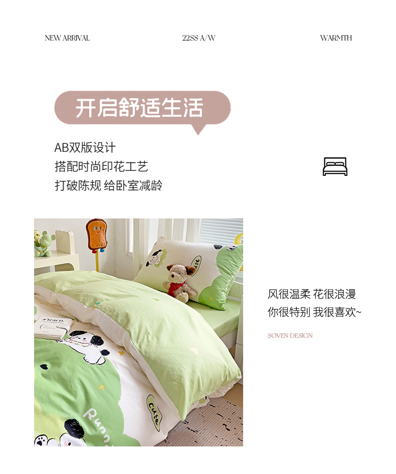 新款全棉AB版纯棉学校学生宿舍三件套亲肤舒适透气卡通格子三件套