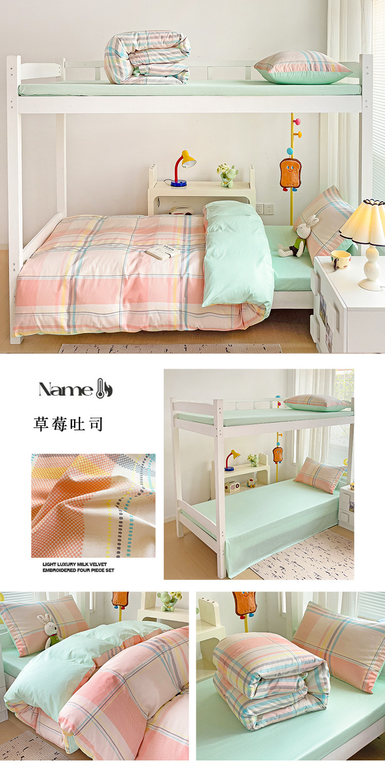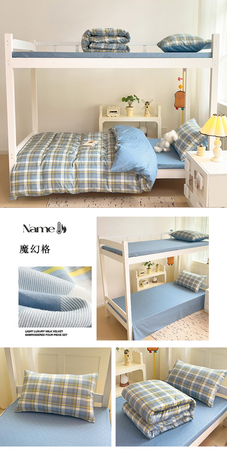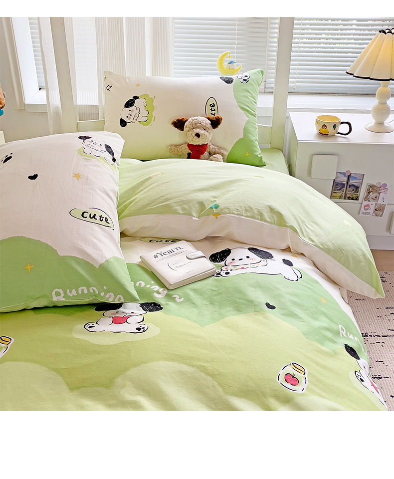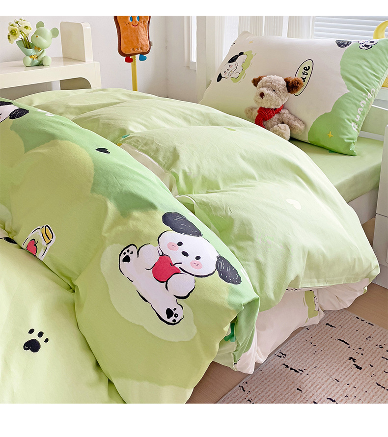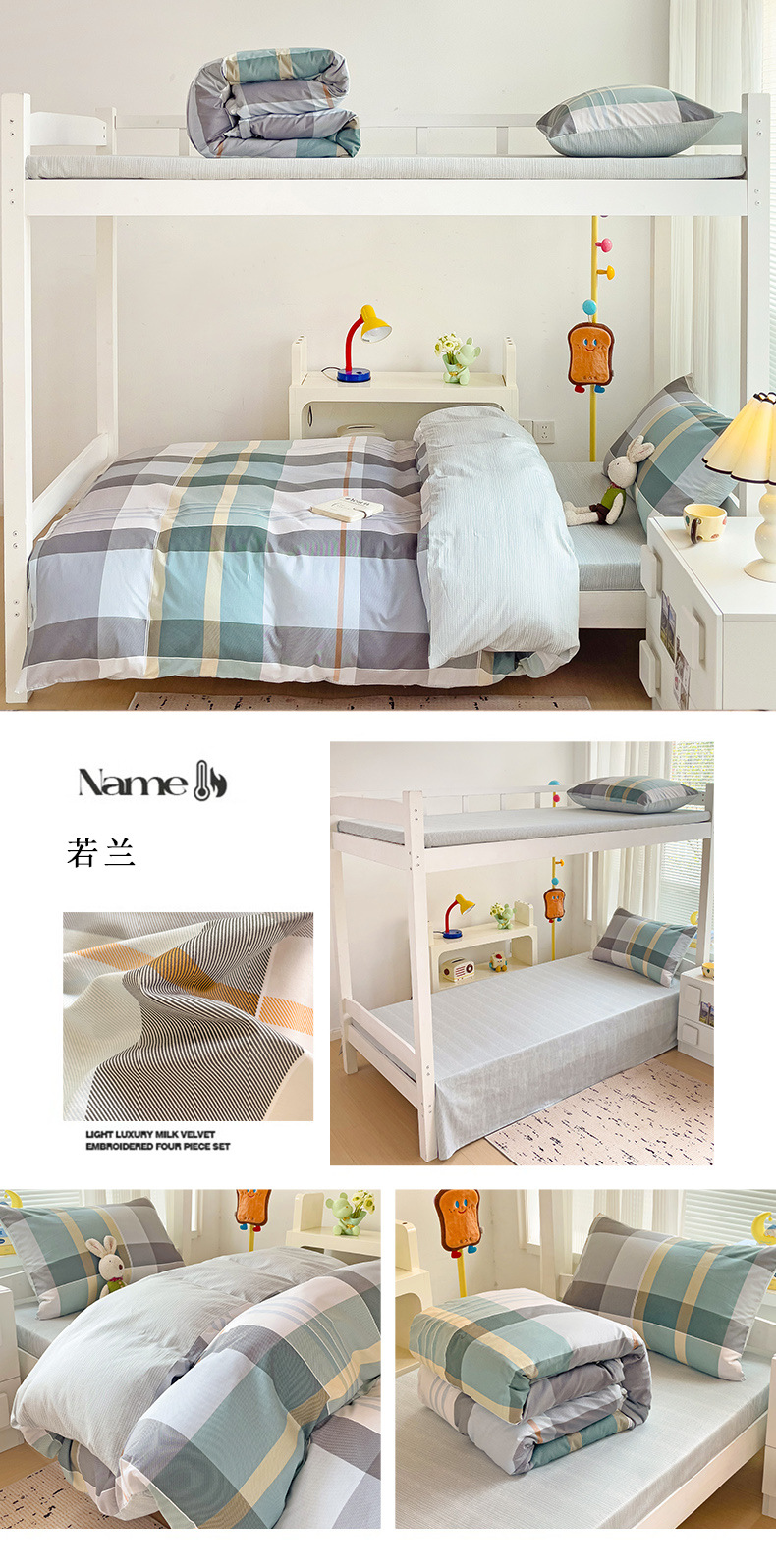 新款全棉AB版纯棉学校学生宿舍三件套亲肤舒适透气卡通格子三件套