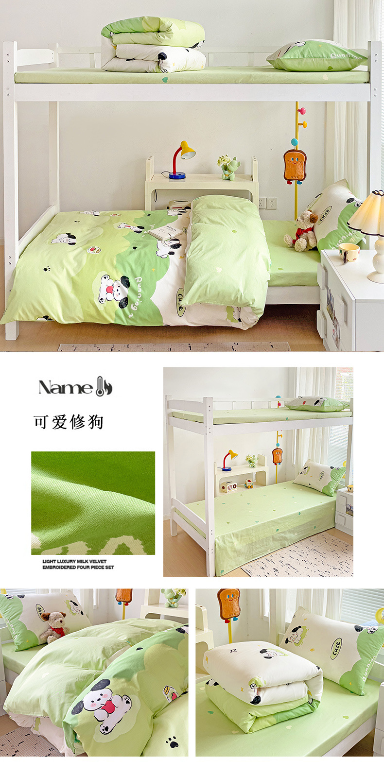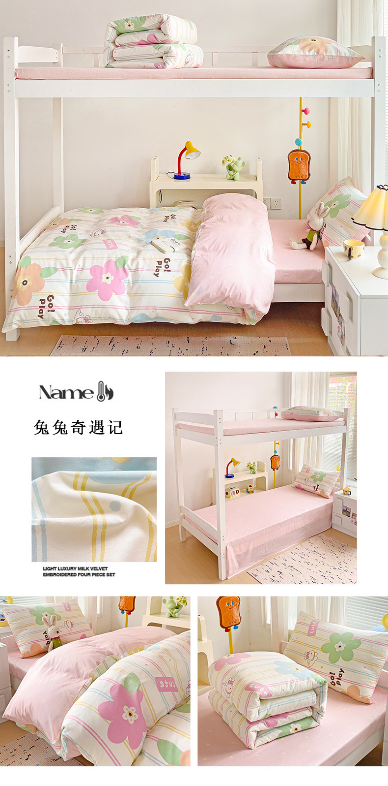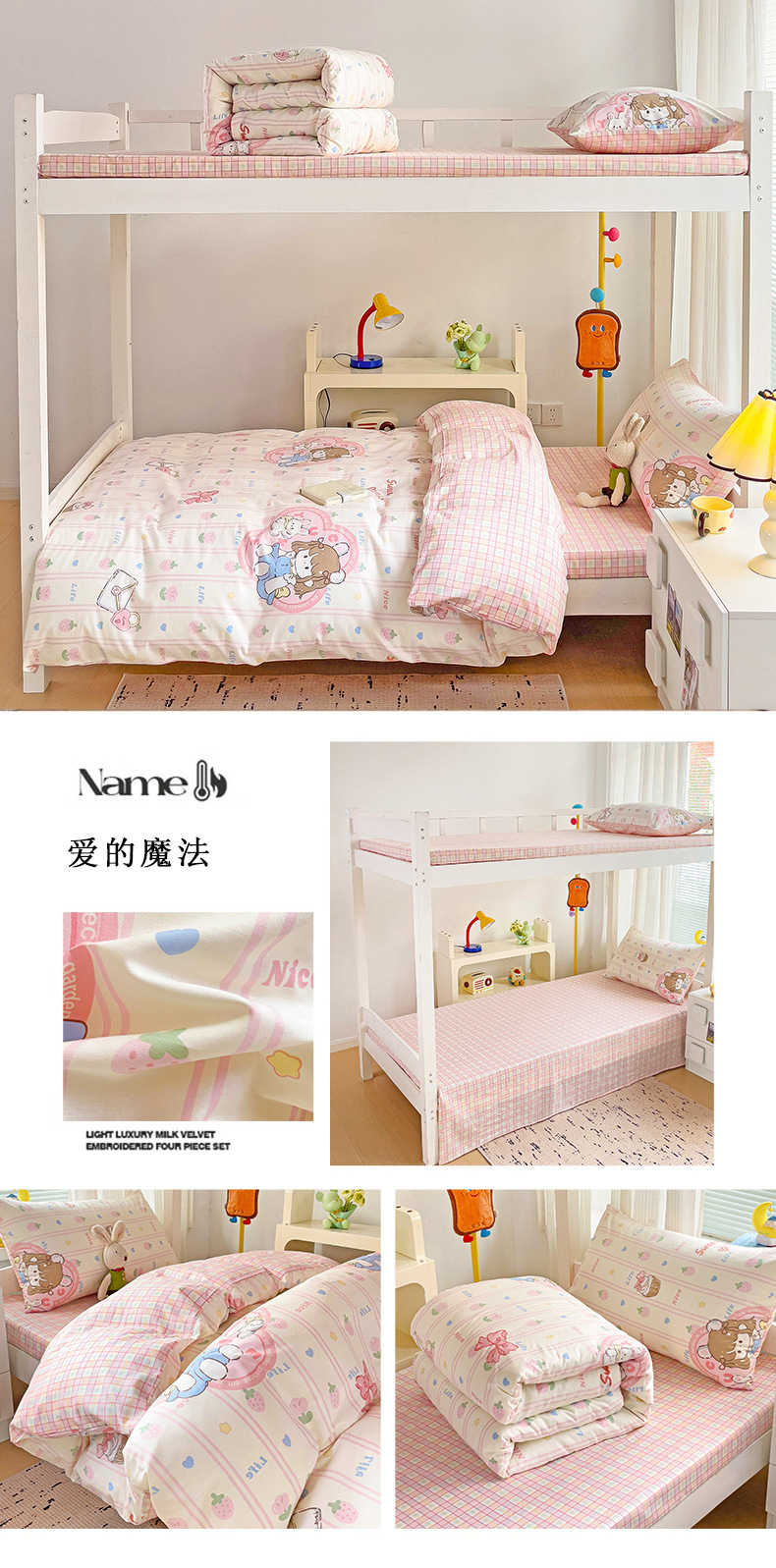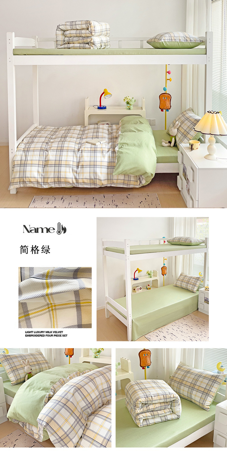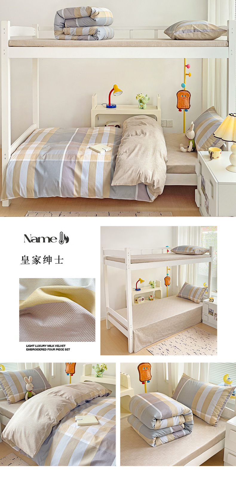 新款全棉AB版纯棉学校学生宿舍三件套亲肤舒适透气卡通格子三件套