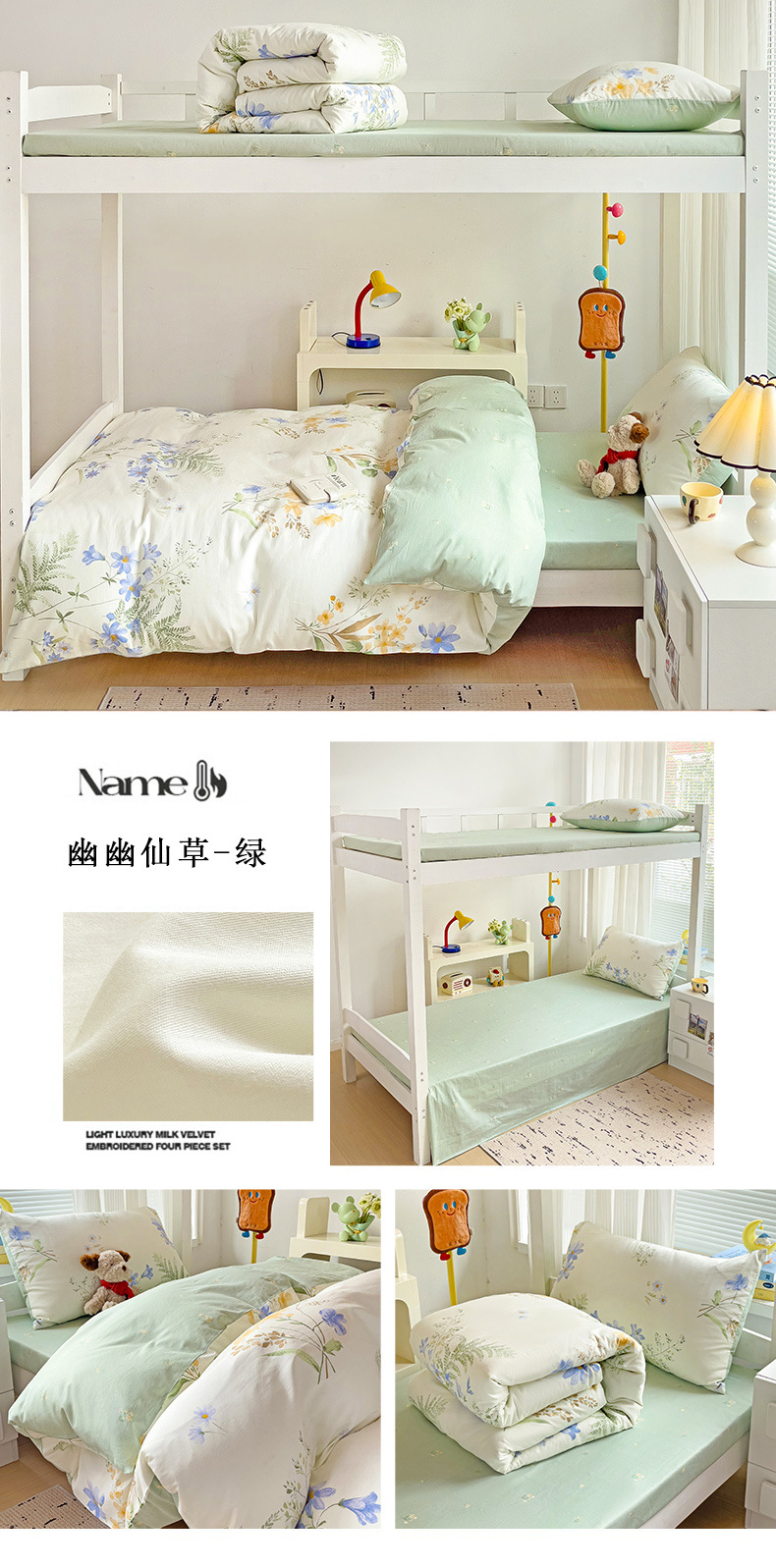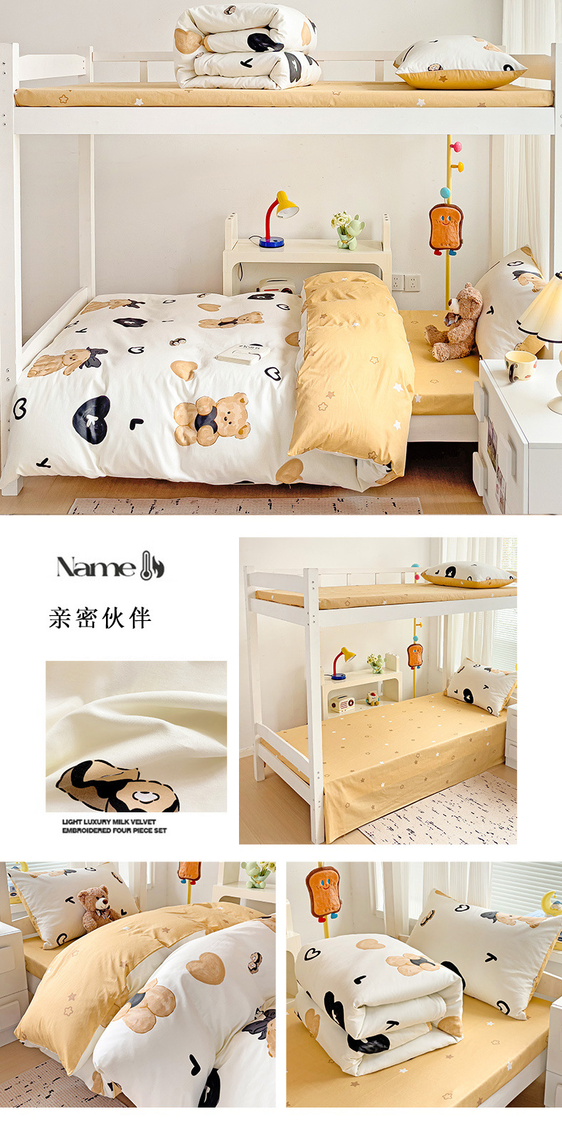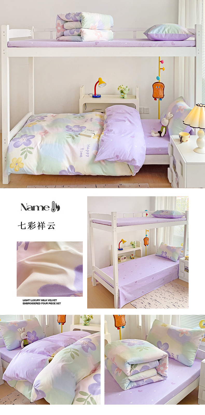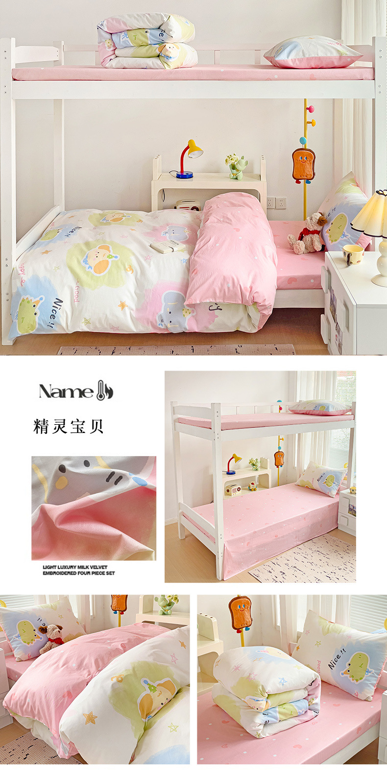 新款全棉AB版纯棉学校学生宿舍三件套亲肤舒适透气卡通格子三件套