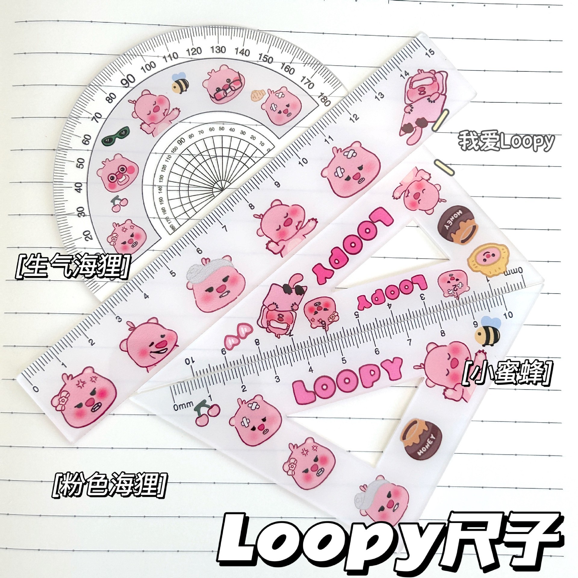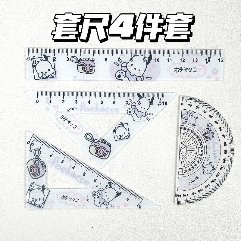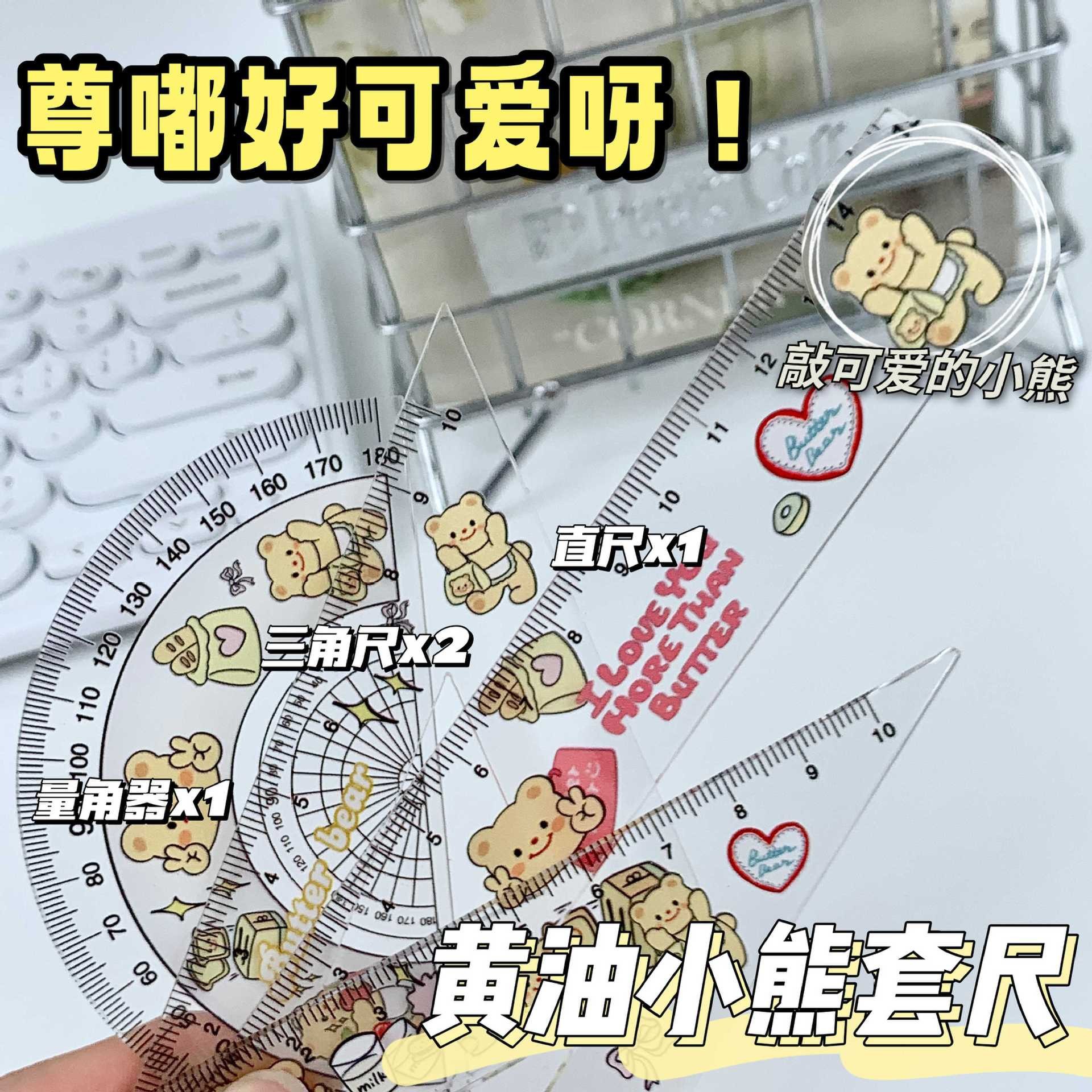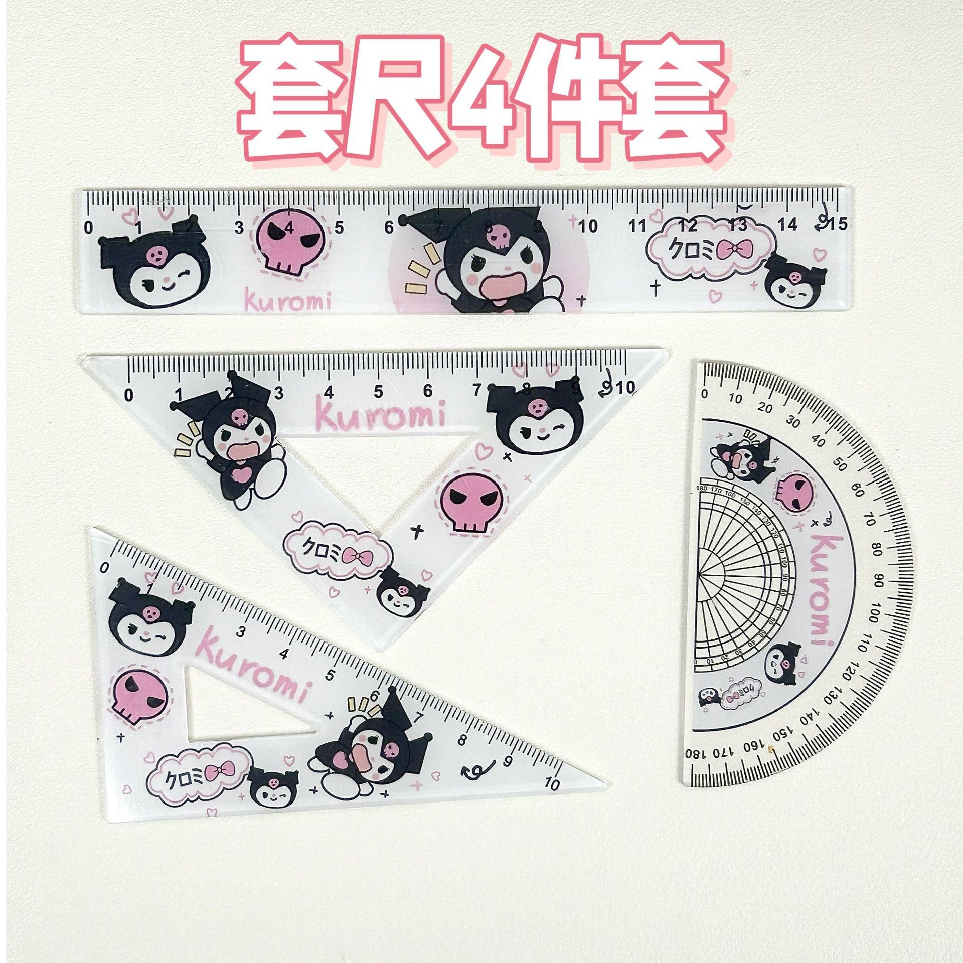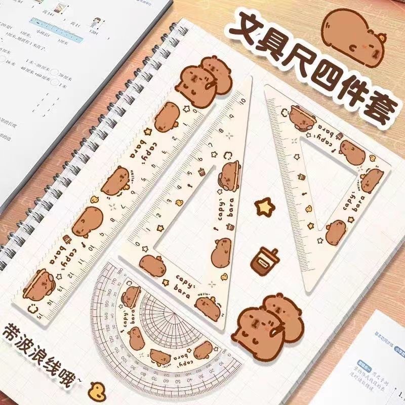 卡通水豚卡皮巴拉套尺高颜值学生学习专用文具直尺三角尺子四件套