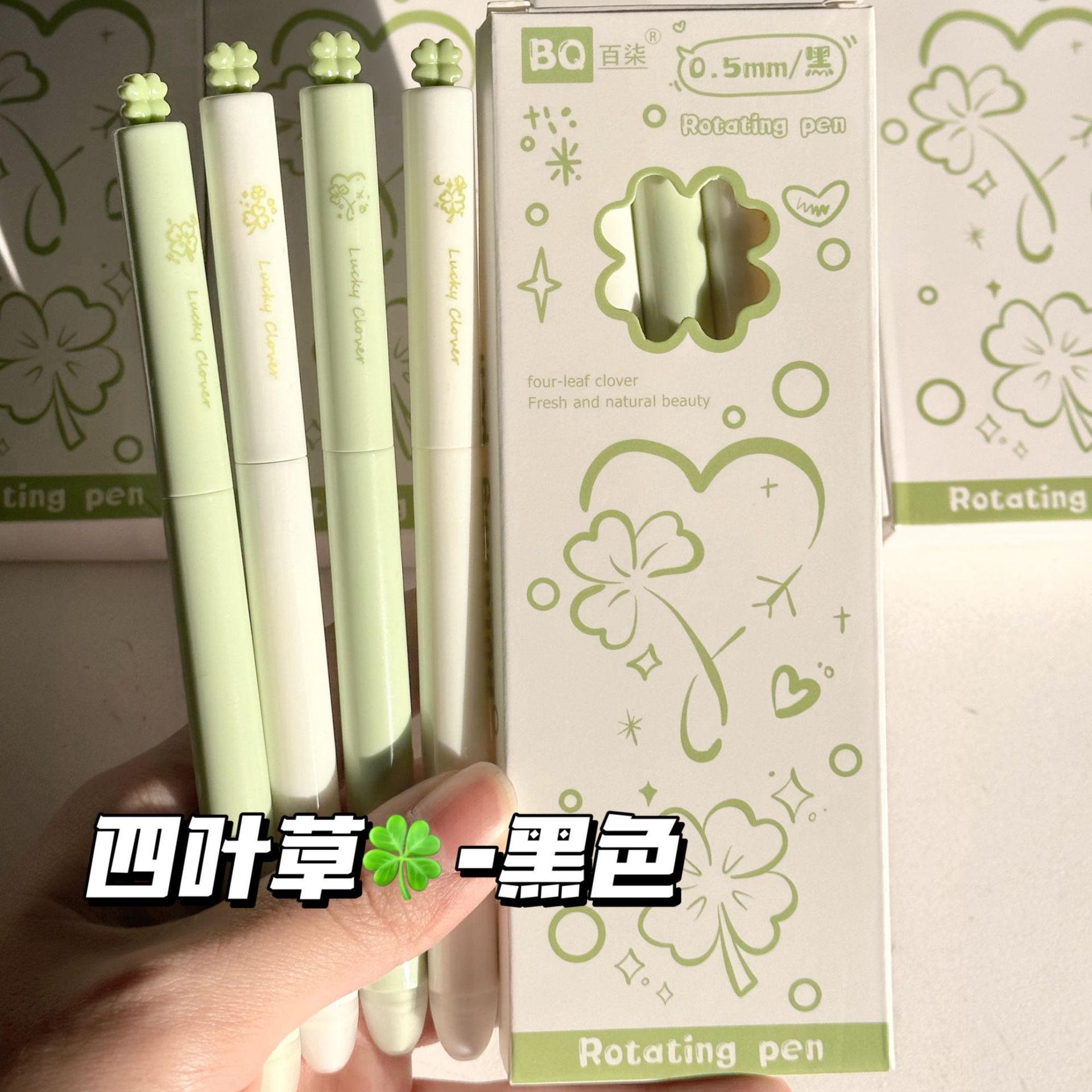 四叶草可擦笔中性笔高颜值ins风旋转刷题笔0.5mm学生考试刷题黑笔