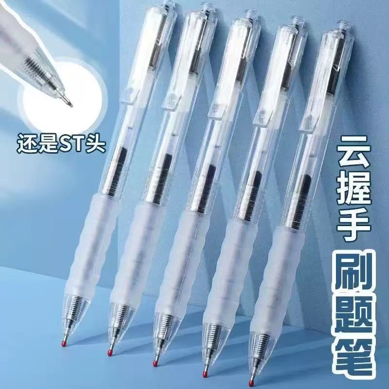 云握刷题神器按动透明速干中性笔高颜值ST头按压式简约签字笔