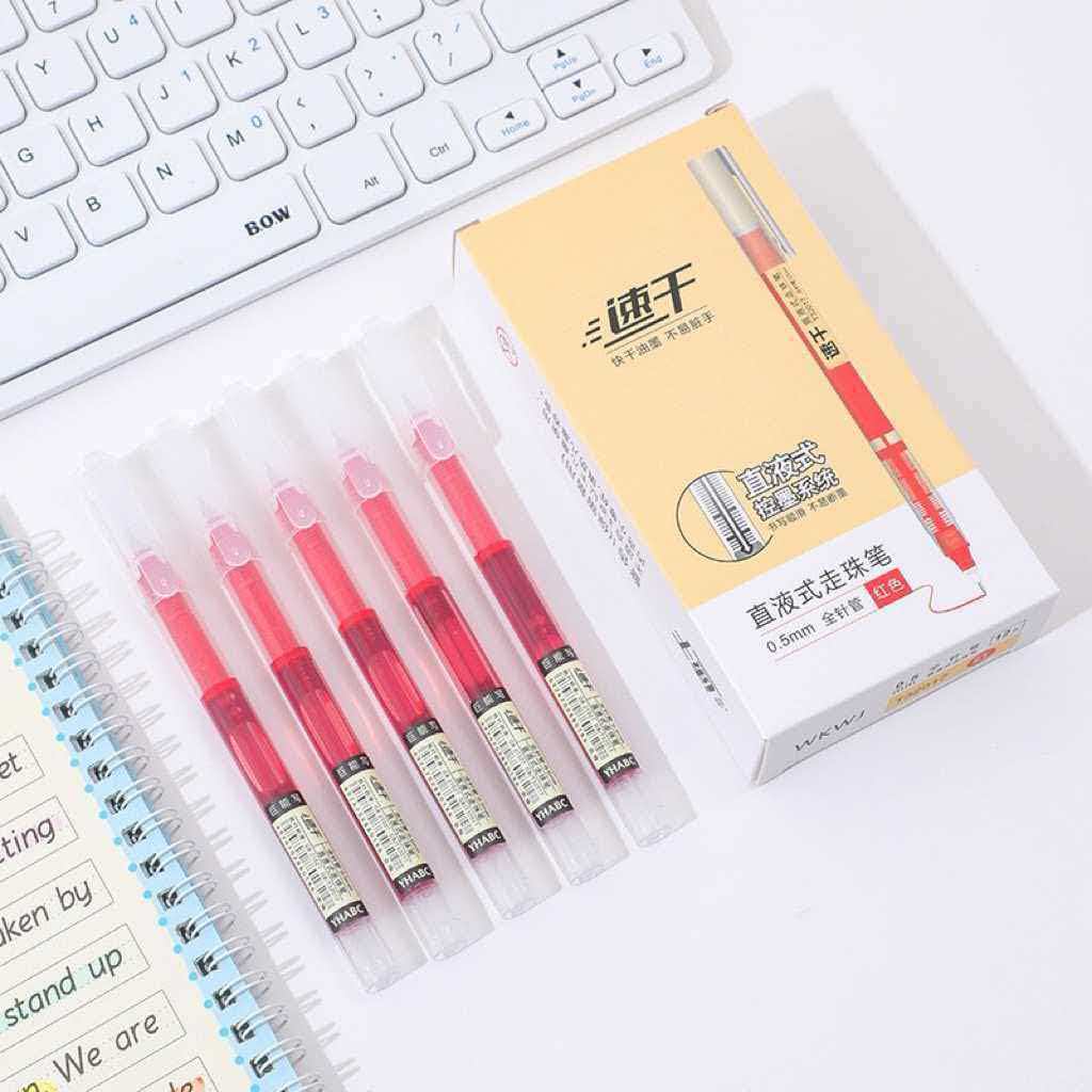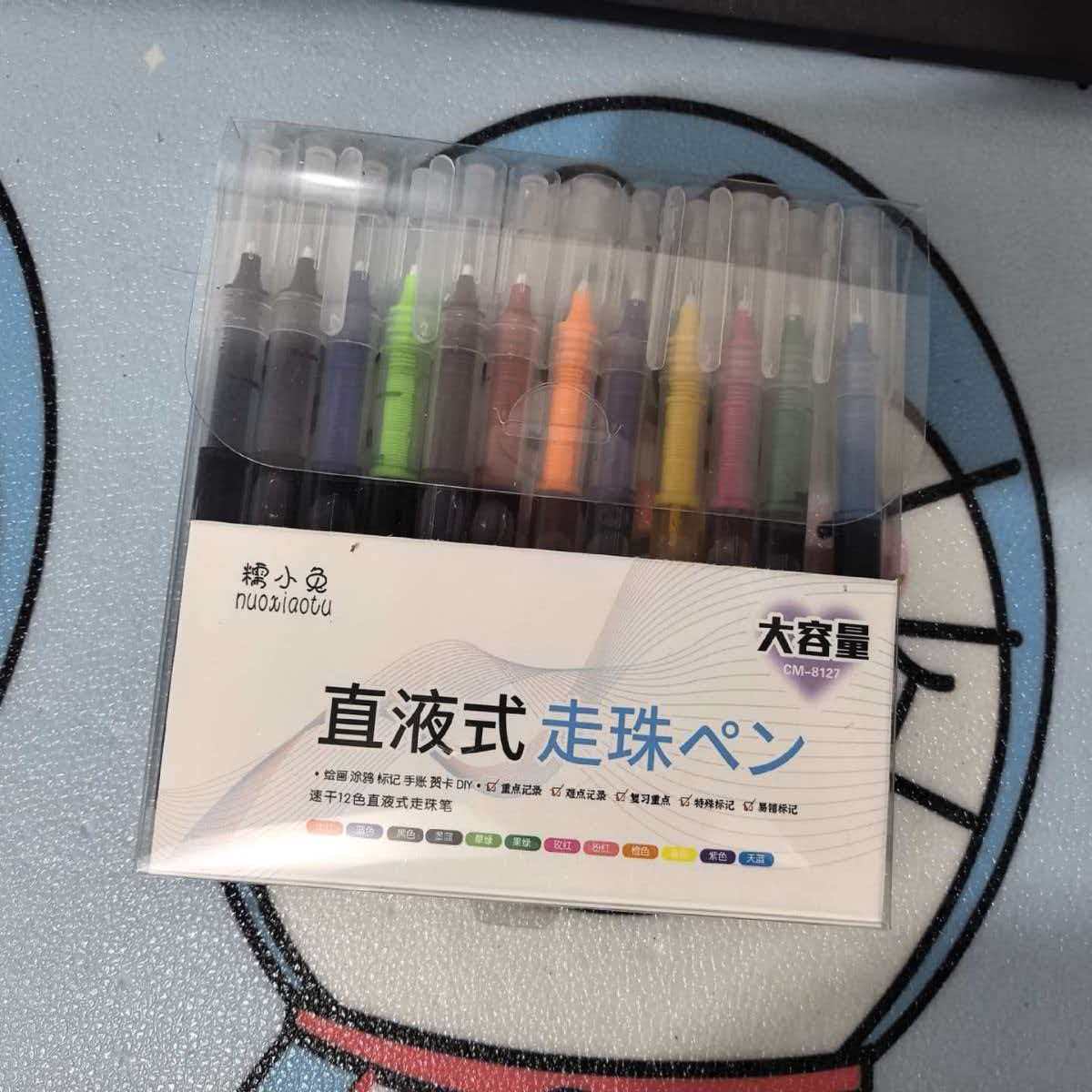 12色彩色直液式走珠笔中性笔0.5mm大容量可爱多色速干直液式水笔
