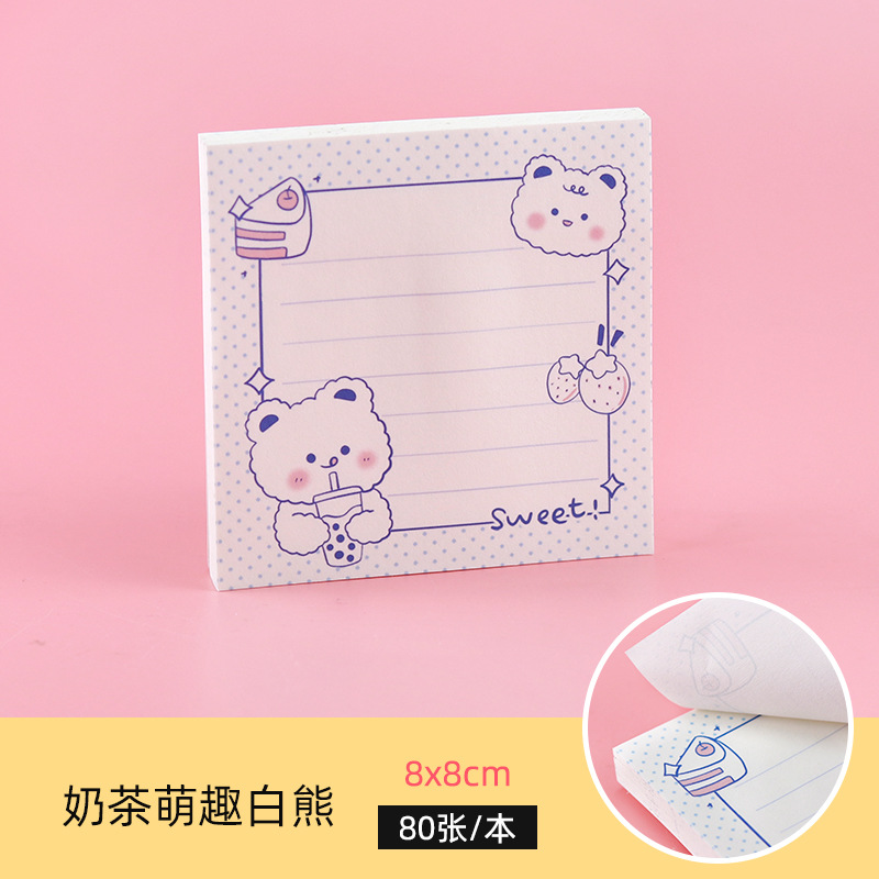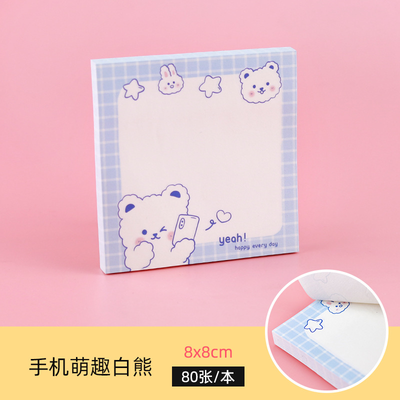 盐甜系便利贴ins小清新萌趣白熊高颜值有粘性便签学生可爱便签贴
