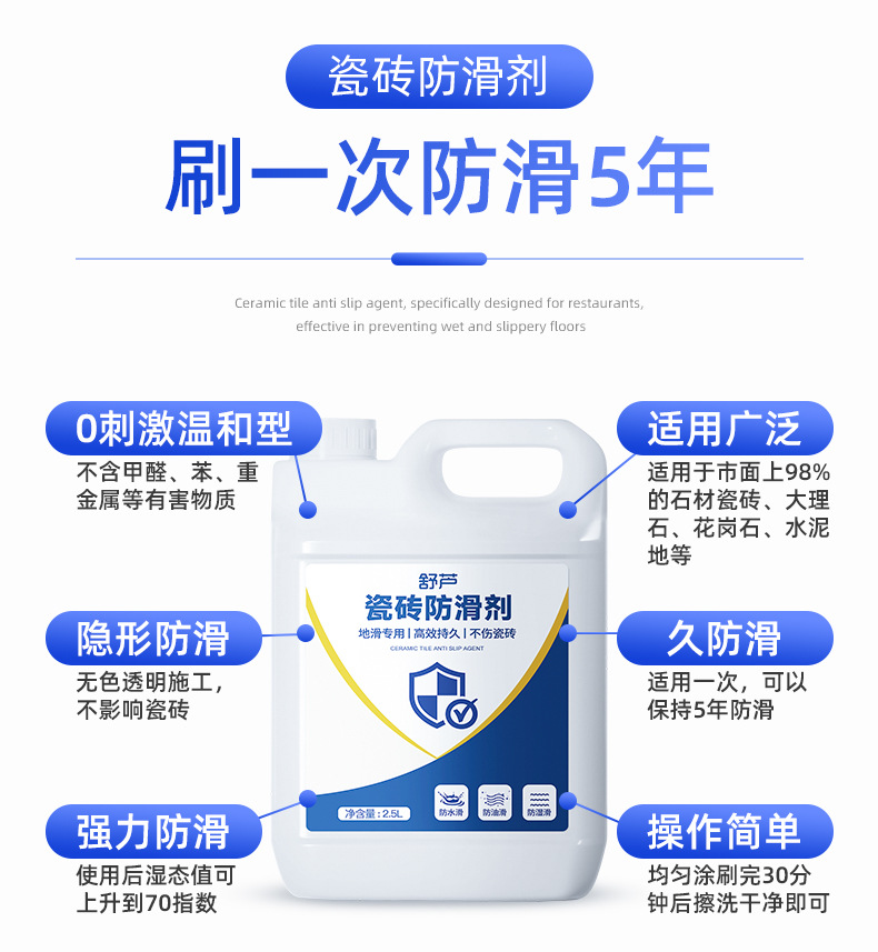 瓷砖防滑剂大桶瓷砖地板大理石防滑剂浴场泳池餐饮专用瓷砖防滑液