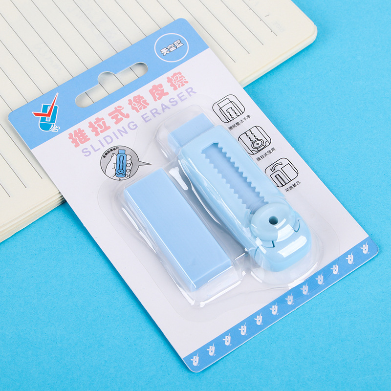 卡通推拉橡皮擦学生彩色干净少屑可替换芯橡皮套装儿童文具批发
