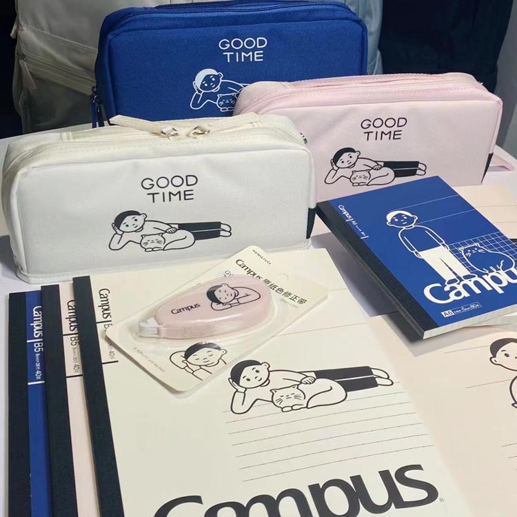 日本KOKUYO国誉haco笔袋猫与少年帆布复古多功能文具盒女男学生