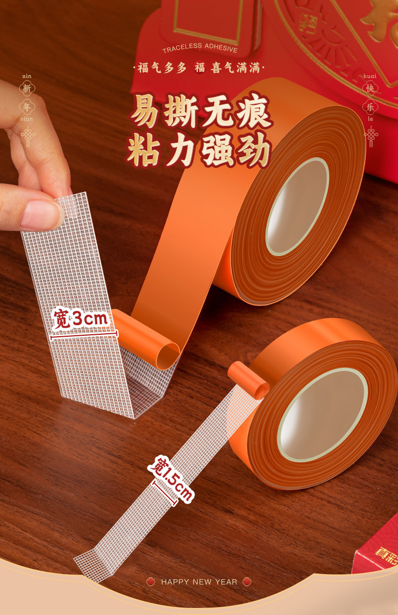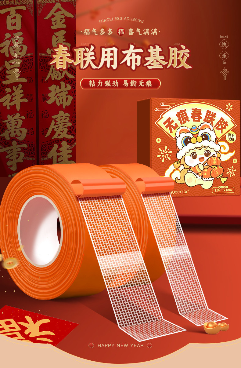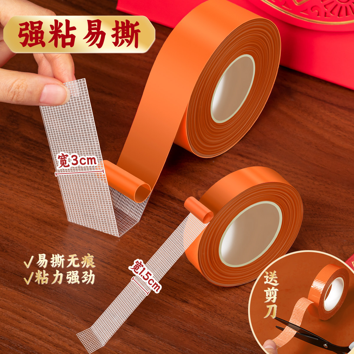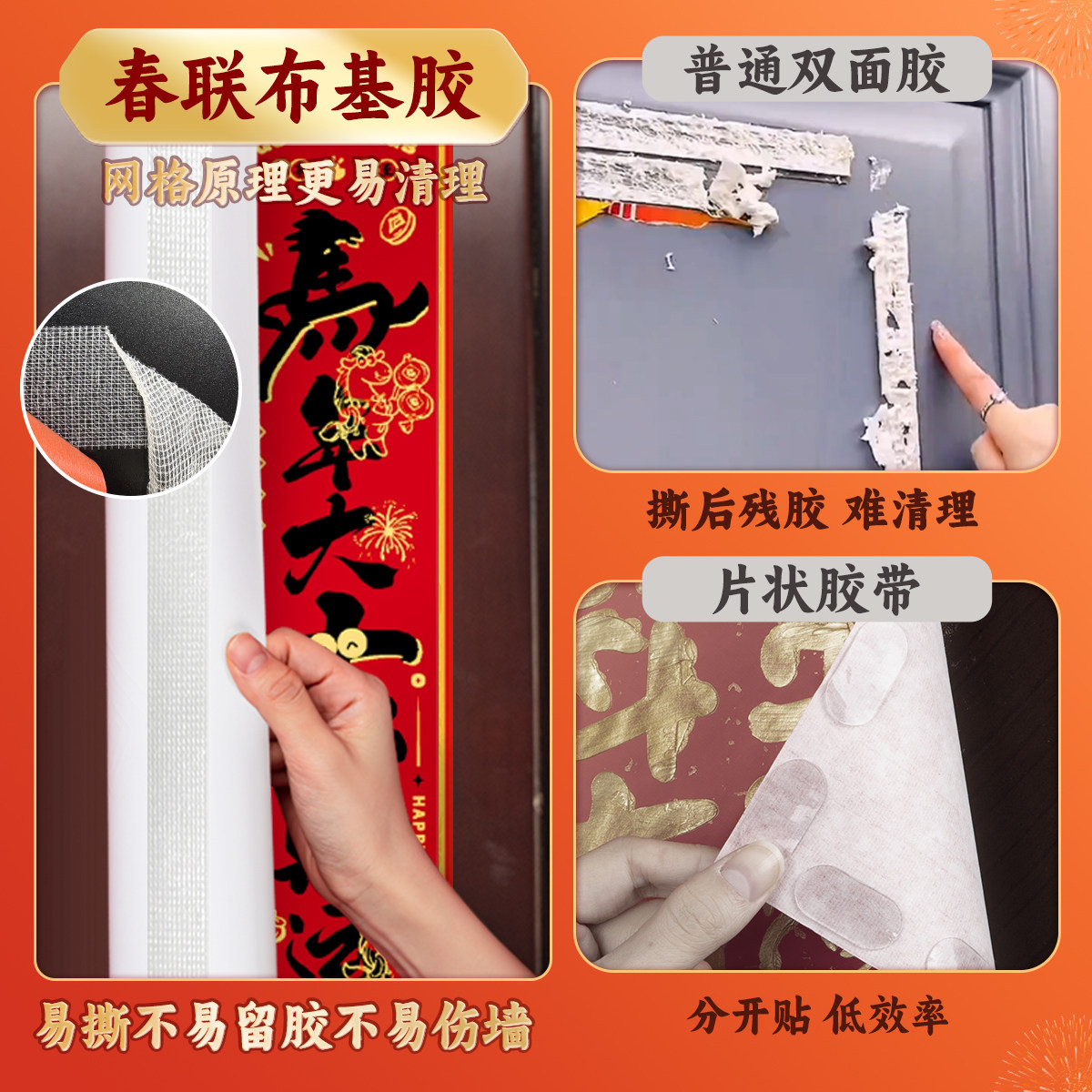 真彩春联胶无痕双面胶高粘度布基胶带强力固定不伤墙对联贴易撕