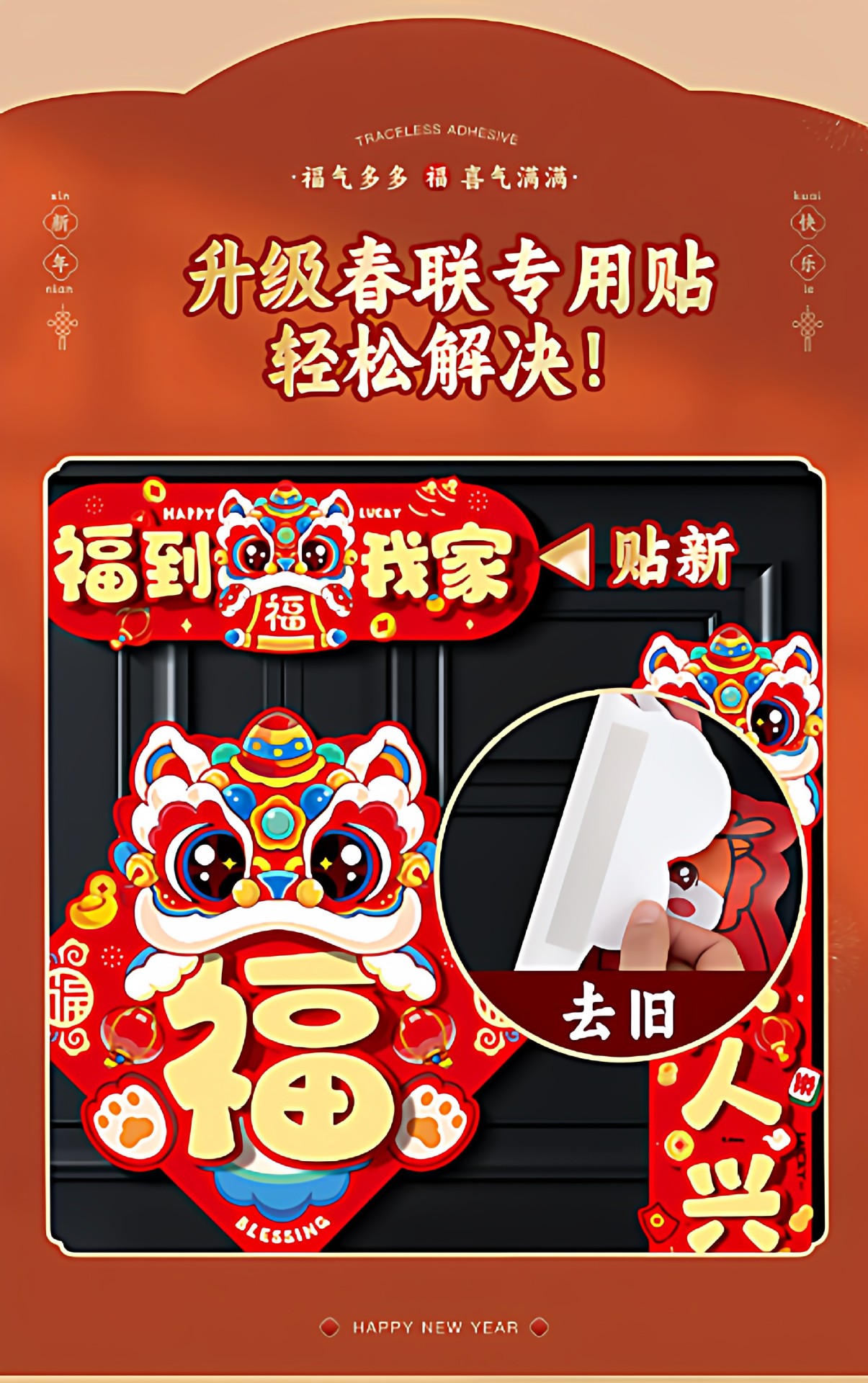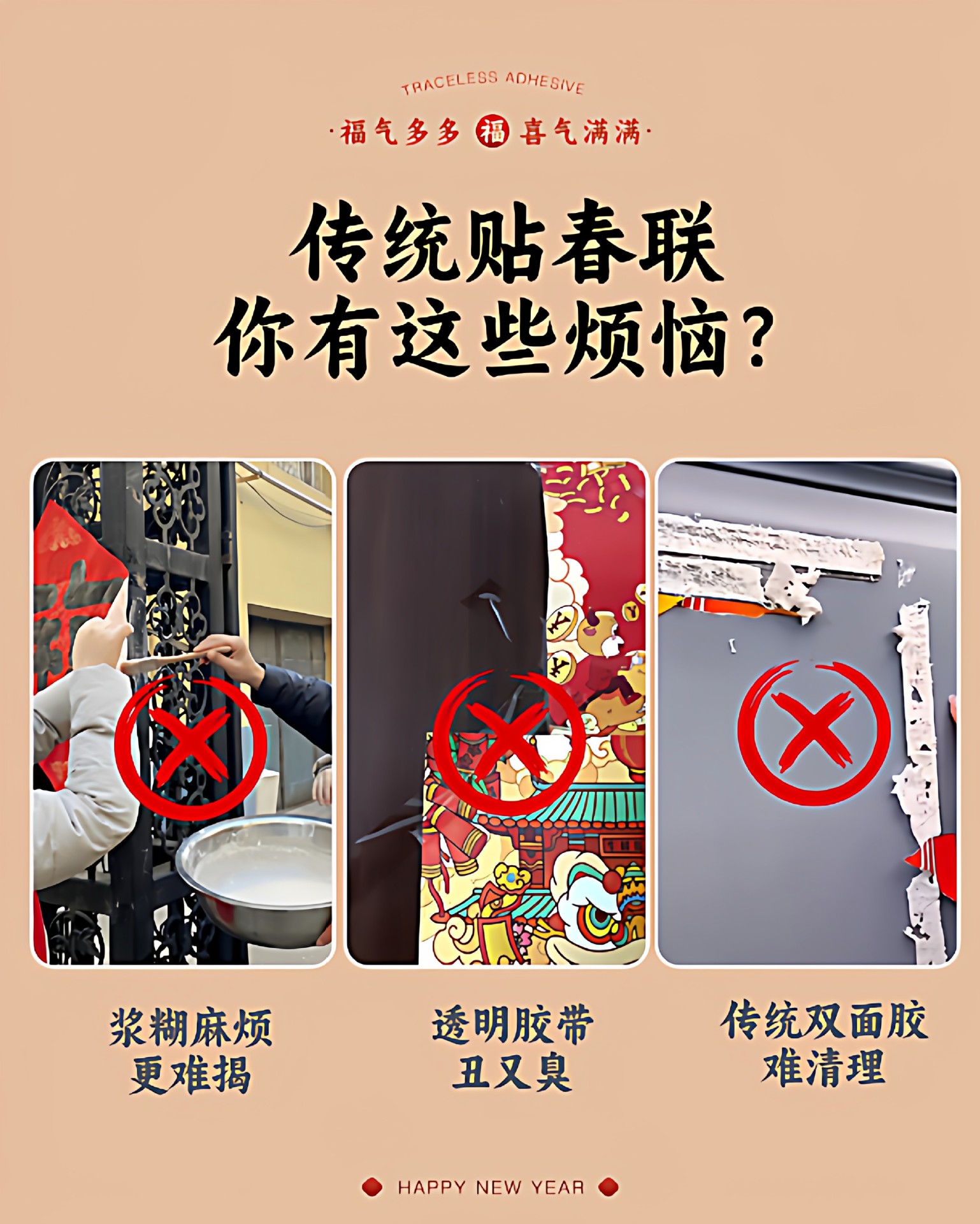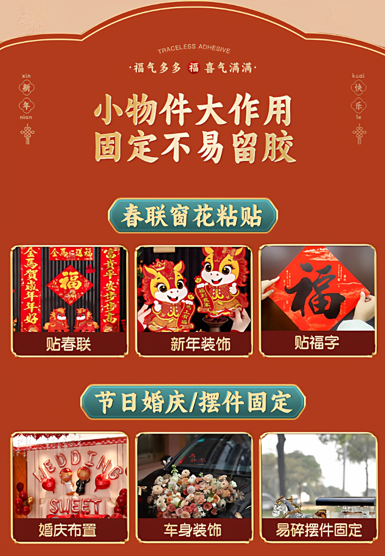 真彩春联胶无痕双面胶高粘度布基胶带强力固定不伤墙对联贴易撕
