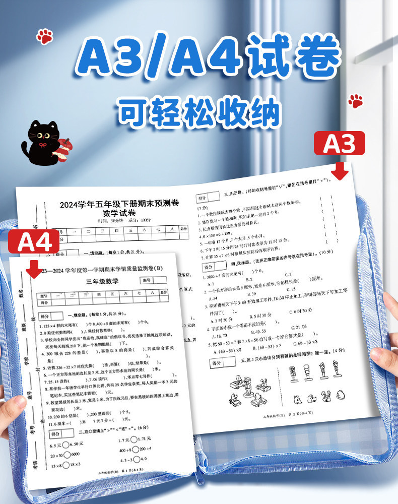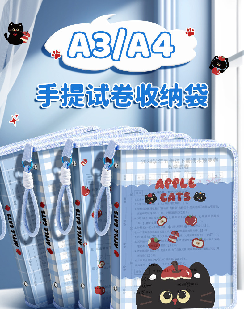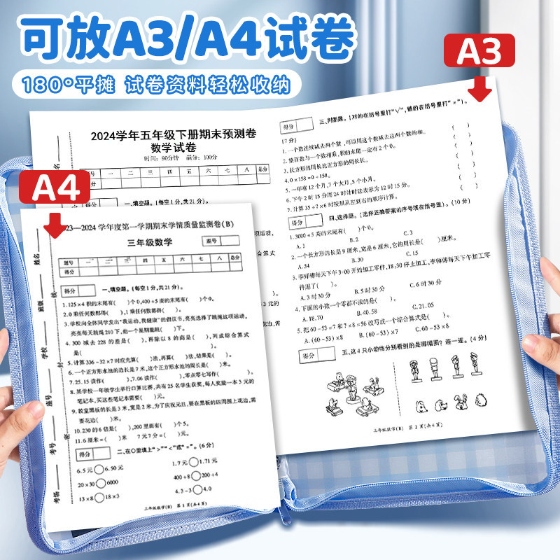 A3文件袋L型拉链式手提袋学生拎书袋A4资料收纳袋考试专用补课袋