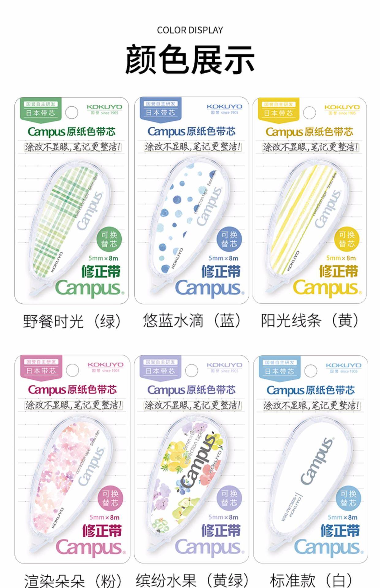 KOKUYO国誉原纸色修正带可换替芯改正带学生用涂改带限定渐变静音