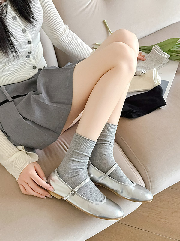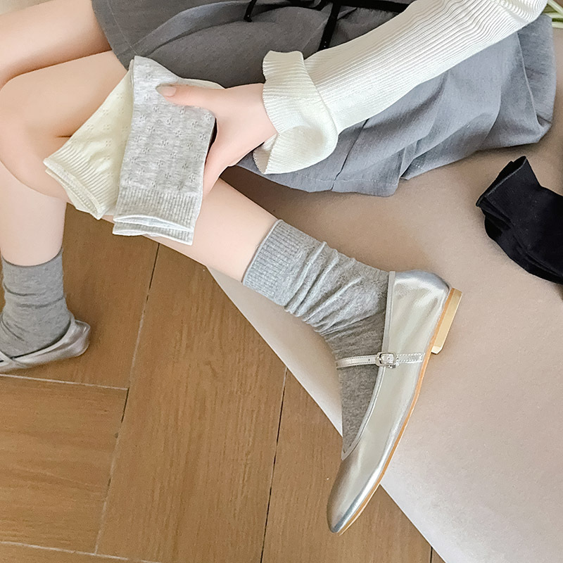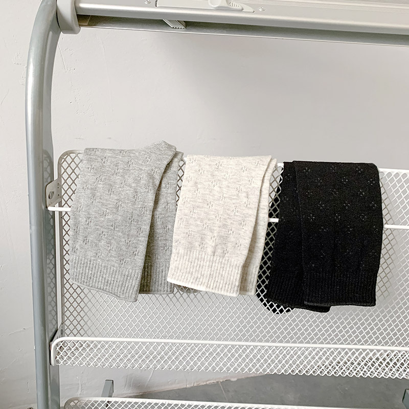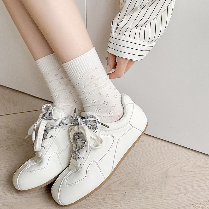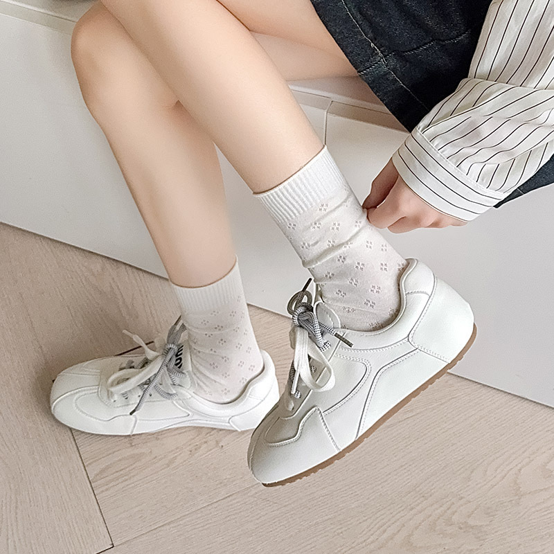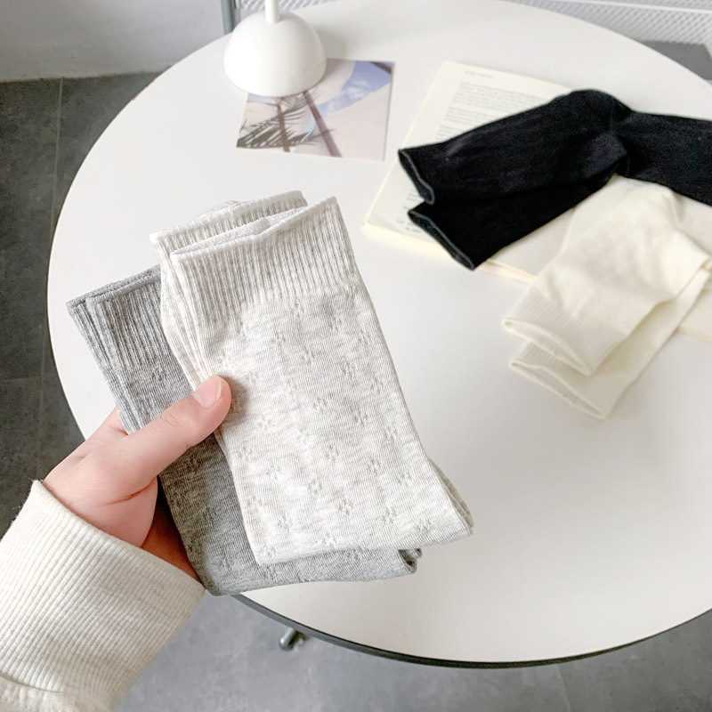 春夏薄款袜子女镂空四叶草潮流中筒袜女奶油白网眼无骨纯棉堆堆袜