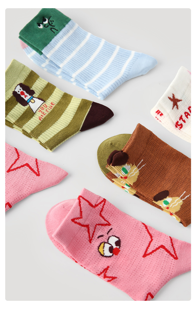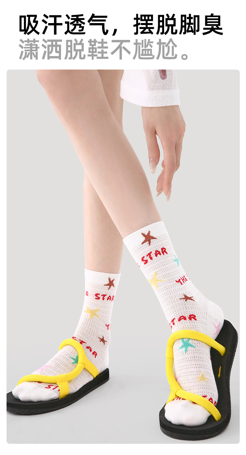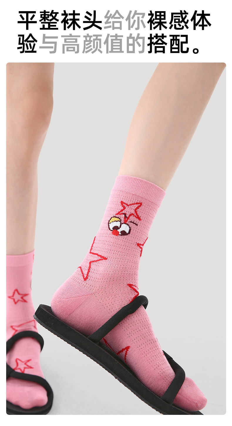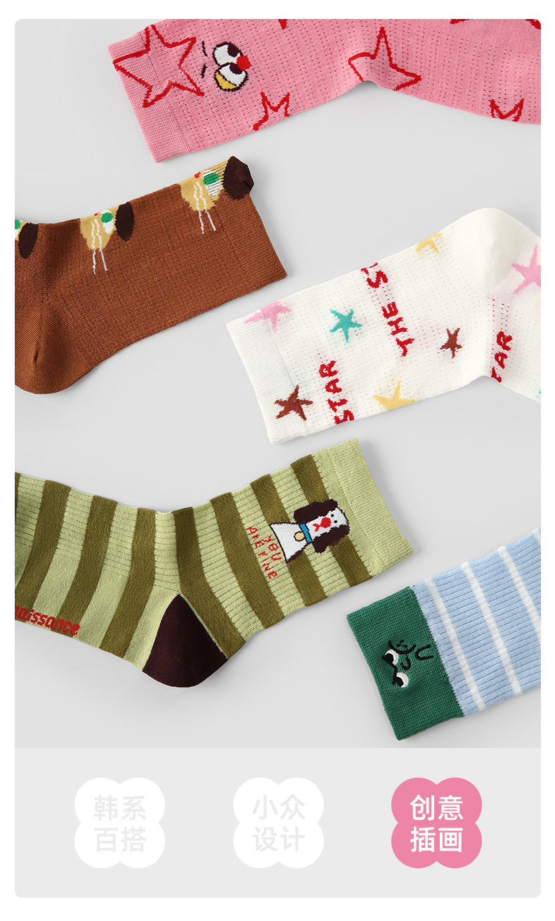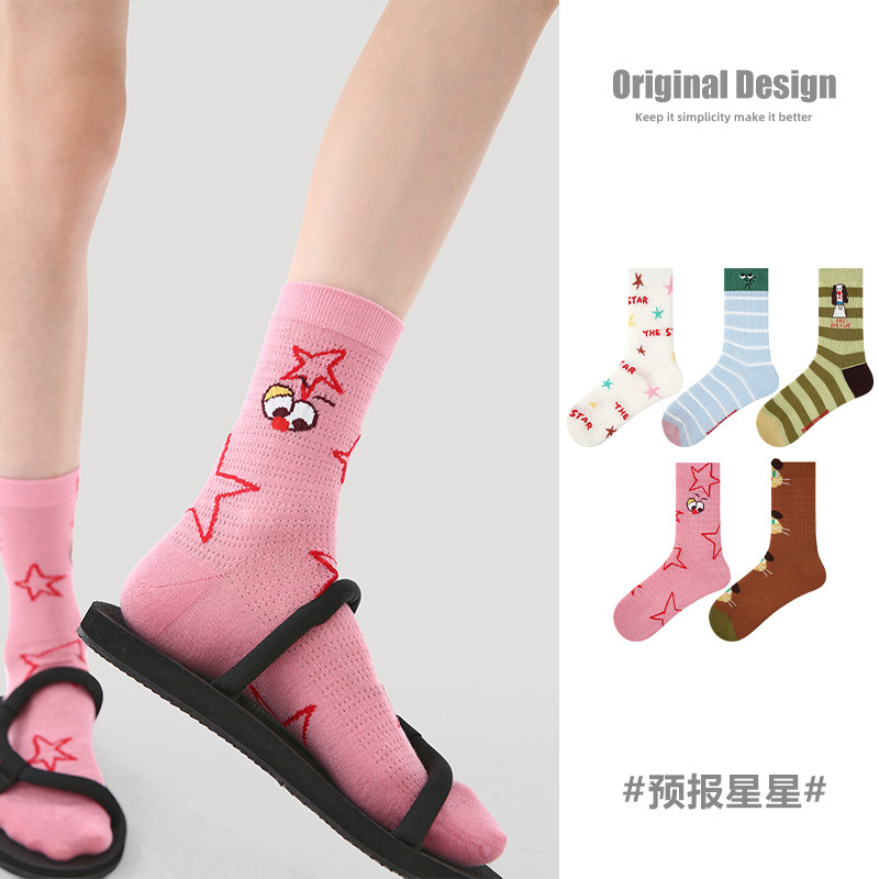 2026春夏新款袜子小众设计条纹插画卡丝短袜棉薄款透气网眼袜子女