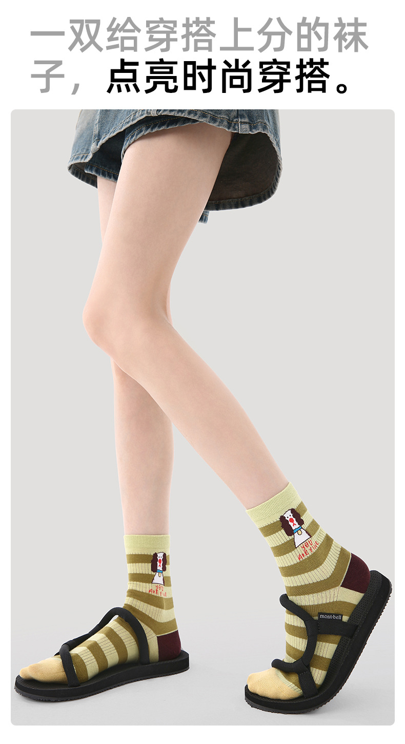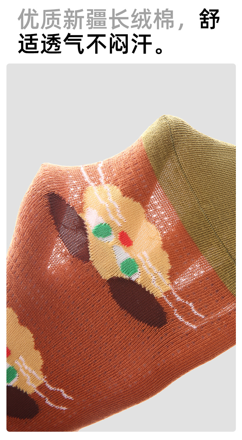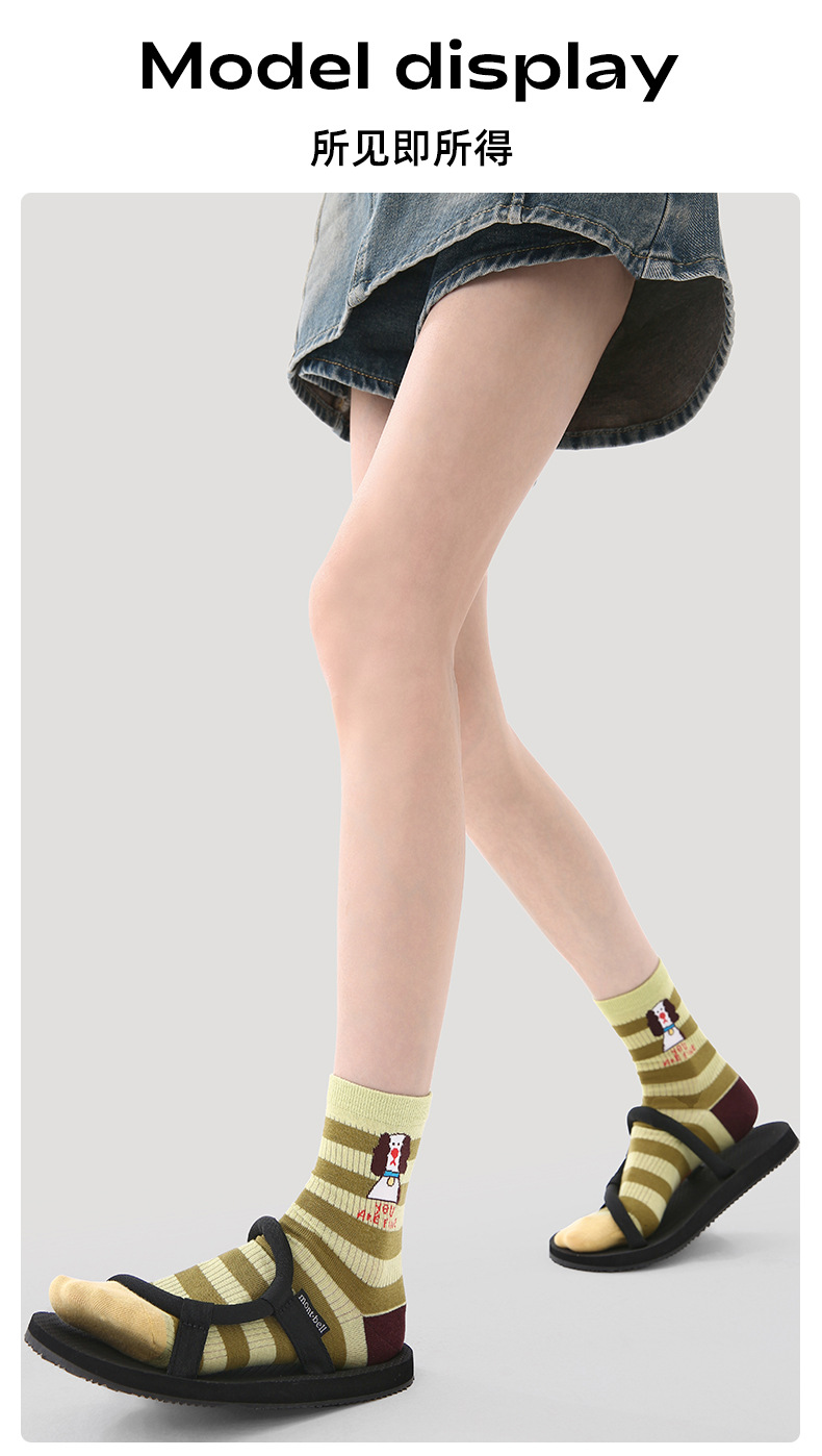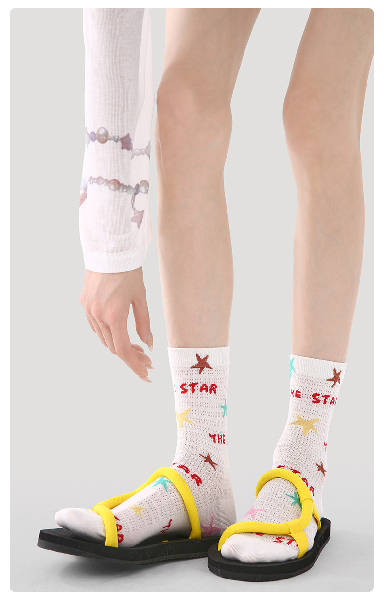 2026春夏新款袜子小众设计条纹插画卡丝短袜棉薄款透气网眼袜子女