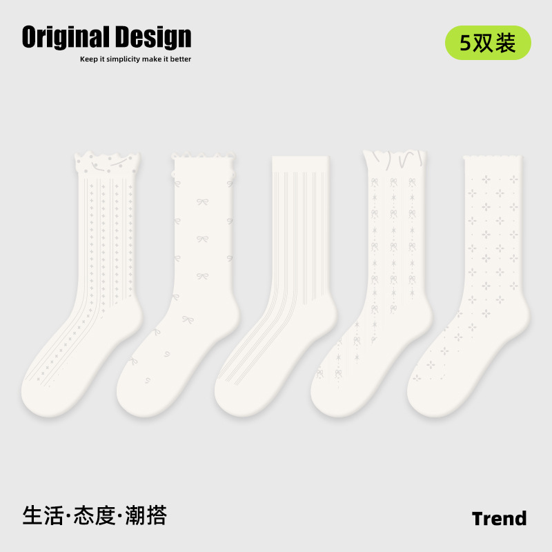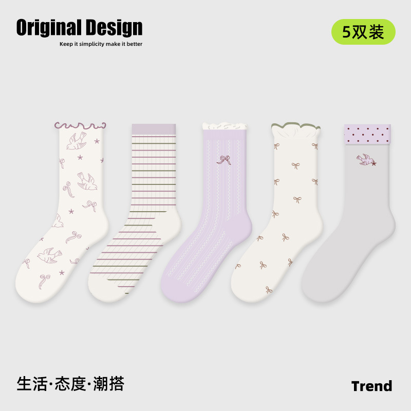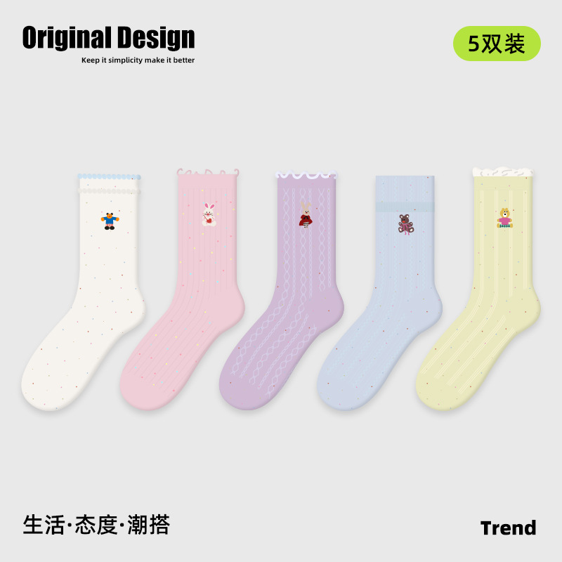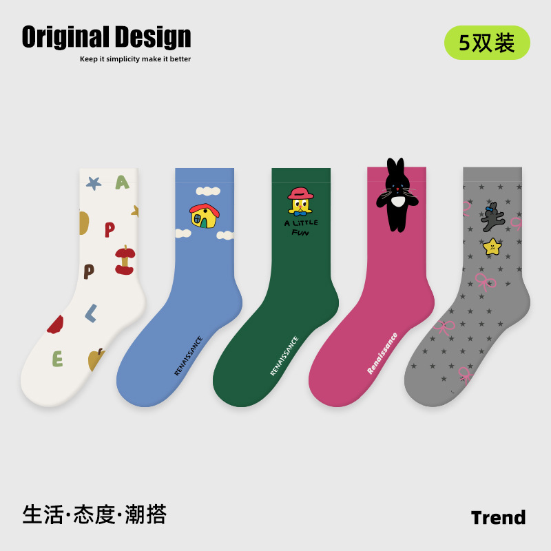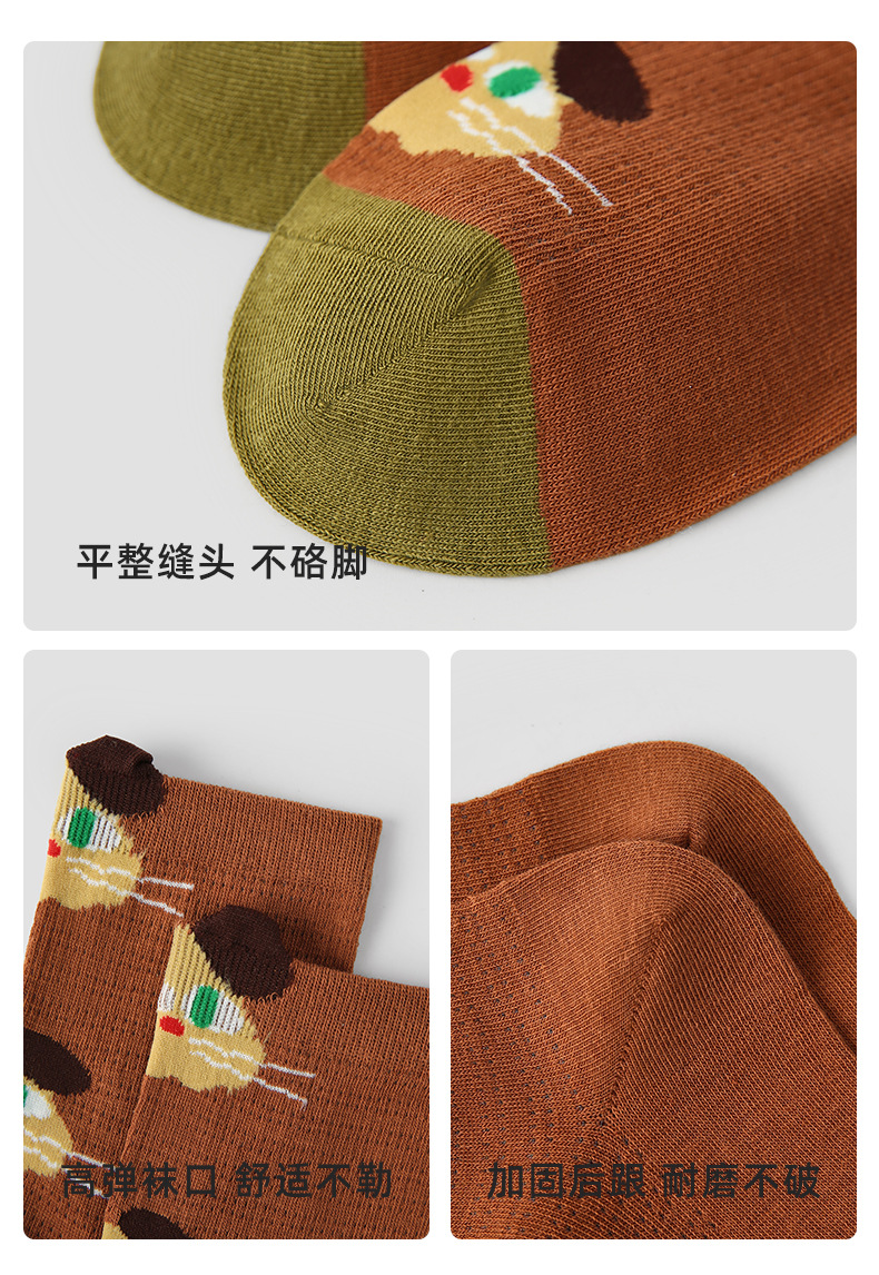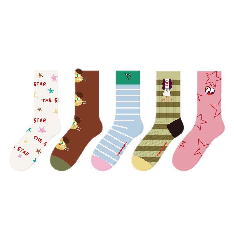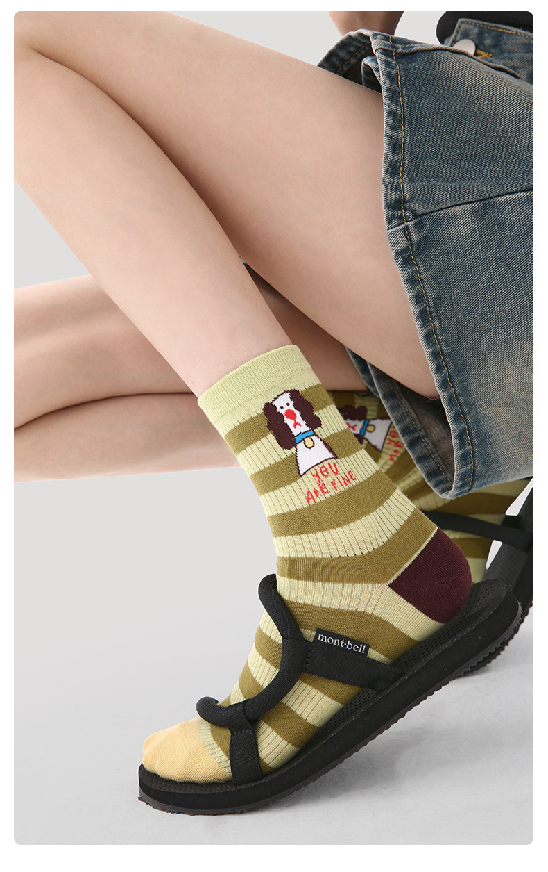 2026春夏新款袜子小众设计条纹插画卡丝短袜棉薄款透气网眼袜子女
